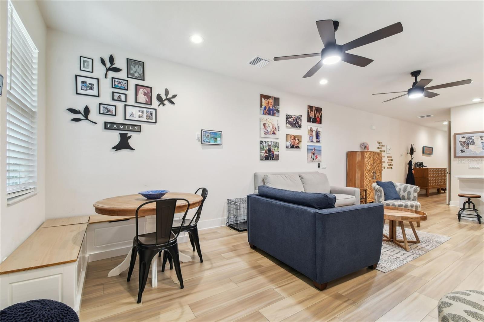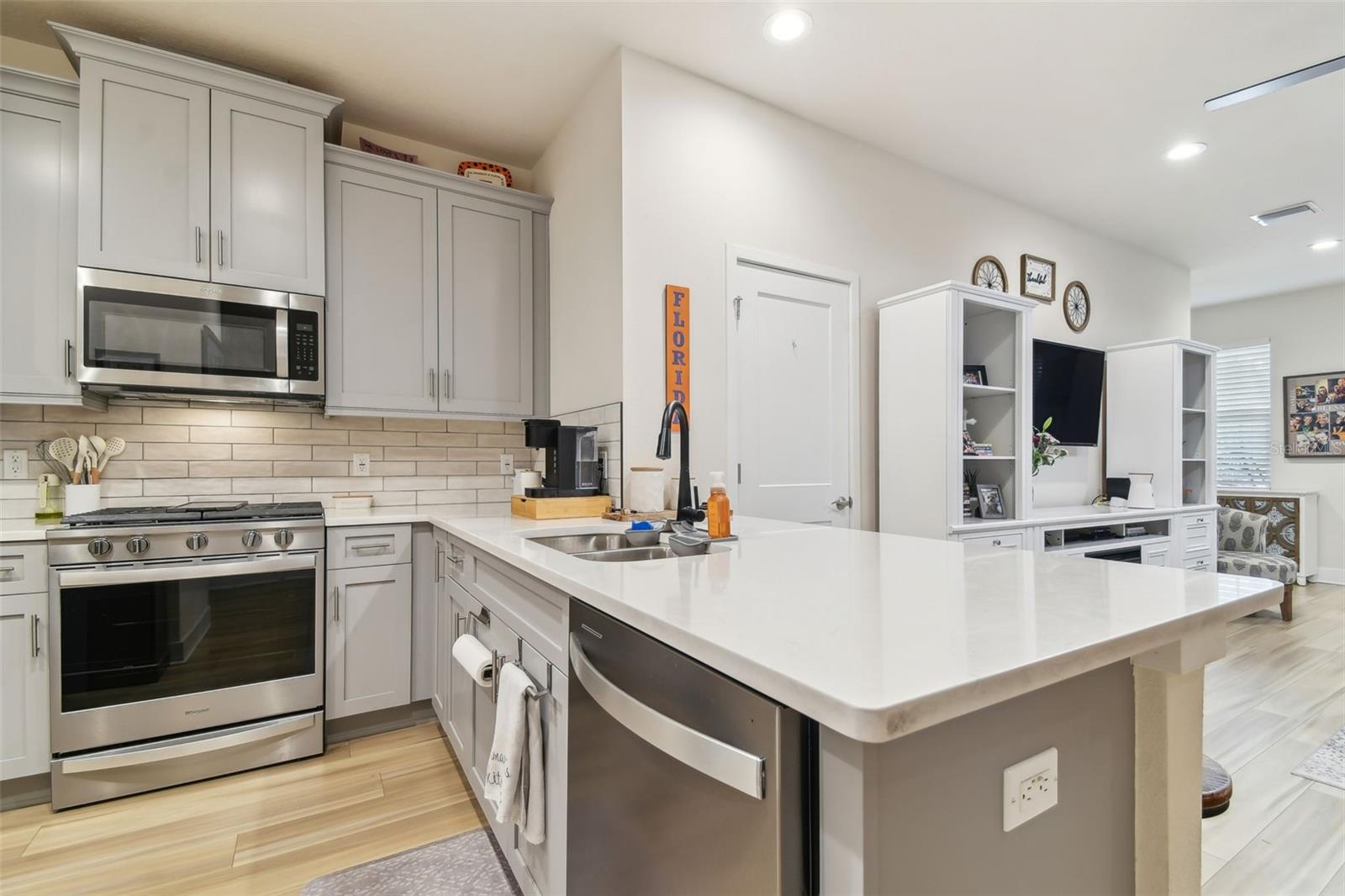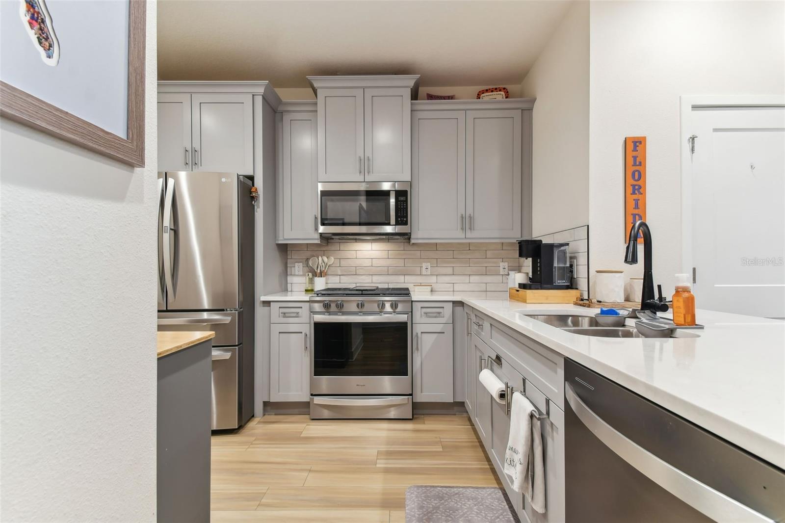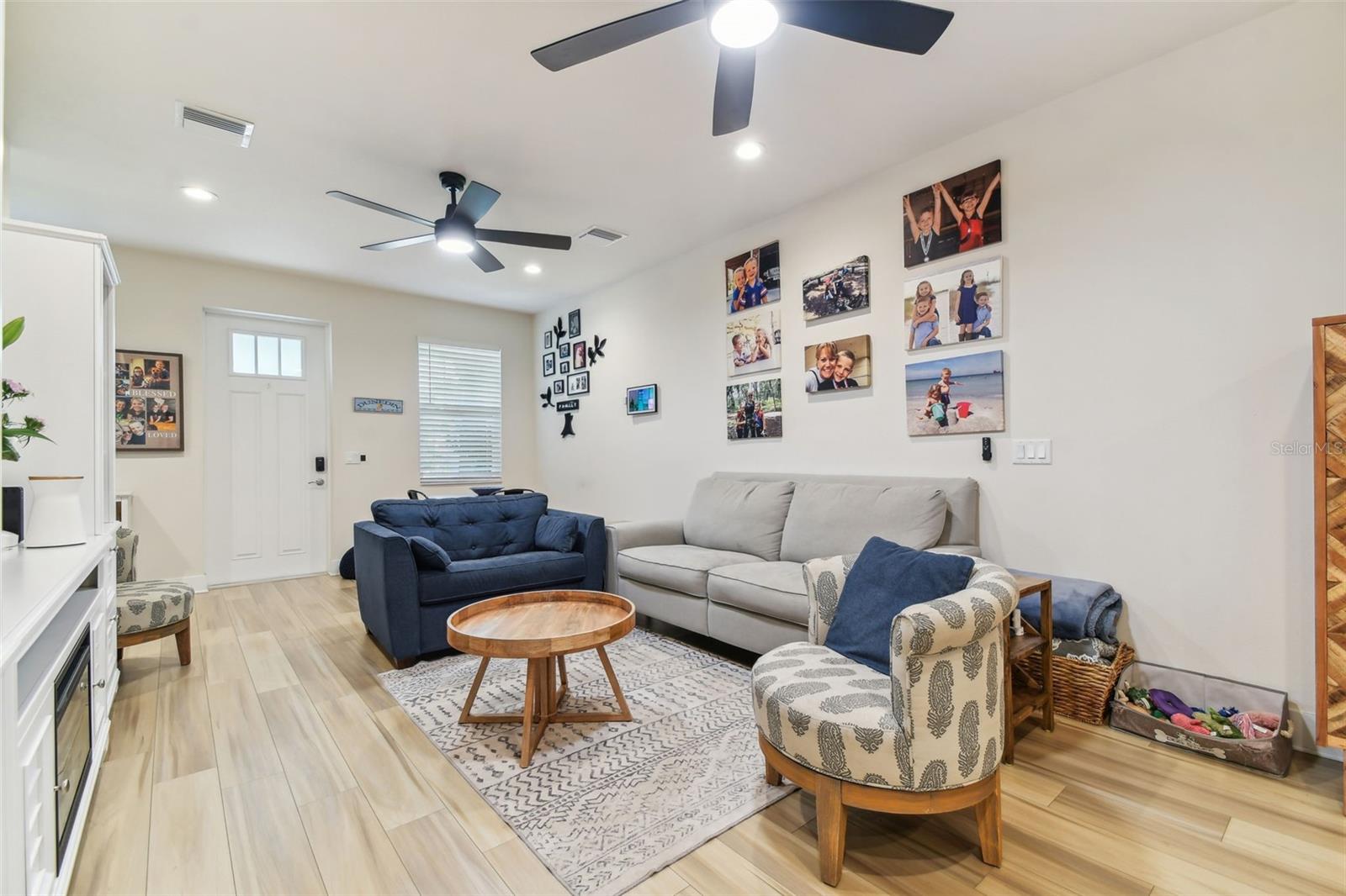 Bem no coração de Dunedin, você encontrará 414 Finn Way. Este modelo Phineas B foi criado por DiGiovanni na comunidade de Townhomes em Highland Crossing. Esta propriedade lindamente mantida possui 3 quartos espaçosos e 2 banheiros e meio. Entre para descobrir uma planta baixa iluminada e aberta, com pé-direito no primeiro andar de mais de 2,7 metros. As atualizações incluem pisos de vinil de luxo em todos os 1.886 pés quadrados. residência urbana. A cozinha gourmet é equipada com bancadas de quartzo, azulejos de metrô, eletrodomésticos de aço inox, fogão a gás, armários todos de madeira com fechamento suave. A área de jantar e a sala de estar adjacentes criam um fluxo contínuo. Varandas cobertas recebem os hóspedes pela entrada frontal ou traseira. Retire-se para o amplo quarto principal com closet e banheiro privativo luxuoso com pia dupla. Dois quartos adicionais compartilham um elegante banheiro completo. O armário da lavanderia também está convenientemente localizado no segundo andar. Estacione o carrinho de golfe na garagem anexa para dois carros. As janelas resistentes a impactos e sem preocupações atendem ao Código da Flórida. Esta moradia quase nova verifica todas as caixas. Venha desfrutar de Dunedin com um cenário artístico vibrante, lojas, restaurantes, festivais sazonais e mercado de produtos agrícolas.