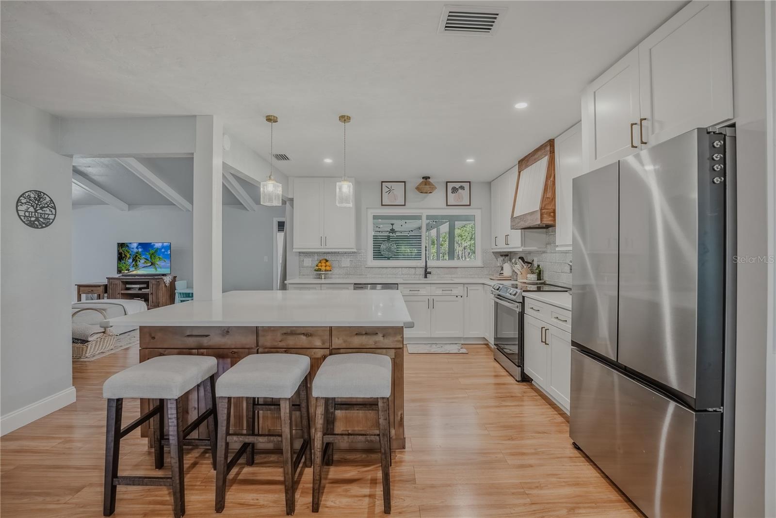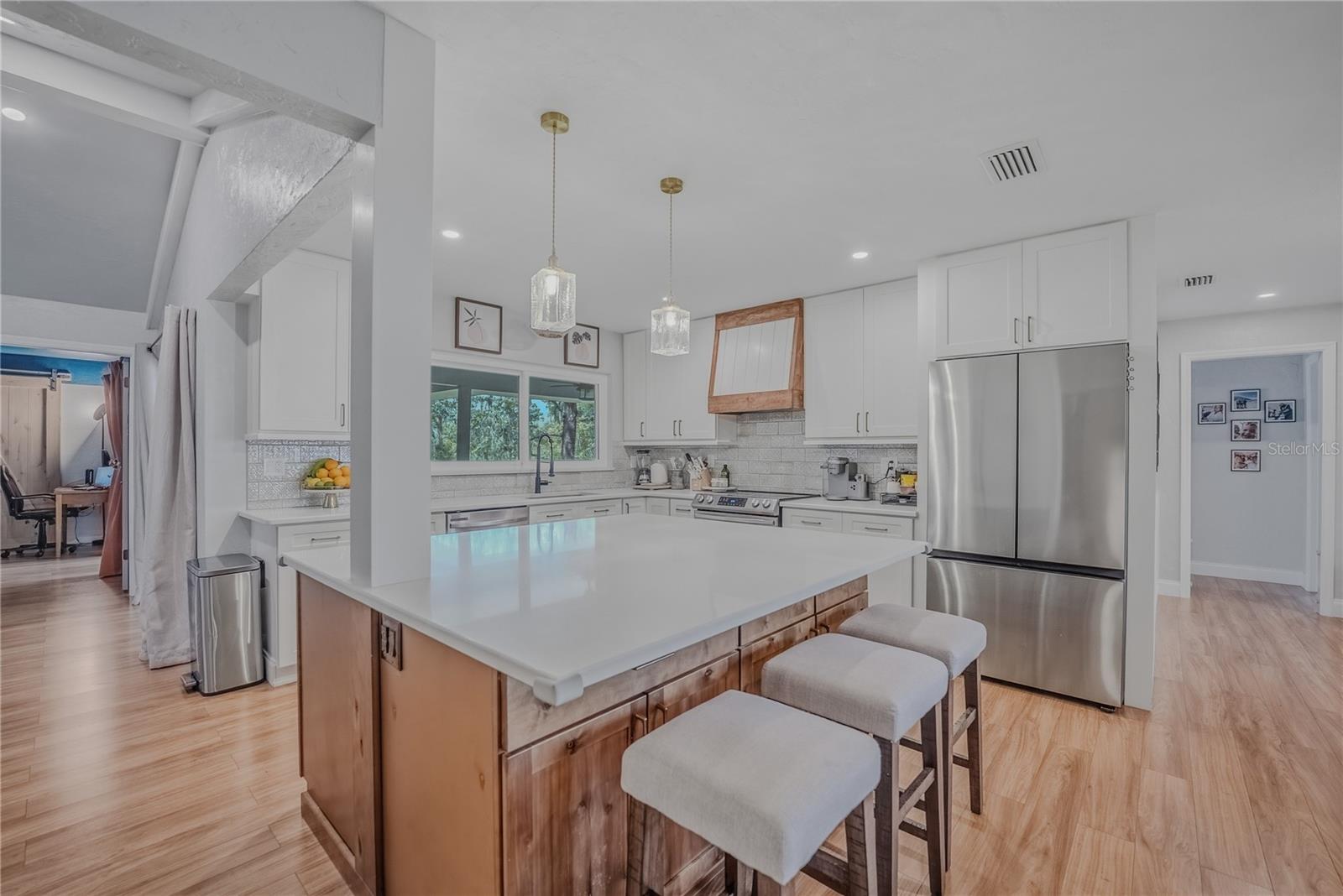 Totalmente reformada e pronta para morar, casa com 3 quartos, 2 banheiros e acabamentos de qualidade. No interior, a cozinha possui uma grande ilha, bancadas de quartzo, eletrodomésticos de aço inoxidável, armários de madeira com gavetas de fechamento suave, backsplash de azulejos italianos, pia funda de aço inoxidável e iluminação sob o armário. O piso laminado à prova d’água percorre toda a área, criando uma sensação limpa e coesa. Ambos os banheiros foram atualizados com chuveiros de azulejos e pias duplas. Portas de vidro deslizantes das principais áreas de estar abrem para um amplo deck de 560 pés quadrados, perfeito para relaxar ou se divertir. As principais atualizações incluem janelas substituídas em 2021 e um telhado substituído em 2019. A casa também possui uma garagem anexa muito espaçosa para 2 carros com espaço adicional para carrinhos de golfe. Localizado em Rainbow Springs, os residentes desfrutam de acesso privado ao Rio Rainbow, incluindo um parque, área de natação e lançamento de caiaque.