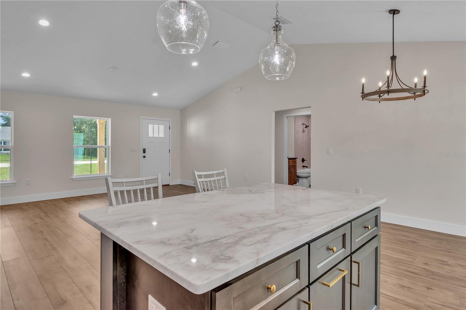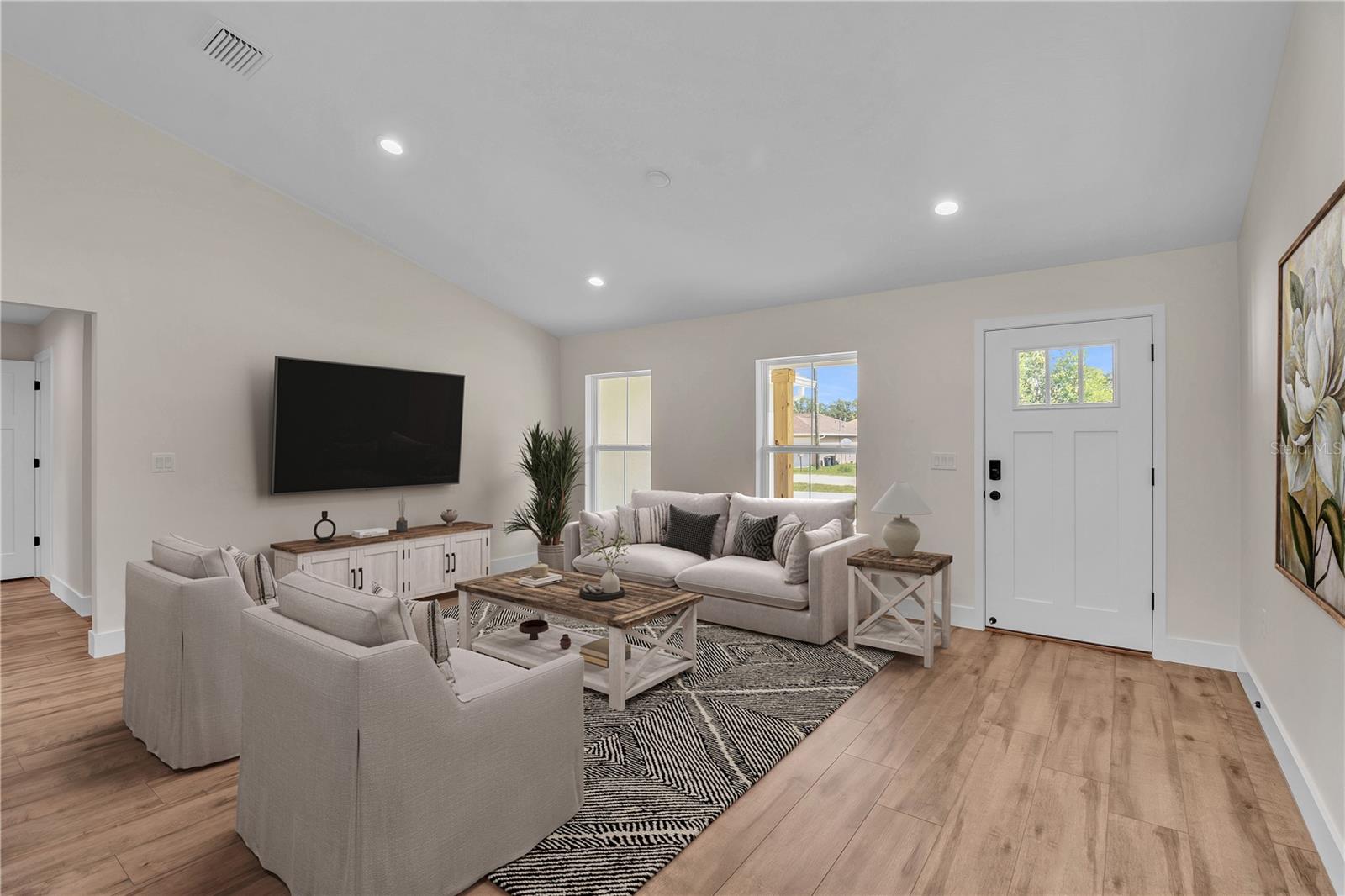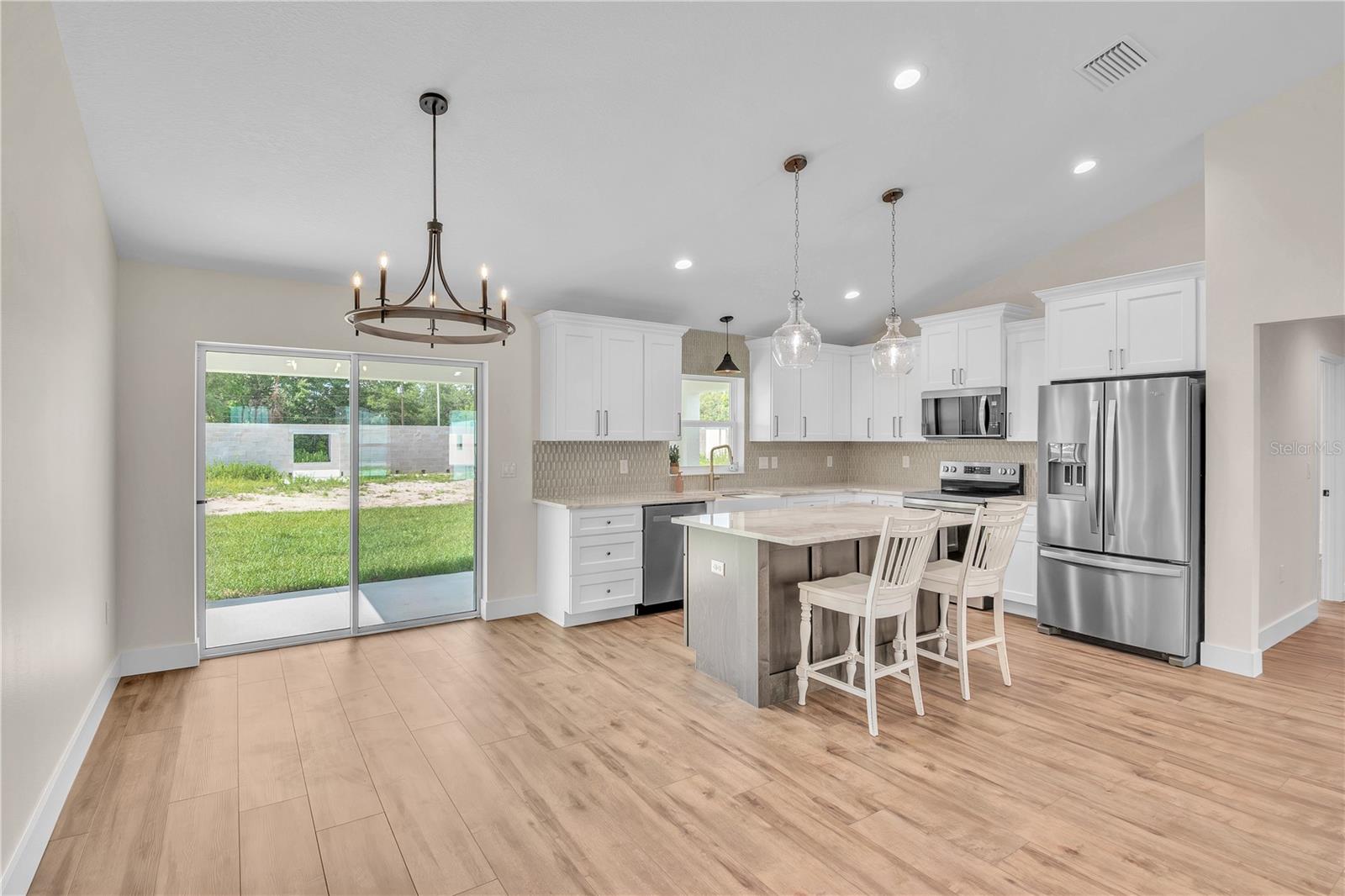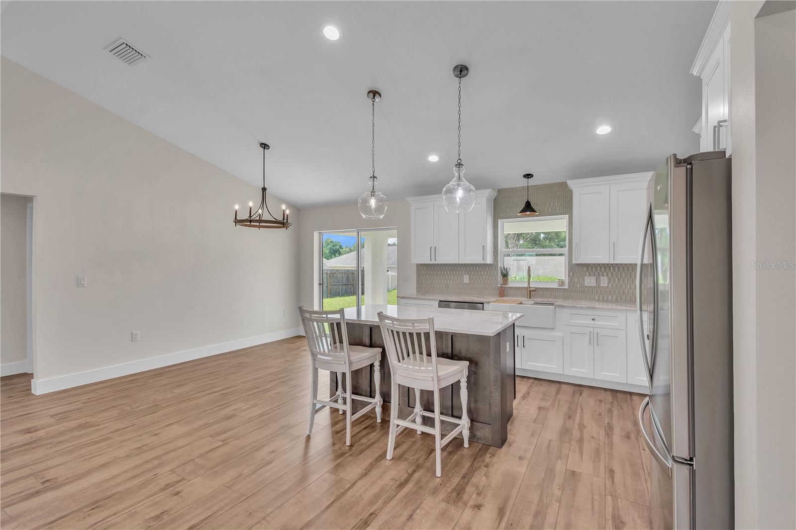 Qualidade com muitas atualizações nesta magnífica casa de construção personalizada de 3 quartos de 3 quartos 2 carros. Meticulosamente e elegantemente projetados, a casa possui atualizações, atualizações e mais atualizações. Mais de 2.100 pés quadrados sob o teto, nenhum detalhe foi negligenciado no design desta residência única. O belo piso de vinil envelhece você com um pacote de acabamento excepcional combina grandes rodapés de luxo com teto abobadado traz à tona o verdadeiro conforto desta casa. A sala de jantar está perfeitamente posicionada com uma luminária moderna para acompanhar um jantar relaxante. O Great Room é muito espaçoso, com iluminação LED recuada diminuída. A cozinha do chef mostra armários personalizados, a ilha com bancadas de granito importado, todos os aparelhos de aço inoxidável de ponta com geladeira resistente a impressão digital, tornando-a uma peça de exibição e uma delícia do artista. No lado oposto da casa, fica dois quartos com banheiro mostrando pias duplas, granito importado, ladrilhos de correspondência muito modernos. Muitas outras atualizações e recursos. Localizado em belas propriedades Rolling Ranch. A uma curta distância do lago Otting, 15 minutos até o rio Rainbow e 15 minutos para o centro equestre mundial. Atualizações em abundância! Varandas cobertas! Cozinha do chef com aparelhos resistentes a impressões digitais prateadas de aço inoxidável e uma ilha espaçosa ótima para entretenimento.