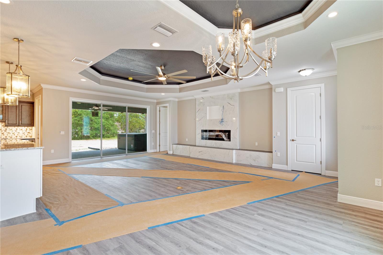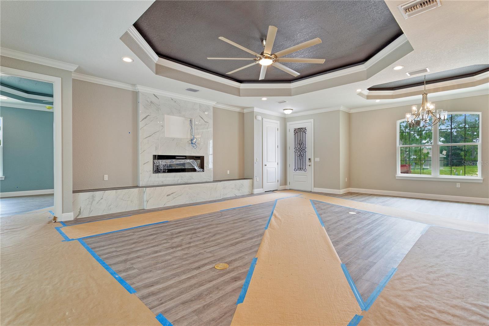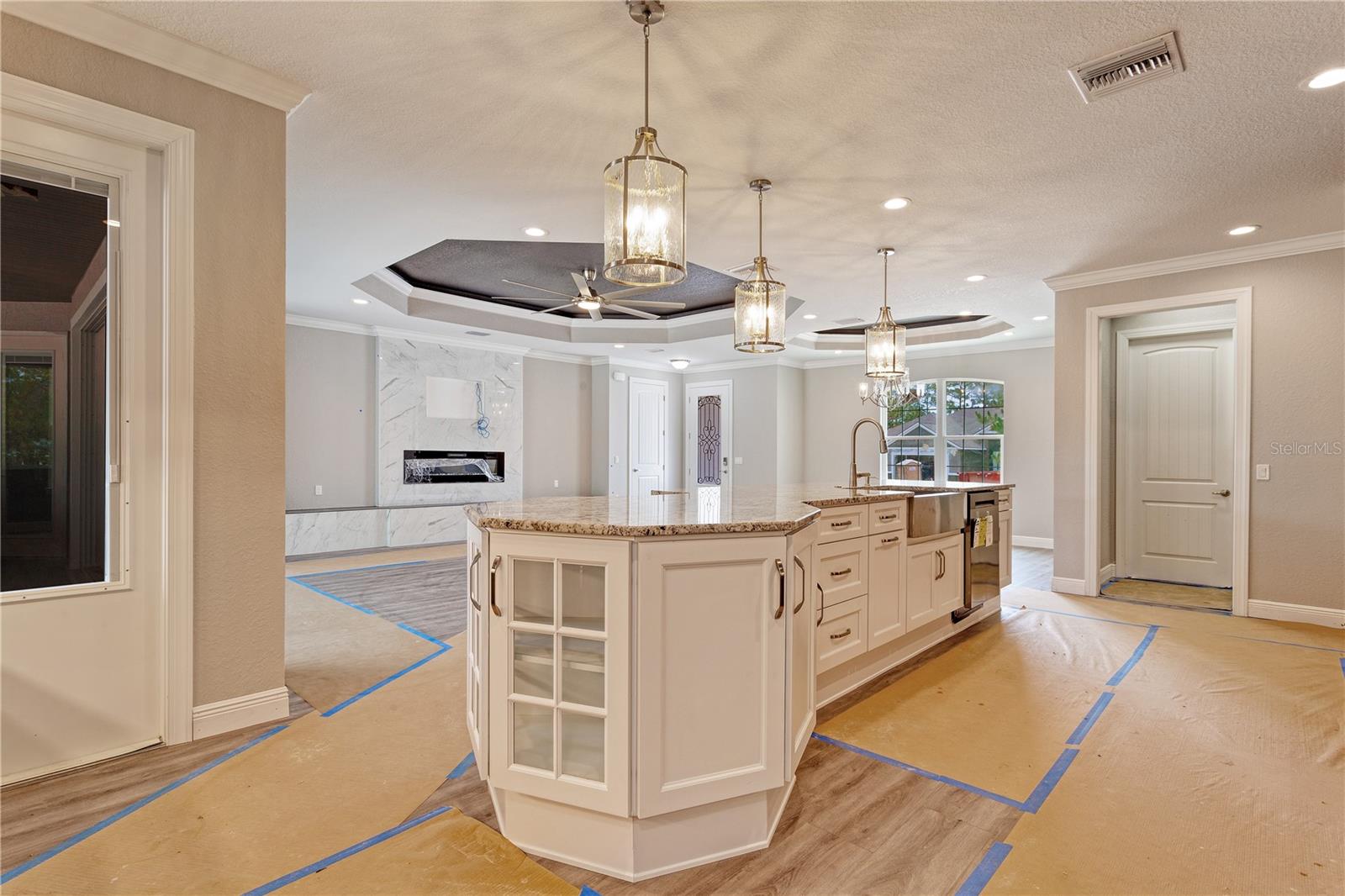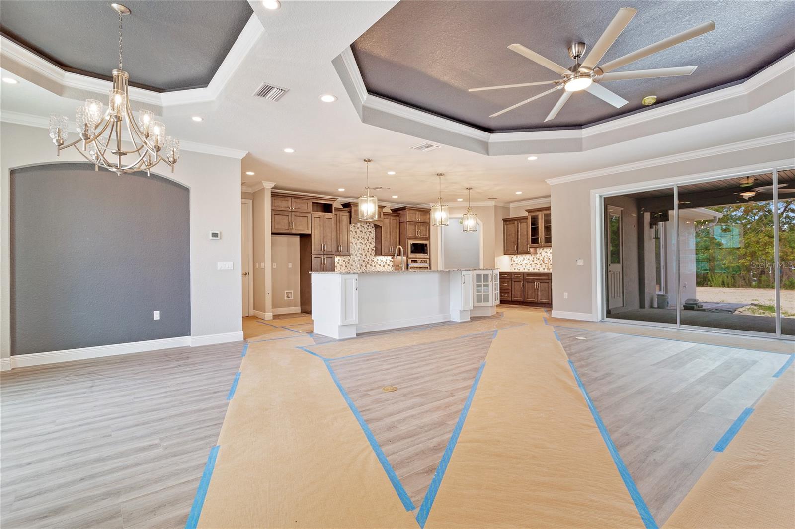 Em construção. Nova Construção! Que beleza! Um artista espaçoso e convidativo aguarda sua chegada na renomada comunidade de campos de golfe Juliette Falls, par 72! 4/5 quartos, 4 banheiros completos, planta de quarto dividido aberto com sala bônus no andar de cima! A enorme Sala Grande recebe você com uma lareira/parede de TV lindamente revestida de azulejos, oferecendo muito espaço para sua família ou entretenimento. Um ventilador de teto de níquel escovado de 84 ”dentro do teto elevado em caixotões é impressionante. As tomadas no piso auxiliam na configuração flexível dos móveis. Uma porta de pátio com três bolsos leva a uma varanda para expandir para os hóspedes. Os toques modernizados de designer incluem luxuosos pisos de pranchas de vinil com aparência de madeira, azulejos em todas as áreas úmidas, sancas, tetos de 9'4 ”- 11'0”, tetos em caixotões com coroa e receptáculos para iluminação de realce, portas de 8' e elegantes luminárias e ventiladores de teto por toda parte. Ventiladores de teto, tomadas de TV altas, uma unidade de CA forte e aquecedor de água quente sem tanque para toda a casa e circuito de amaciante de água garantem conforto. A cozinha aberta é deslumbrante com uma ilha enorme e elevada e uma vitrine decorativa em forma de hexágono com porta de vidro no final. A saliência da barra da bancada em granito de 120 ”acomoda facilmente 4 bancos de bar. Uma conveniente despensa embutida, forno de convecção / micro-ondas embutido, fogão de indução de 36 "(saída de gás propano opcional), exaustor decorativo e pia de fazenda de aço inoxidável proporcionam uma preparação funcional de refeições. Bancadas de superfície sólida e um lindo backsplash em mosaico com iluminação embaixo do armário ilumina a cozinha com beleza. Um bar com geladeira para bebidas e pia de aço inoxidável é um bônus. A Sala de Jantar fica ao lado da cozinha e permite grandes reuniões. Um nicho decorativo, um lindo lustre e um teto em caixotões fazem deste um ótimo lugar para desfrutar de refeições. A planta dividida oferece 3 quartos mais espaçosos, cada um com acesso a um banheiro completo no térreo. A grande suíte master inclui armários com porta de acesso e estantes sólidas. Uma agradável área de estar na suíte master pode proporcionar relaxamento ou um espaço para exercícios ou escritório. O banheiro privativo principal possui penteadeiras, um grande box de chuveiro revestido de azulejos do chão ao teto, chuveiros duplos, nichos duplos e assento de chuveiro. No piso superior encontra uma Sala Bónus ou 5º quarto com casa de banho completa. Isso é perfeito para um espaço de recreação, escritório, sala de artesanato ou espaço de ginástica, aquecido e resfriado com uma unidade mini-split separada. Além disso, existe uma arrecadação climatizada oculta e um grande armário. A lavanderia é equipada com azulejos, armários e bancada de superfície sólida com pia de aço inoxidável, armário de utilidades e um recanto para tudo o que você desejar (freezer, central de ferro, bancada de lama). A enorme garagem para 3 carros tem um nicho para uma bancada de trabalho ou rack para tacos de golfe e um armário para um cofre aparafusado ou ferramentas. Aproveite a varanda dos fundos com uma relaxante banheira de hidromassagem terapêutica Master Spa para 6 pessoas e acesso a um pátio com churrasqueira equipado com pavimentação. O impressionante exterior apresenta belas telhas arquitetônicas de alta definição, estuque e faixas decorativas, detalhes em pedra, sistema de irrigação em um poço, uma entrada pavimentada de grandes dimensões e uma passarela pavimentada. Juliette Falls é uma comunidade tranquila e bonita perto da pitoresca cidade de Dunnellon. A propriedade ocupa 1/3 acre, protege um espaço arborizado na parte de trás e fica ao longo de um beco sem saída no final de uma rua isolada.