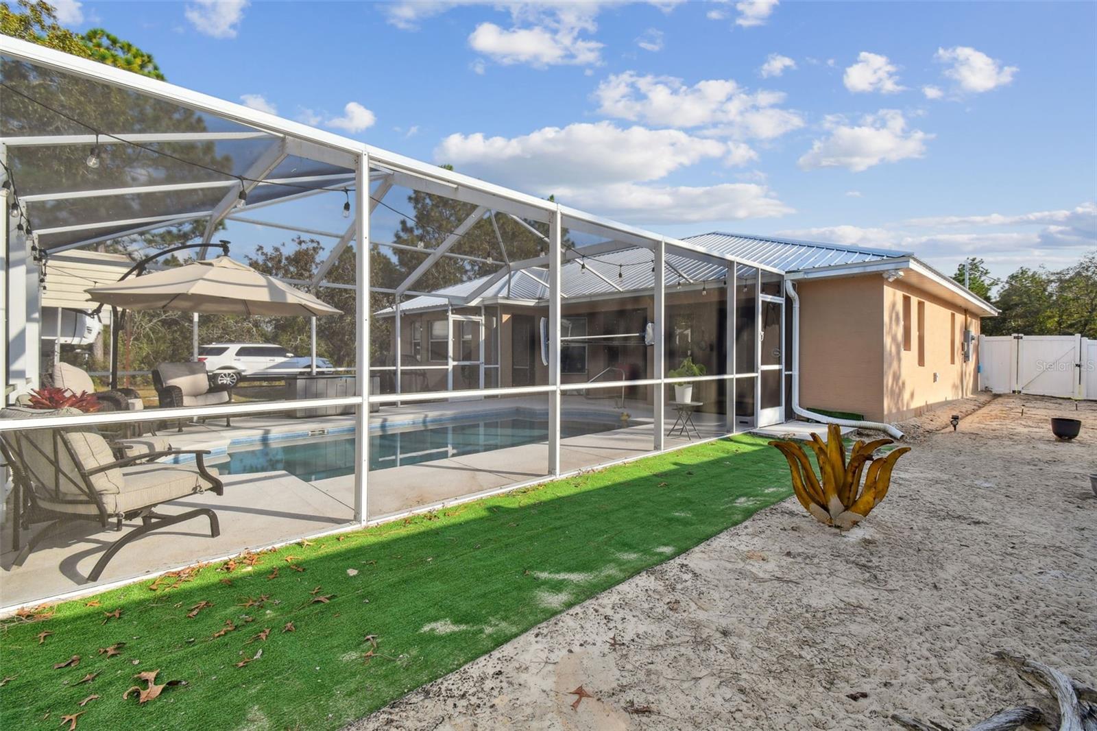 Bem-vindo ao seu luxuoso oásis na pitoresca Dunnellon, Flórida! Esta requintada casa de 3 quartos e 2,5 banheiros oferece 1.891 pés quadrados de espaço elegante, perfeitamente situada em quase um acre. Ao entrar, você será recebido por um design convidativo de conceito aberto, com tetos abobadados e azulejos de cerâmica que fluem perfeitamente pelas principais áreas de estar. A cozinha gourmet é o sonho de qualquer chef, apresentando eletrodomésticos de aço inoxidável de alta qualidade, armários personalizados e impressionantes bancadas de quartzo que convidam à criatividade culinária e ao entretenimento sem esforço. Adjacente à cozinha, a espaçosa sala de estar e a zona de jantar formal criam um espaço elegante para encontros, realçado pela abundante luz natural e acabamentos elegantes. Retire-se para a luxuosa suíte principal, onde uma porta francesa privativa leva à sua varanda tranquila. O banheiro privativo possui um amplo closet, uma luxuosa banheira de imersão e um chuveiro elegante, proporcionando um retiro semelhante a um spa dentro de sua própria casa. Os dois quartos adicionais, cuidadosamente colocados no lado oposto da casa, proporcionam conforto e privacidade para familiares ou convidados. Saia para sua ampla varanda privativa, um paraíso para artistas com uma impressionante piscina subterrânea, perfeita para relaxamento e reuniões ao ar livre. Um lavabo conveniente aumenta o fascínio, enquanto a espaçosa garagem para trailers/barcos, que tem uma fossa séptica totalmente nova e linhas a partir de 2023, oferece comodidades práticas para o seu estilo de vida aventureiro, completas com eletricidade. Esta propriedade notável está localizada nas proximidades de Rainbow River Springs, uma área muito popular para caiaque, canoagem e tubing em águas cristalinas, que mantém refrescantes 72°F durante todo o ano. Além disso, não há HOA! Esta propriedade de um acre também inclui um recurso significativo de economia de custos. Os vendedores nivelaram e limparam recentemente o lote traseiro de meio acre, proporcionando um espaço versátil perfeito para suas necessidades. Quer pretenda criar arrumação adicional, adicionar um gazebo encantador ou simplesmente desfrutar de reuniões familiares e acampar, este terreno está pronto para acomodar os seus planos. Não perca a oportunidade de aproveitar ao máximo este terreno preparado e espaçoso! Esta propriedade excepcional combina uma vida luxuosa com a beleza natural da Flórida, tornando-a um lugar verdadeiramente notável para chamar de lar!