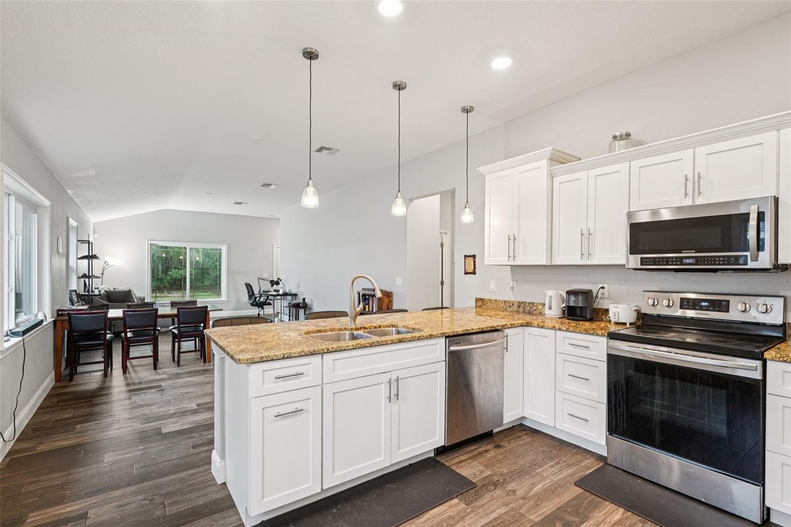 Bem-vindo a esta convidativa casa de 3 quartos e 2 banheiros em Dunnellon, oferecendo 1.428 pés quadrados de conforto e estilo. Desde o momento em que você entra, você notará o piso de ladrilhos de aparência de madeira lindamente atualizada que flui perfeitamente por toda a casa. A planta baixa cria uma conexão natural entre a sala e a cozinha, tornando -a ideal para a vida e o entretenimento diários. A cozinha é um verdadeiro destaque, com utensílios de aço inoxidável, bancadas em granito e muito espaço para a preparação das refeições. A suíte primária oferece um retiro privado com seu banheiro na suíte, completo com um chuveiro. Com um interior atualizado, todos os detalhes foram cuidadosamente projetados para fornecer função e charme. Saia e aproveite o espaçoso quintal, perfeito para reuniões ao ar livre, jardinagem ou simplesmente relaxando o sol da Flórida. Esta casa está convenientemente localizada perto de compras, restaurantes, e algumas das atrações naturais mais preciosas de Dunnellon, incluindo o rio Rainbow Crystal Clear e o rio cênico de Withlacoochee. Esteja você procurando aventura ao ar livre, conveniências locais ou um lugar confortável para chamar de lar, esta propriedade reúne tudo. A economia de hipotecas pode estar disponível para compradores desta listagem.