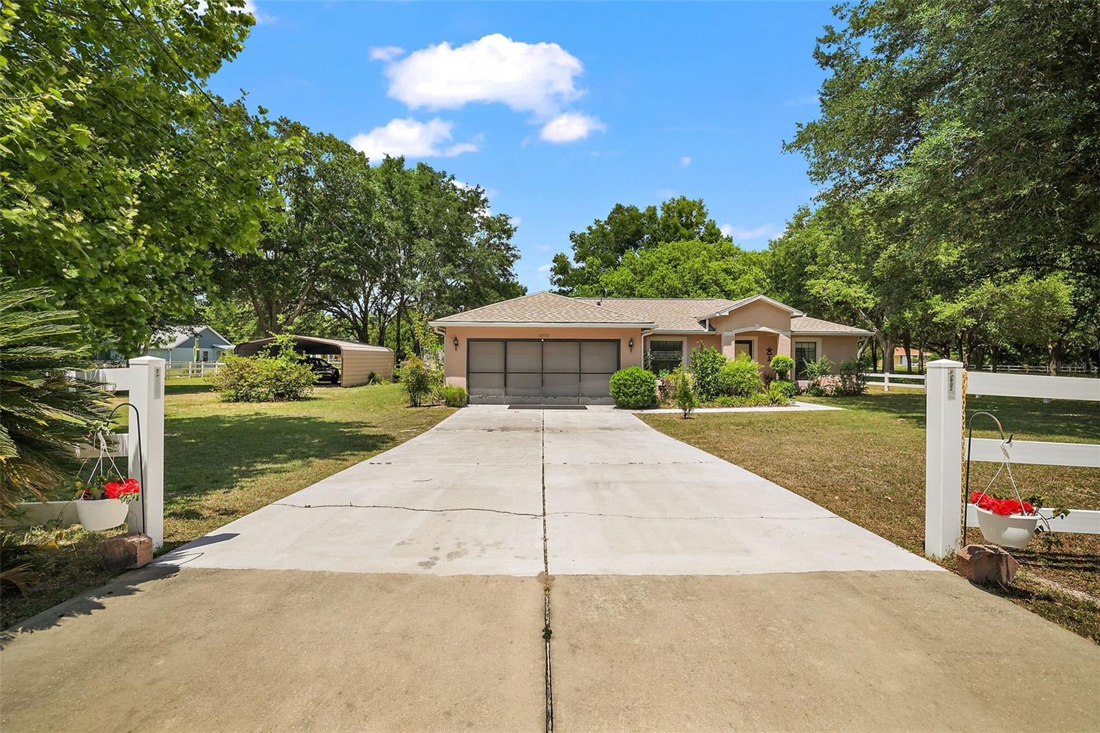 Aninhado em um lote de 1/2 acres de tamanho grande, nas pazes de rancho pacífica, este pitoresco 3 quartos, 2 banheiros, 2 carros, a casa de garagem é cercada por belas árvores e paisagens maduras. Esta casa encantadora possui uma sala de estar de conceito aberto, jantar e cozinha com teto de catedral. A espaçosa sala de vidro fechada na Flórida, perto da sala de jantar, é um local perfeito para uma rotina tranquila de café da manhã. Do lado de fora dos dois carros, é ideal o dossel de porta de aço galvanizado é ideal para armazenar um barco ou um 3º e 4º veículo. O galpão pré-fabuloso de 11,5x20 de metal transmite com venda. O perímetro da propriedade possui esgrima de vinil branca durável. Um sistema de segurança e um sistema de tratamento de água instalado. A minutos de restaurantes, supermercados e lojas de antiguidades de Dunnellon. Dirija rápido até o lindo rio Rainbow. Novo telhado (2024) e uma unidade CENT central mais recente (2020). Vendedor motivado