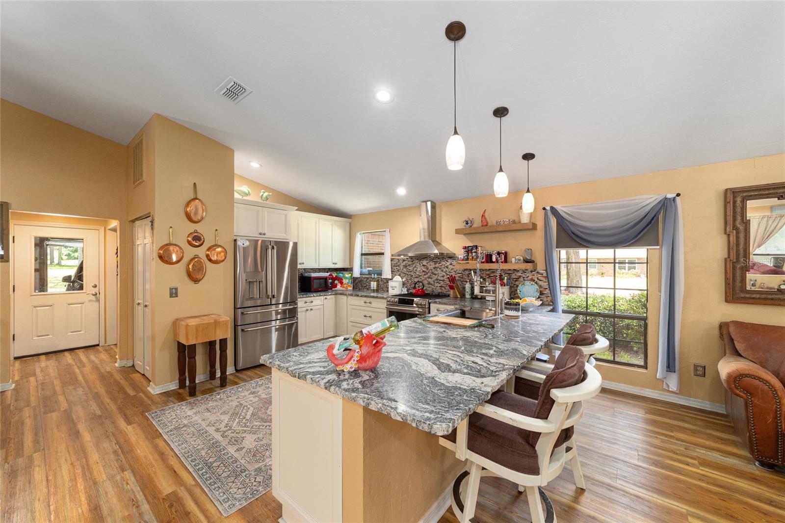 Se você é da Flórida ou apenas visita para o verão, todos sabemos que é necessária uma piscina ou algum corpo de água para sobreviver ao calor! Bem, esta casa não apenas tem uma piscina fantástica, mas também tem acesso direto às águas cristalinas do rio Rainbow! Com a rampa de parque privada e bar de barcos azuis logo atrás da sua cerca, esta casa dará a você e a seus convidados a conveniência de puxar seu barco diretamente para fora da garagem e para a rampa da comunidade. Se você não está familiarizado com o rio Rainbow, é um local espetacular para ver e desfrutar! O Rainbow River bombeia cerca de 450 milhões de galões de água cristalina de primavera fresca diariamente e percorre a cerca de 11 quilômetros do Rainbow Springs State Park Headspring e depois flui para o rio Withlacoochee, que passa a leste e oeste por quilômetros e quilômetros. O que isto significa? Horas e horas de diversão e diversão com amigos e/ou família do lado de fora da sua porta! Quanto a esta casa incrivelmente linda, tem tudo! Completely taken down to the studs and renovated in 2022, this home has a new roof on both the house and the external garage, new French doors, new Kraft-maid soft close cabinets, leather finish granite countertop, all new Cafe Appliances, new vanities in both bathrooms, new closet systems in all closets, top of the line LVP throughout the home and new tile in both bathrooms, barn door closet systems, Samsung washer and dryer, and the A lista continua! A questão é ... o que resta para eu fazer? Nada! É hora de se mudar, aproveitar o verão e se divertir nesta fantástica casa! Desfrute de sair na área da piscina exibida e charme quando você não está nadando, tubando, remando ou passeando de barco ao longo do rio! Se você não quer cozinhar, o Swampy's Restaurant está chegando e a uma curta distância desta casa, e o Purple Sage Cafe e outros restaurantes, compras e muito mais estão dentro de uma faixa de 5 minutos. Este é o lugar certo para aproveitar sua melhor vida, e esta casa tem tudo para você! Marque sua consulta hoje para uma visualização privada!