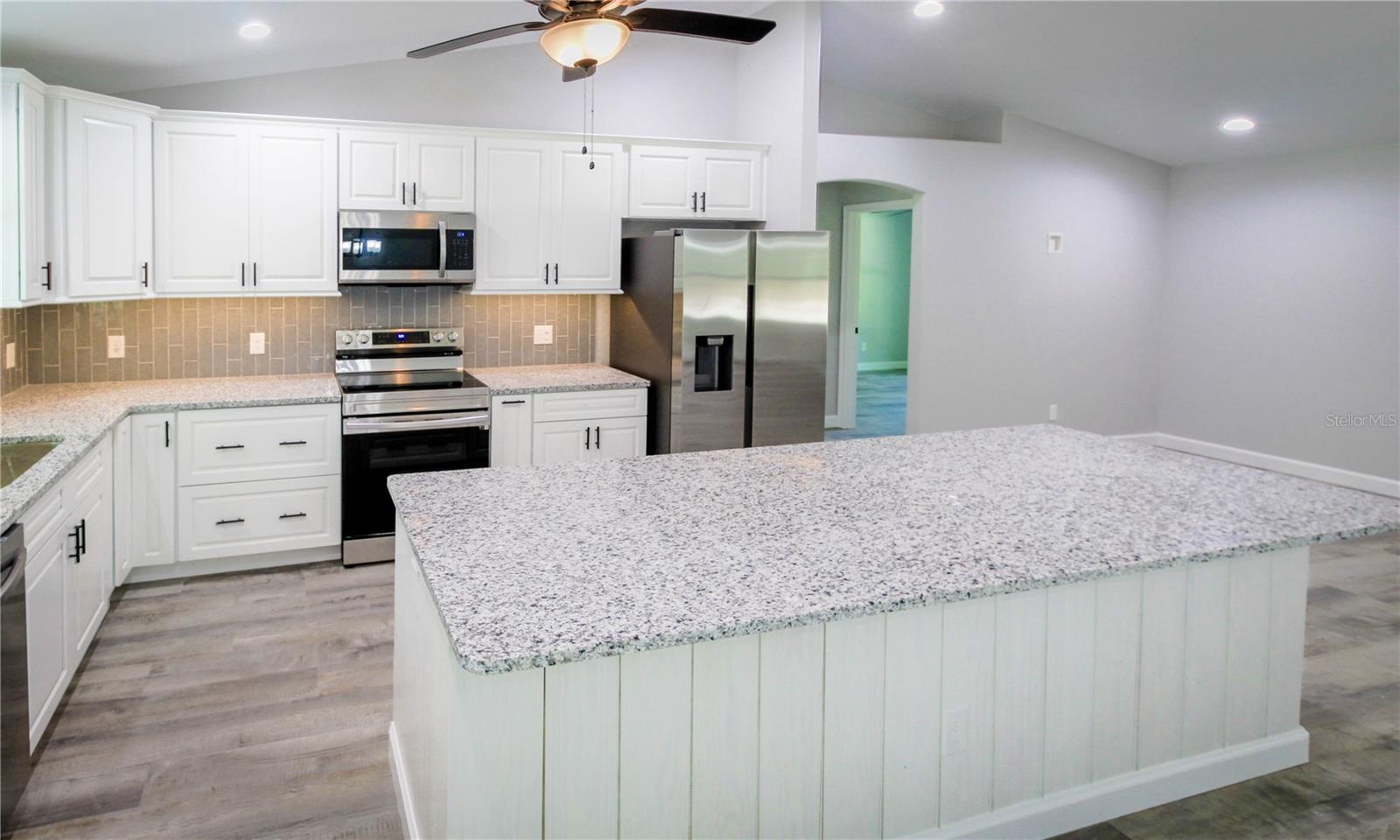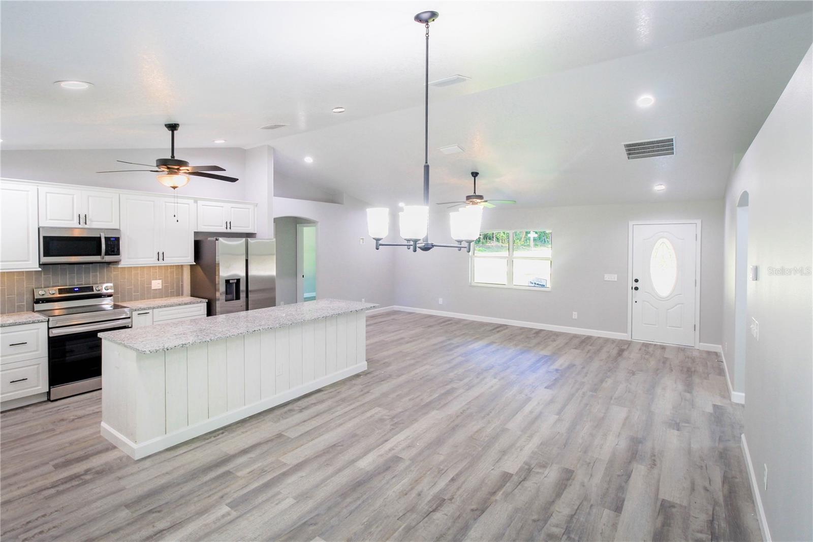 Nova construção. Mais de 1600 pés quadrados de espaço de estar é um destaque do McKenzie. Como em nossos outros modelos, ele é criado com nossa obra habitual de alta qualidade e finalizada com alguns dos melhores materiais disponíveis no mercado atual. Esse modelo McKenzie apresenta um plano de layout dividido com a suíte do proprietário em um lado da casa e os quartos secundários do outro para obter a privacidade final. A suíte do proprietário é destacada com um teto de bandeja e um grande closet. Um chuveiro de azulejos com um dreno linear facilita muito o chuveiro. A prancha de vinil de luxo é o piso na planta ampla com uma sala de estar aberta, sala de jantar e cozinha. A cozinha é elegante com balcões de granito e utensílios de aço inoxidável. Uma grande ilha fornecerá assentos para seus convidados transbordantes. Uma entrada coberta acolhedora e convidativa na frente da casa oferece um bom local para tomar o seu café da manhã. Um grande quintal coberto Lanai oferece um espaço descontraído para entretenimento. Uma almofada de concreto para a churrasqueira é conveniente para esse grelhar ao ar livre.