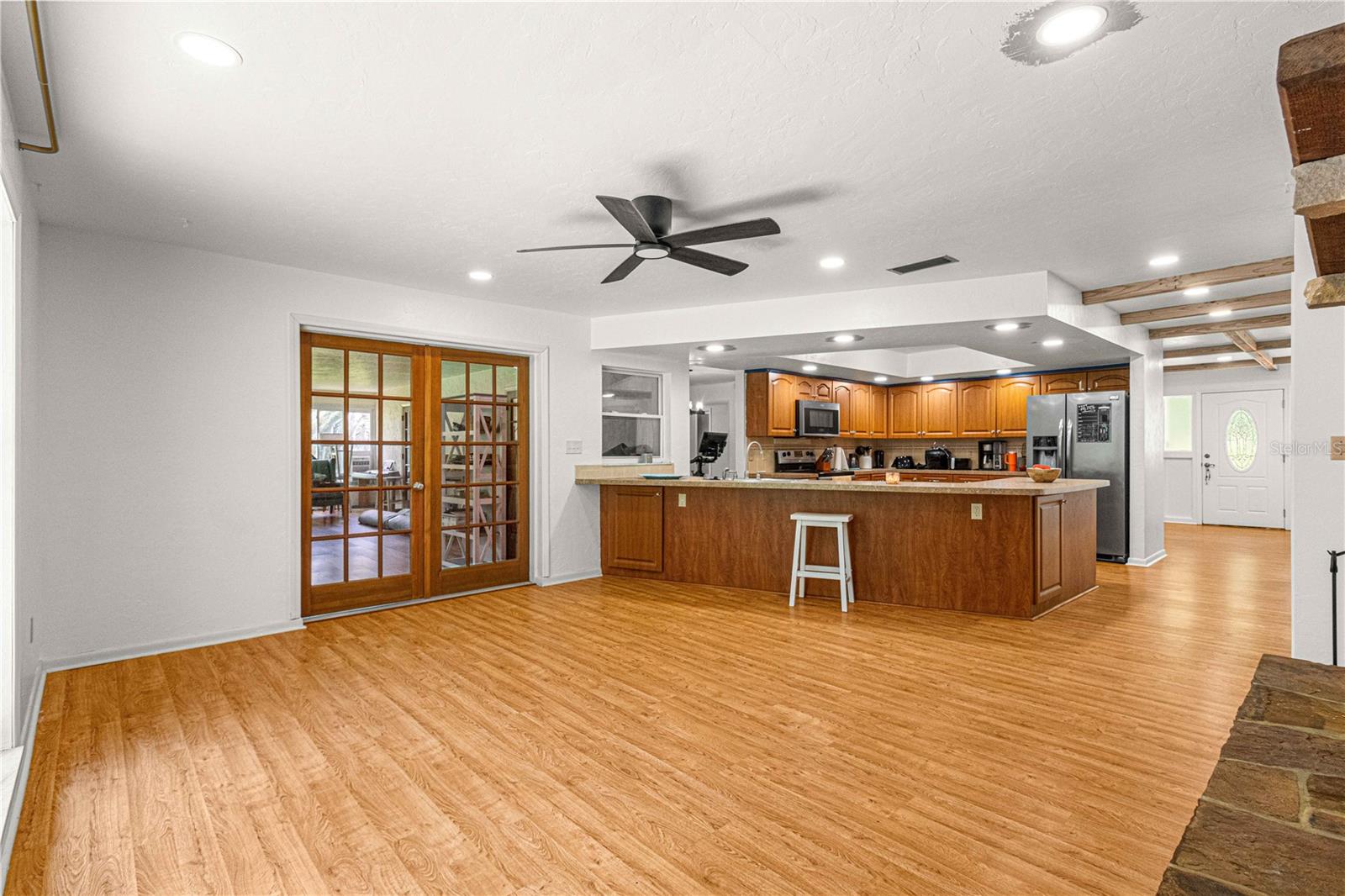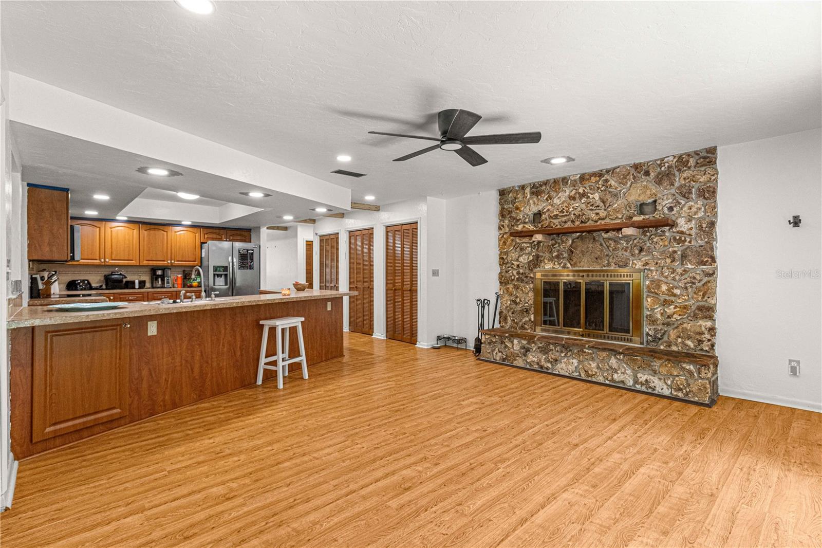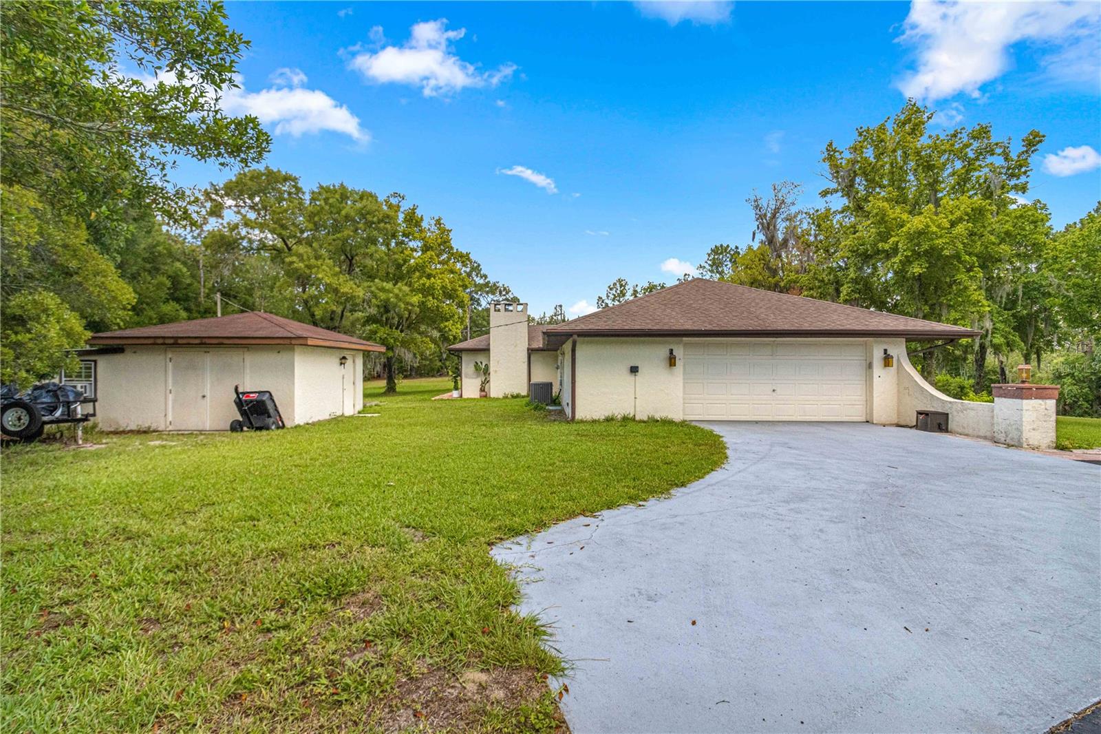 BEM-VINDO A CASA! Entre no luxo e na tranquilidade com esta casa requintada situada na procurada comunidade de Rainbow Springs. Situada em um generoso terreno de esquina de 1,21 acres adornado com majestosas árvores maduras e uma encantadora estrada circular, esta residência oferece elegância e conforto. Ao entrar, você é recebido por um layout espaçoso com área de estar e jantar formal, perfeita para receber convidados. A cozinha possui amplo armazenamento com três despensas e uma conveniente barra de café da manhã que se abre perfeitamente para a aconchegante sala de família adornada com uma lareira a lenha. Desfrute de relaxamento durante todo o ano no quarto Florida, acessível através de portas francesas na sala familiar, na sala de jantar e no quarto principal. Fechado com janelas isoladas, oferece vistas serenas da floresta exuberante, criando um local ideal para relaxar. A ampla suíte master inclui uma área de estar, enquanto o banheiro master possui pias duplas na penteadeira e uma pia adicional no sanitário, complementada por um amplo closet. O design de planta dividida da casa garante privacidade, com dois quartos adicionais e um banheiro de hóspedes. As atualizações incluem um novo aquecedor de água quente e sistema HVAC instalado em 2021, garantindo eficiência e conforto. Reforçando o charme estão os novos ventiladores de teto e vigas de madeira na sala, acrescentando um toque de sofisticação. Do lado de fora, uma oficina com amplo espaço de armazenamento e fonte de alimentação de 60 A aguarda seus projetos e hobbies, enquanto a propriedade na Comunidade Rainbow Springs concede acesso exclusivo a um pavilhão privado, praia, áreas de natação e pontos de lançamento para caiaques, canoas e tubos ao longo do pitoresco Rio Rainbow. Não perca a chance de experimentar o melhor da vida em Rainbow Springs, agende uma exibição privada hoje mesmo!