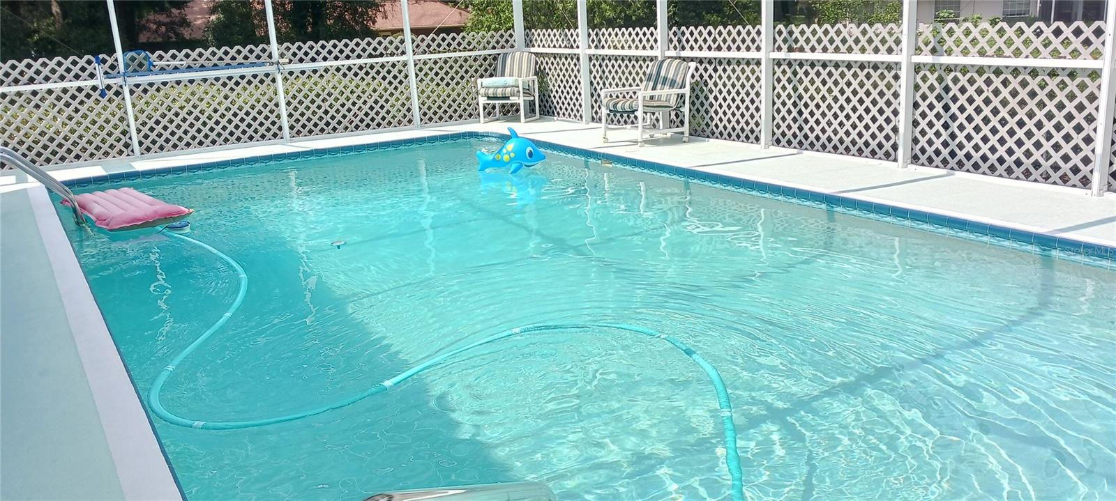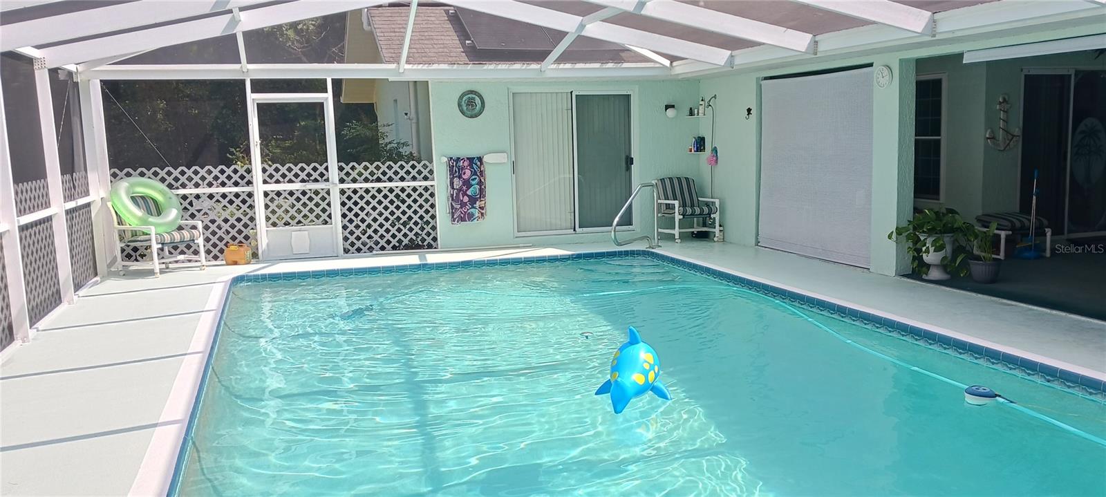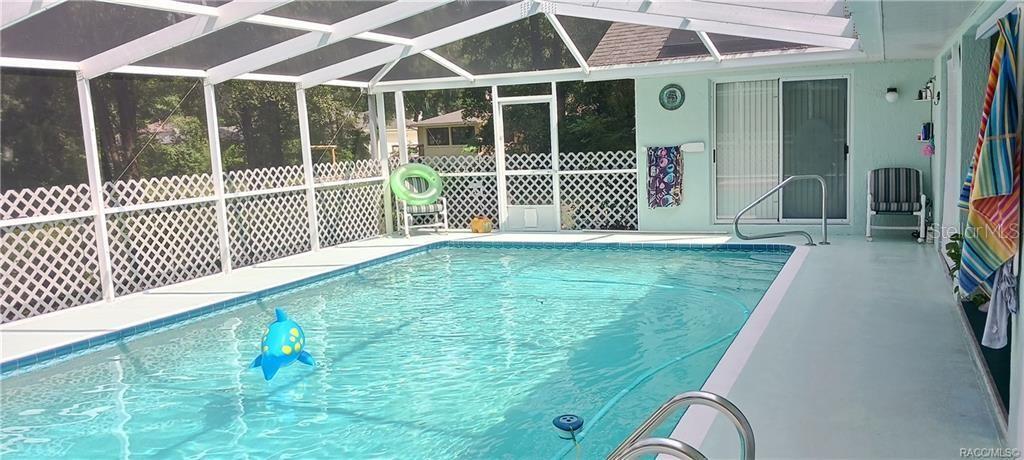 *** teto novo *** Esta é uma casa lindamente paisagística de 3 quartos de 2 quartos que fica em um beco sem saída. A casa é montada como uma planta baixa, com dois espaços separados e uma cozinha enorme com bancadas de Corian e uma ilha no meio. Existem 4 conjuntos de portas deslizantes que trazem muita luz para a casa e levam a um enorme lanai, que tem uma cozinha completa de verão e uma piscina de 16x32. A casa é cadeira de rodas acessível com rampas na porta da frente e deslizante traseiro, além de barras de garras no chuveiro. As calhas têm guardas de folhas, e o sistema de aspersores sai de um poço. A casa está conectada para um sistema de alarme, mas nunca foi usada. A comunidade tem uma rampa de barco, piscina, quadras de tênis e um restaurante. A melhor parte é que há um parque para os residentes apenas com acesso ao rio Rainbow, onde você pode fazer um piquenique ou lançar uma canoa, caiaque ou um tubo.