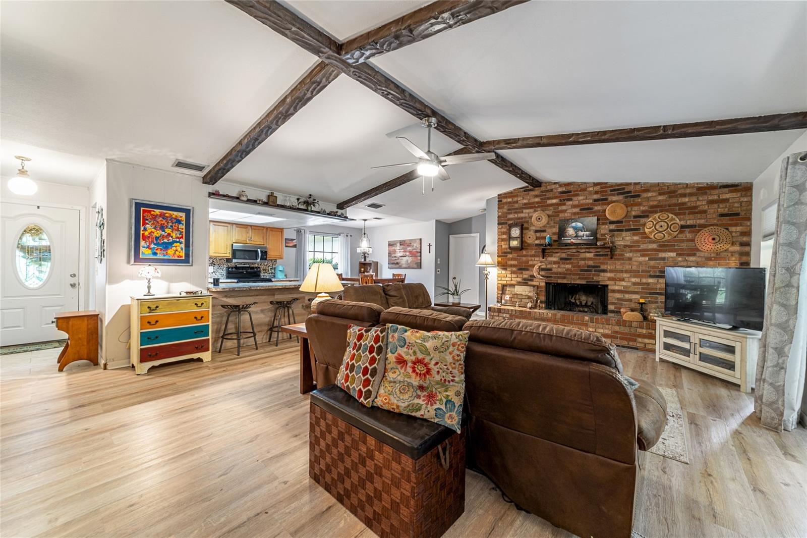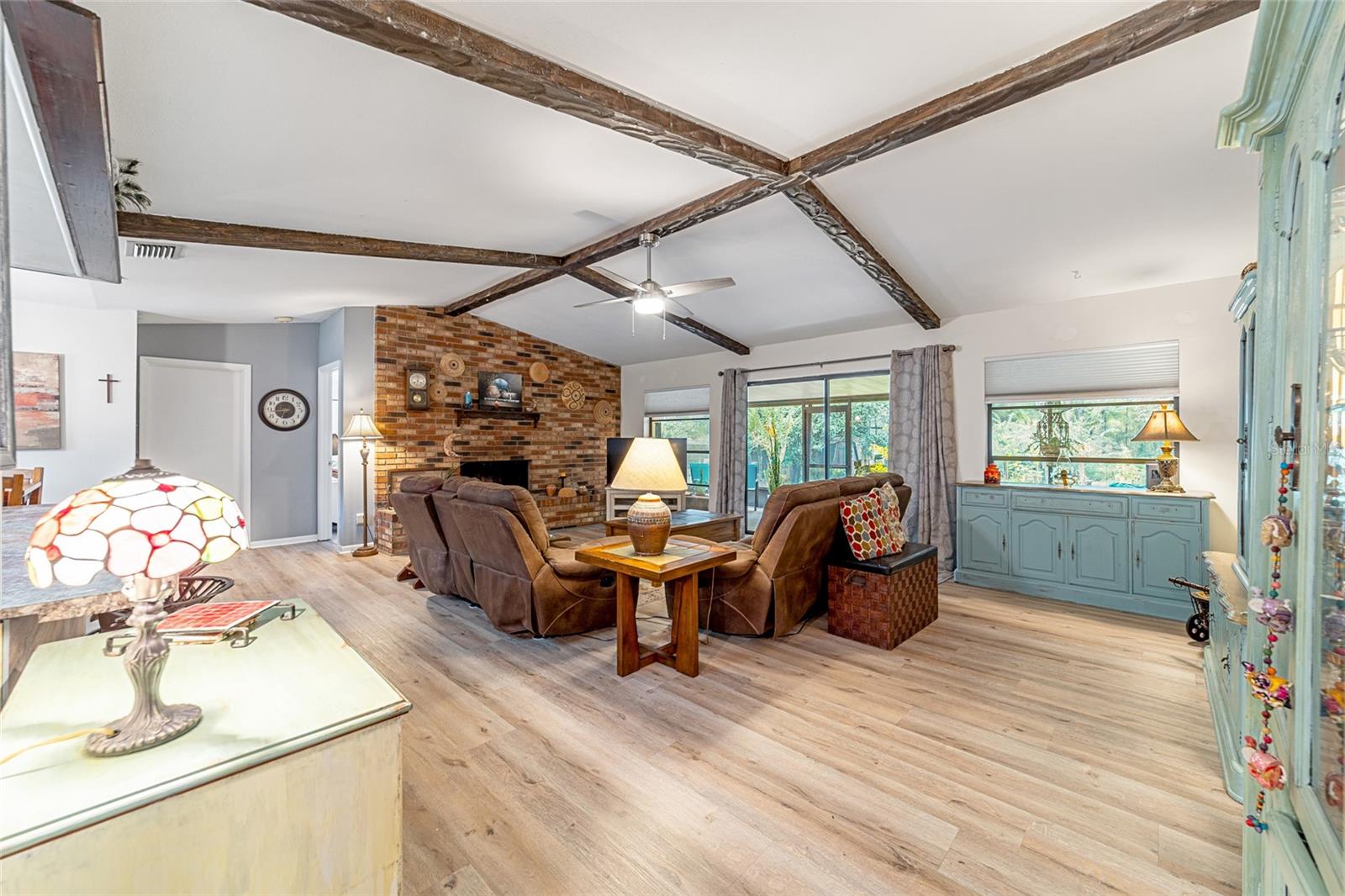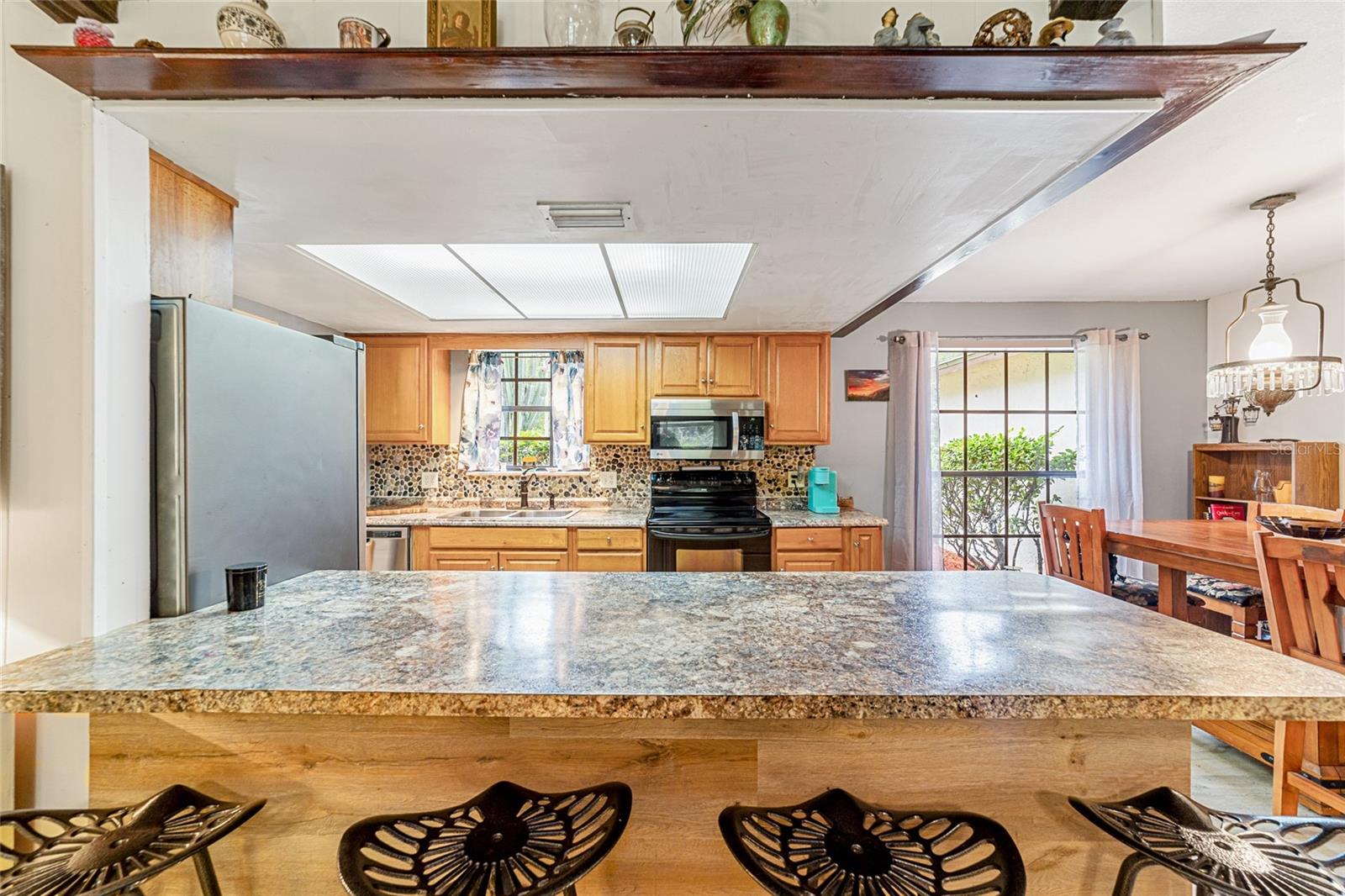 NÃO HOA! NÃO EM UMA ZONA DE INUNDAÇÃO! NOVO TELHADO! Situada em um lote generoso de 0,51 acres, esta casa de 3 quartos e 3 banheiros completos possui um layout cuidadosamente projetado com duas suítes master, perfeitas para residências multigeracionais ou acomodações de hóspedes. A sólida construção em blocos de concreto e a garagem para 2 carros proporcionam durabilidade e amplo espaço. Entre nesta casa convidativa e seja recebido por uma planta espaçosa e de conceito aberto que maximiza a privacidade e o fluxo. A área de estar apresenta uma aconchegante lareira de tijolos a lenha, perfeita para criar lembranças calorosas nas noites mais frias. O luxuoso piso de pranchas de vinil (LVP) se estende por uma suíte master e pelas áreas de cozinha/estar, enquanto os outros dois quartos apresentam carpete macio novo para maior conforto. Todos os três banheiros foram atualizados com bom gosto, com novas pias, pias e elegantes chuveiros e pisos de azulejos, oferecendo um toque moderno ao charme clássico da casa. Aproveite seu café da manhã ou relaxamento à noite na adorável varanda com tela, com vista para um quintal privativo lindamente cuidado - um oásis tranquilo para viver ao ar livre, entretenimento ou jardinagem. A propriedade inclui dois galpões, proporcionando armazenamento extra ou espaço de trabalho, tornando-a ideal para quem tem hobbies ou equipamentos ao ar livre. Faça sua consulta hoje. Veja também uma de nossas outras listagens na área em 19873 SW 59TH LANE, DUNNELLON, Flórida 34431 (OM681476)