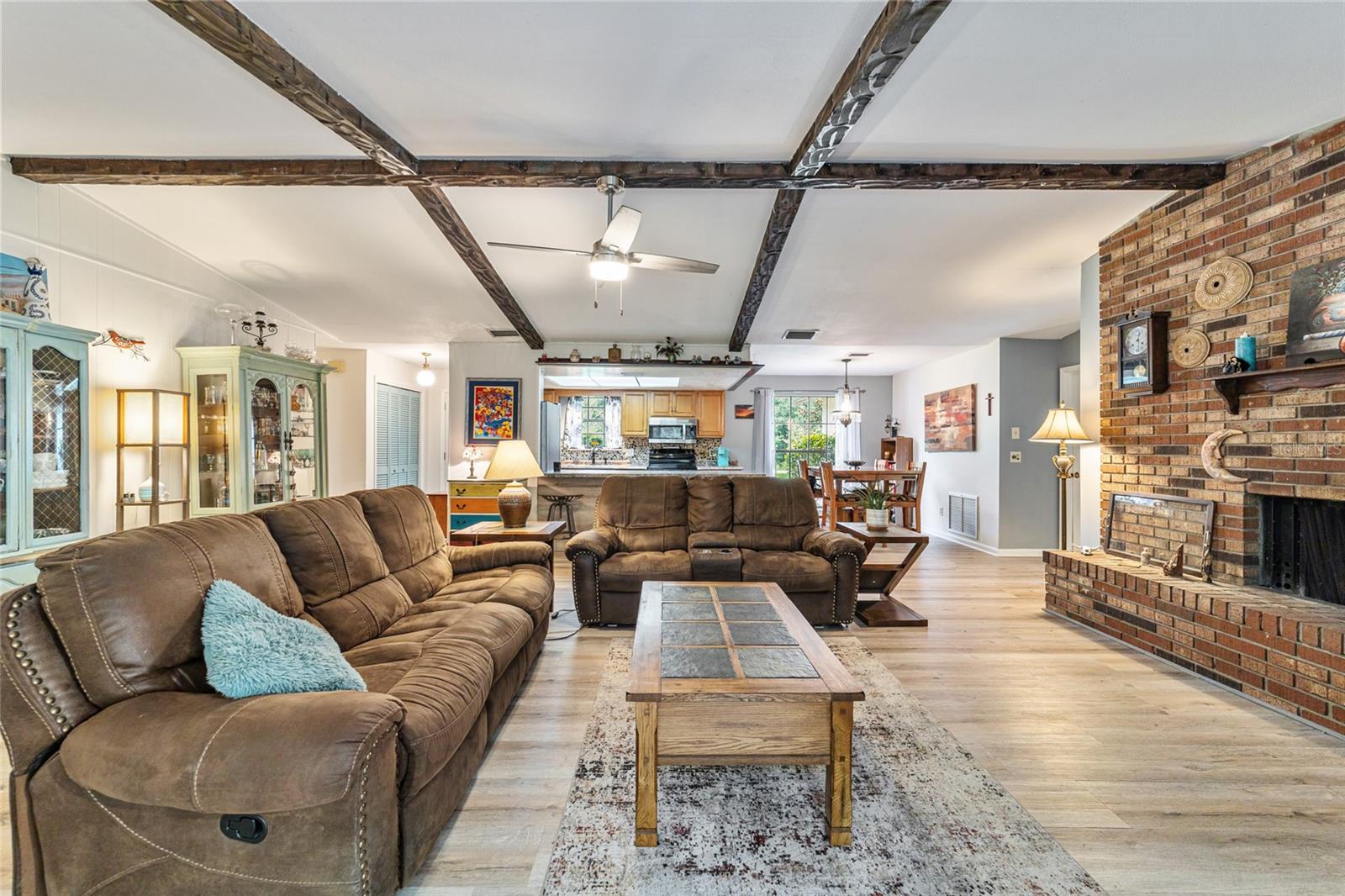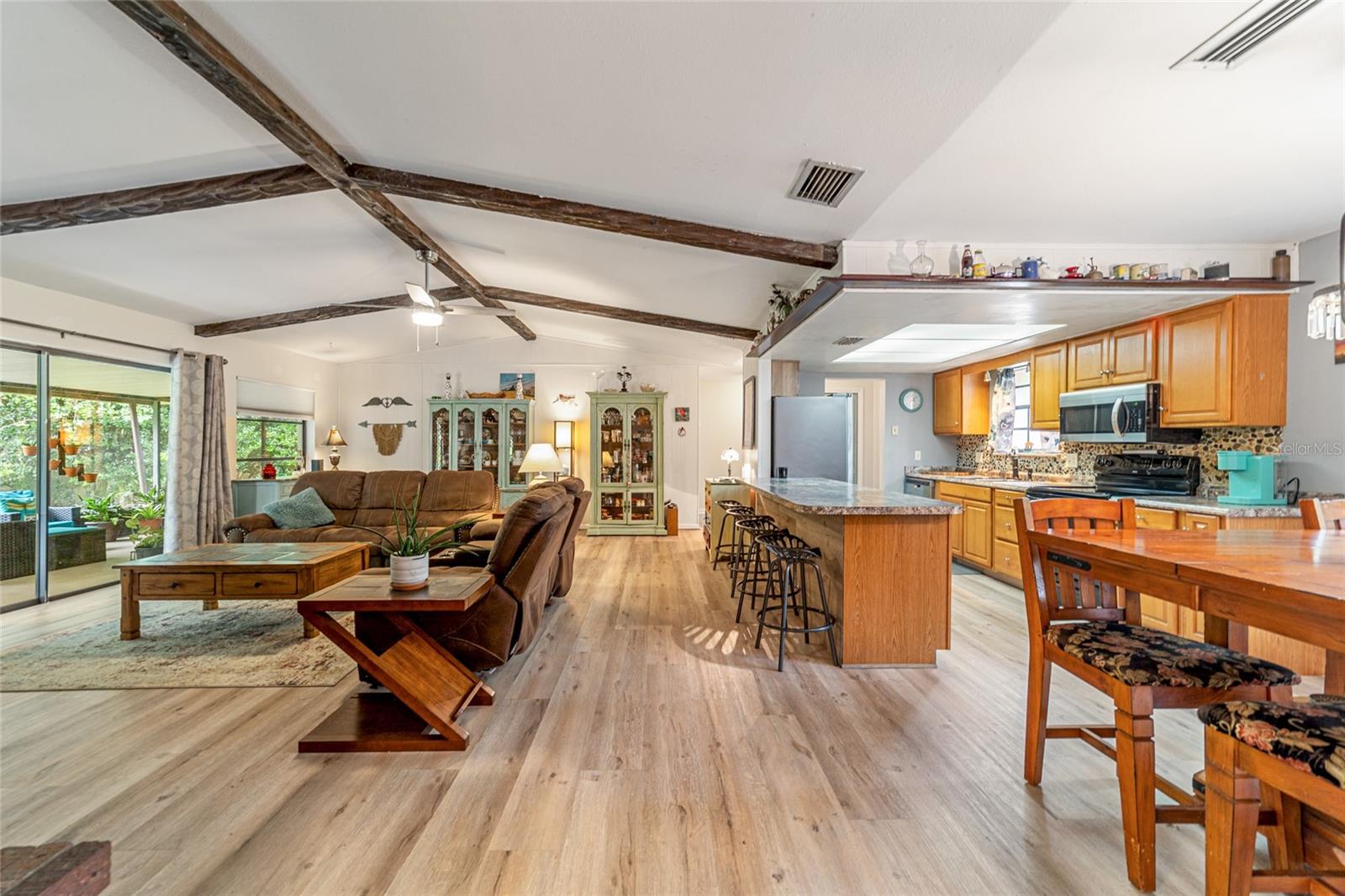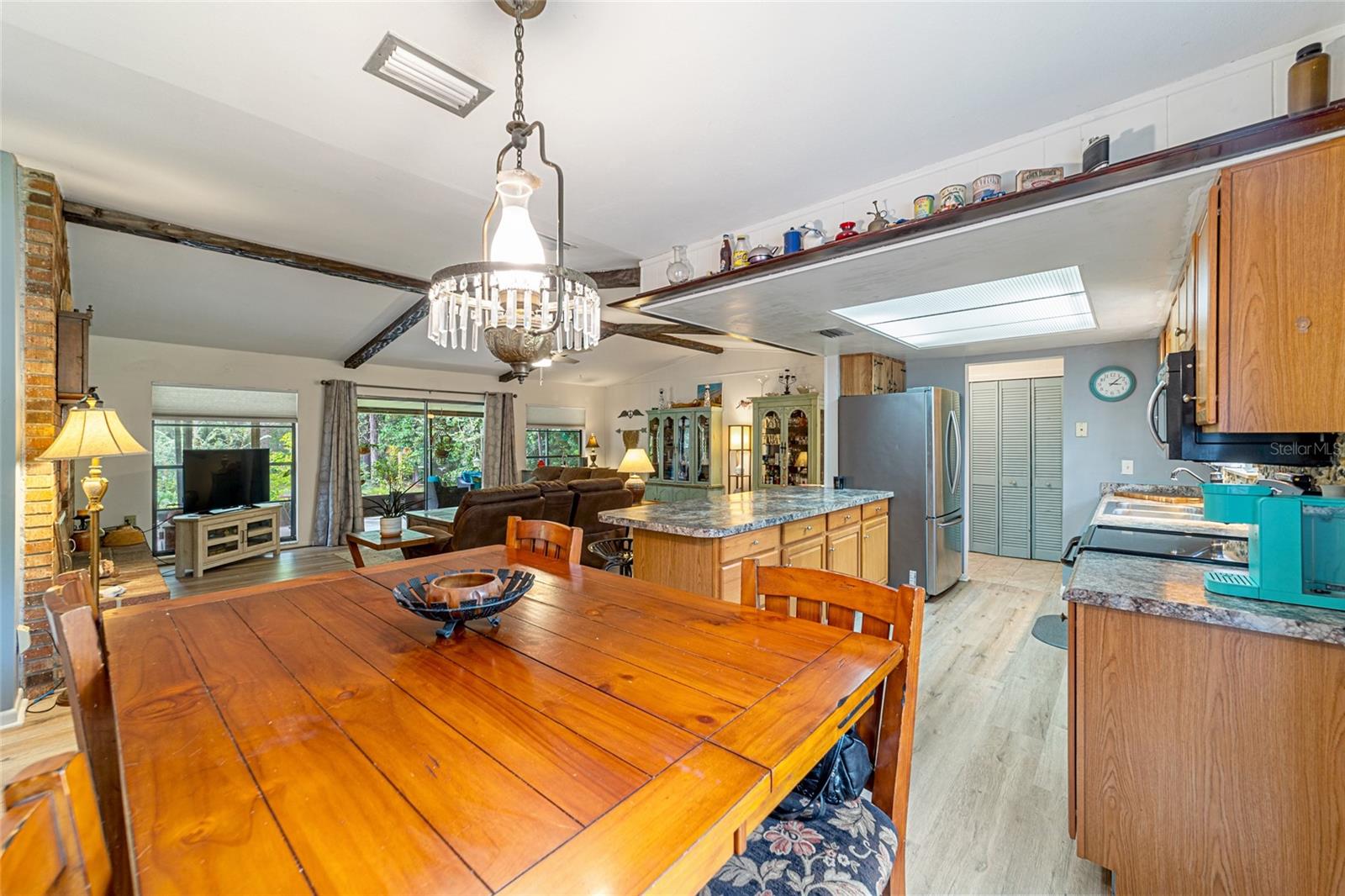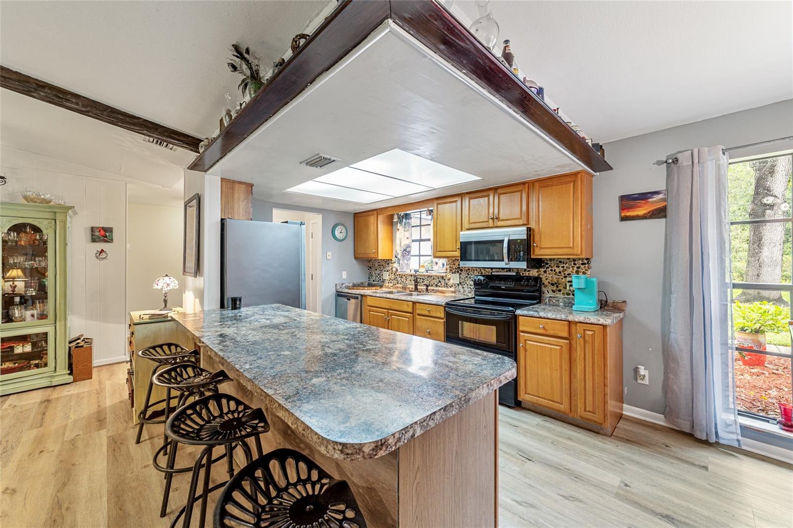 NÃO HOA! NÃO EM UMA ZONA DE INUNDAÇÃO! NOVO TELHADO! Situada em um lote generoso de 0,51 acres, esta casa de 3 quartos e 3 banheiros completos possui um layout cuidadosamente projetado com duas suítes master, perfeitas para residências multigeracionais ou acomodações de hóspedes. A sólida construção em blocos de concreto e a garagem para 2 carros proporcionam durabilidade e amplo espaço. Entre nesta casa convidativa e seja recebido por uma planta espaçosa e de conceito aberto que maximiza a privacidade e o fluxo. A área de estar apresenta uma aconchegante lareira de tijolos a lenha, perfeita para criar lembranças calorosas nas noites mais frias. O luxuoso piso de pranchas de vinil (LVP) se estende por uma suíte master e pelas áreas de cozinha/estar, enquanto os outros dois quartos apresentam carpete macio novo para maior conforto. Todos os três banheiros foram atualizados com bom gosto, com novas pias, pias e elegantes chuveiros e pisos de azulejos, oferecendo um toque moderno ao charme clássico da casa. Aproveite seu café da manhã ou relaxamento à noite na adorável varanda com tela, com vista para um quintal privativo lindamente cuidado - um oásis tranquilo para viver ao ar livre, entretenimento ou jardinagem. A propriedade inclui dois galpões, proporcionando armazenamento extra ou espaço de trabalho, tornando-a ideal para quem tem hobbies ou equipamentos ao ar livre. Faça sua consulta hoje. Veja também uma de nossas outras listagens na área em 19873 SW 59TH LANE, DUNNELLON, Flórida 34431 (OM681476)