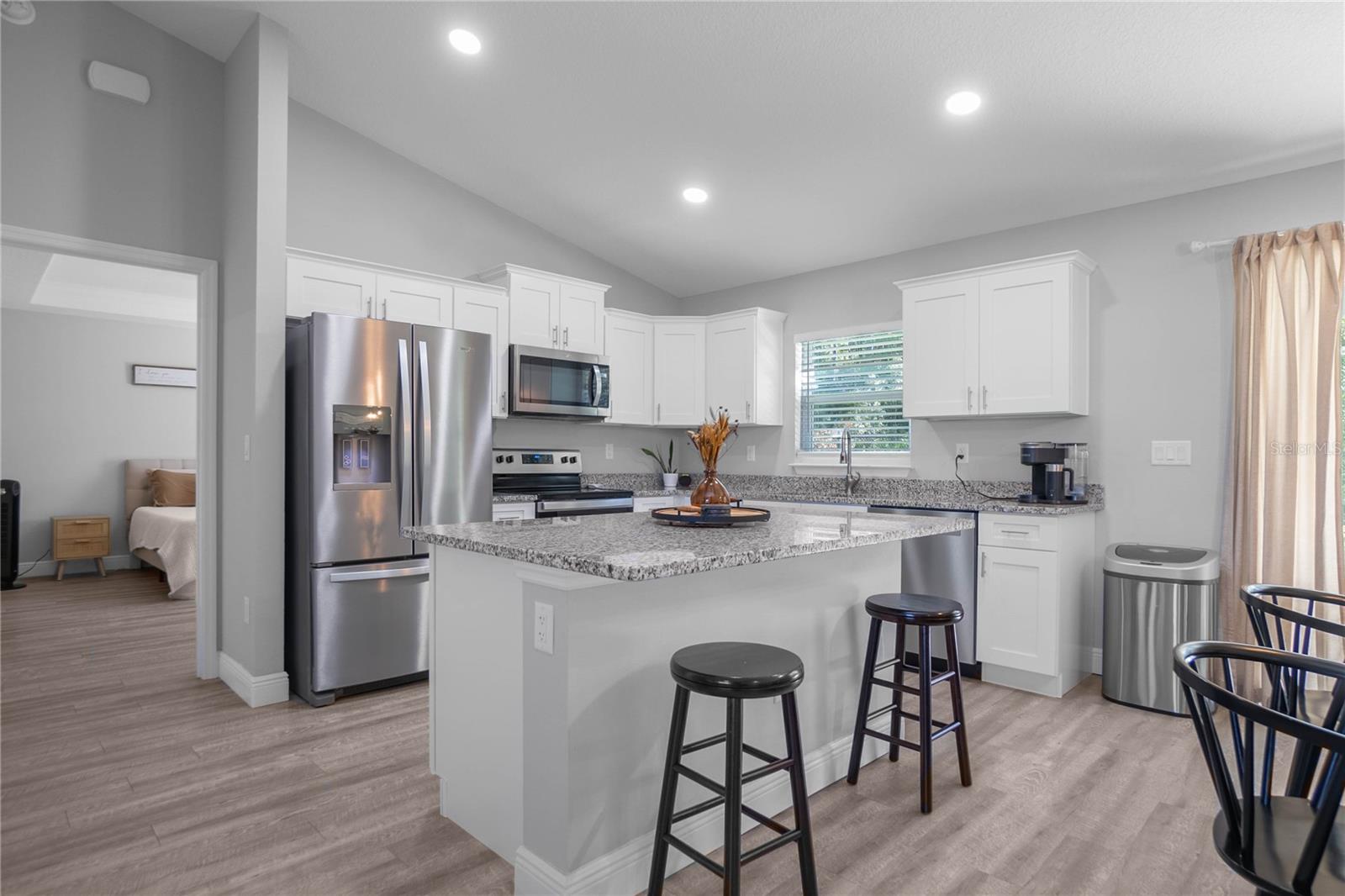 Esta impressionante casa 3/2/2 nova, construída em 2023, oferece atualizações modernas com 1.574 de área útil situada em um lote de 0,23 acres. No interior, você vai adorar a iluminação decorativa, a área de jantar separada, a lavanderia interna, os tetos abobadados, a planta aberta e dividida, as luzes embutidas e o luxuoso piso de vinil. A cozinha inclui uma elegante ilha com balcão e está equipada com armários de madeira, bancada em granito, despensa, luminárias embutidas e eletrodomésticos em aço inox. O banheiro privativo possui um belo teto de bandeja com sancas, um grande closet e pias duplas. Saia para a varanda coberta e aproveite o quintal cercado com sua família ou bebês de peles. A propriedade também inclui sistema de tratamento de água, seis câmeras de segurança e luzes Govee na frente, garantindo que sua casa seja elegante e segura. Não perca esta oportunidade de possuir uma casa lindamente reformada e pronta para morar!