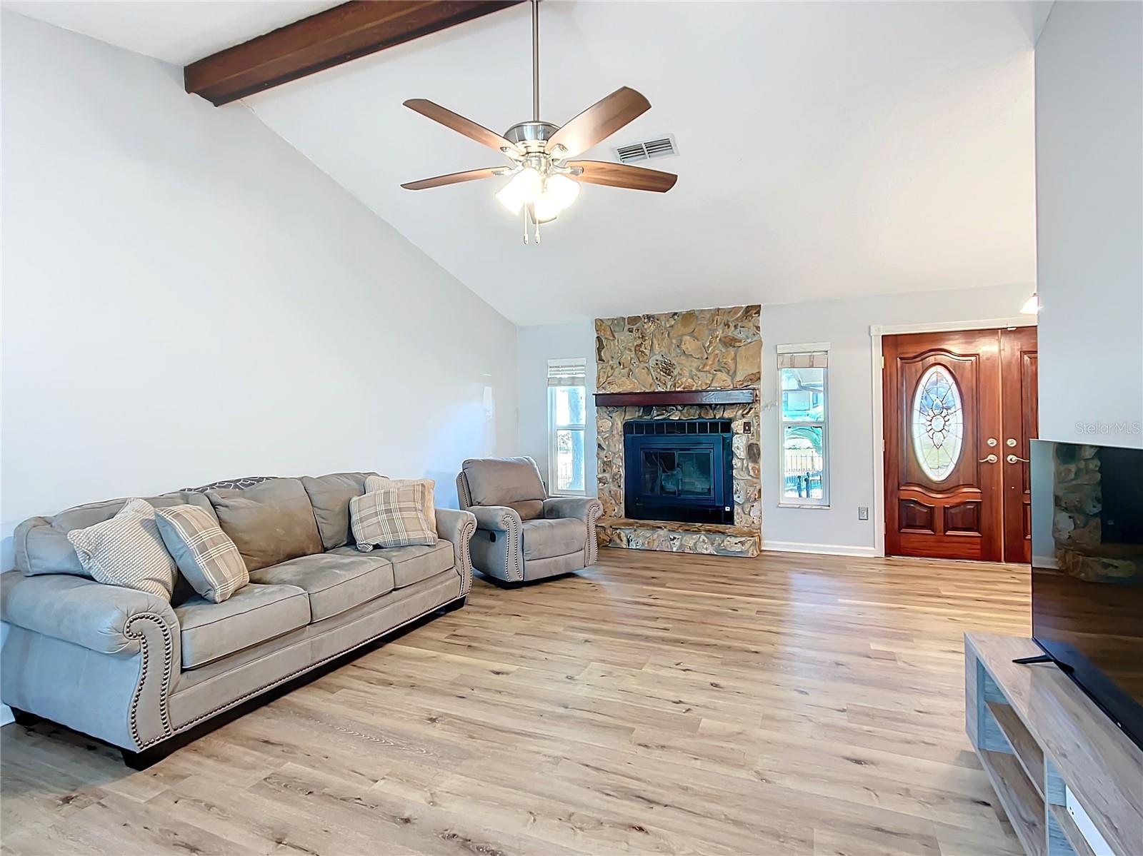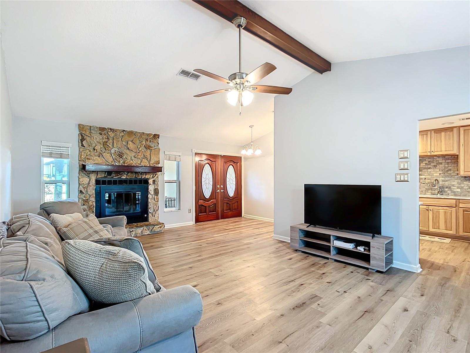 Tudo o que você poderia querer na sua nova casa está aqui! Esta bela CASA COM PISCINA fica em MAIS DE 1/2 ACRE de propriedade, SEM VIZINHOS NAS COSTAS e vistas deslumbrantes! A cozinha atualizada possui ARMÁRIOS DE HICKORY SÓLIDOS com fechamento suave, BANCADAS DE GRANITO, BACKSPLASH DE TILED e APARELHOS DE AÇO INOXIDÁVEL resistentes a manchas atualizados. O PISO DE TÁBUAS DE VINIL DE LUXO cobre toda a área de estar e quartos da casa. A ampla e acolhedora sala tem uma linda LAREIRA DE PEDRA para aquelas noites mais frias da Flórida. O espaçoso quarto principal tem MOLDURA DE COROA e um banheiro privativo REMODELADO. Os dutos foram limpos recentemente e uma luz antialérgica foi adicionada ao sistema. Muitos quartos foram repintados com tinta neutra fresca. Há uma grande lavanderia separada com ar-condicionado que também pode funcionar como escritório ou academia doméstica. Aproveite o clima quente da Flórida em sua PISCINA NO SOLO de 17' x 34' que tem 9 1/2 pés de profundidade e foi recentemente drenada, lavada com ácido, convertida em água salgada e tem um novo filtro, bomba e luzes. O banheiro de hóspedes atualizado pode ser acessado a partir da casa e/ou do deck da piscina. PAVERS IMPRESSIONANTES cercam a piscina, bem como uma GRANDE GAIOLA DE PÁSSAROS que cobre a área da piscina para mantê-la livre de detritos. Precisa de dependências de armazenamento? Existe um CELEIRO com electricidade e um galpão adicional. TELHADO 2023 e HVAC 2022 e SEM HOA. Esta casa preenche todos os requisitos, agende sua exibição hoje mesmo!