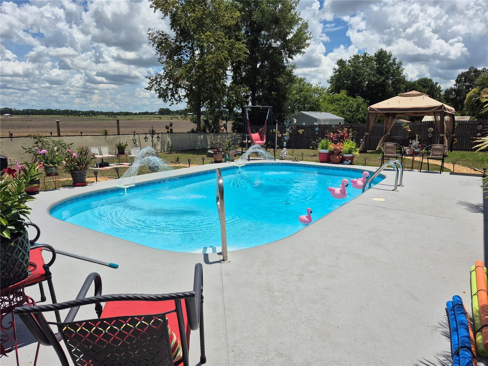 Linda piscina em casa apenas esperando você se mudar e fazer a sua. Bom 3 quartos, 2 banheiros em casa com muito armazenamento. O quintal completamente cercado na piscina no chão, apenas esperando você desfrutar do nosso lindo clima da Flórida. Home apresenta planta baixa com suíte master separada de 2 quartos extras e banheiro da piscina. Piso de tábua de vinil mais recente em conceito aberto de vida/cozinha. Área de jantar com muito espaço para uma grande mesa da sala de jantar, se você tiver essa necessidade. O espaço de vida é aconchegante com lareira no canto. A Kitchen foi removida e aberta ao espaço para você gostar de entreter sua família e amigos ou apenas para que você possa cozinhar enquanto assiste a seus programas favoritos na TV. A garagem foi modificada para fornecer espaço de armazenamento fechado para todos os seus brinquedos e equipamentos extras. A área de lavanderia está na garagem, mas você tem uma bela sala de despensa/lama ao entrar na casa da garagem, que está sendo convertida em um bom escritório/mídia/teatro, com muitas modificações na casa para torná -la amigável para a deficiência, como interruptores de luzes mais baixos. Isso é imperdível - tão próximo, mas privacidade, com uma cerca de privacidade em torno do quintal e nada além de terras agrícolas. Alguns dos pôr do sol mais incríveis estarão certos sobre sua piscina; Quanto mais agradável ele pode ficar?. Não perca esta casa incrível com um potencial magnífico e perto do rio, atrações e restaurantes da cidade.