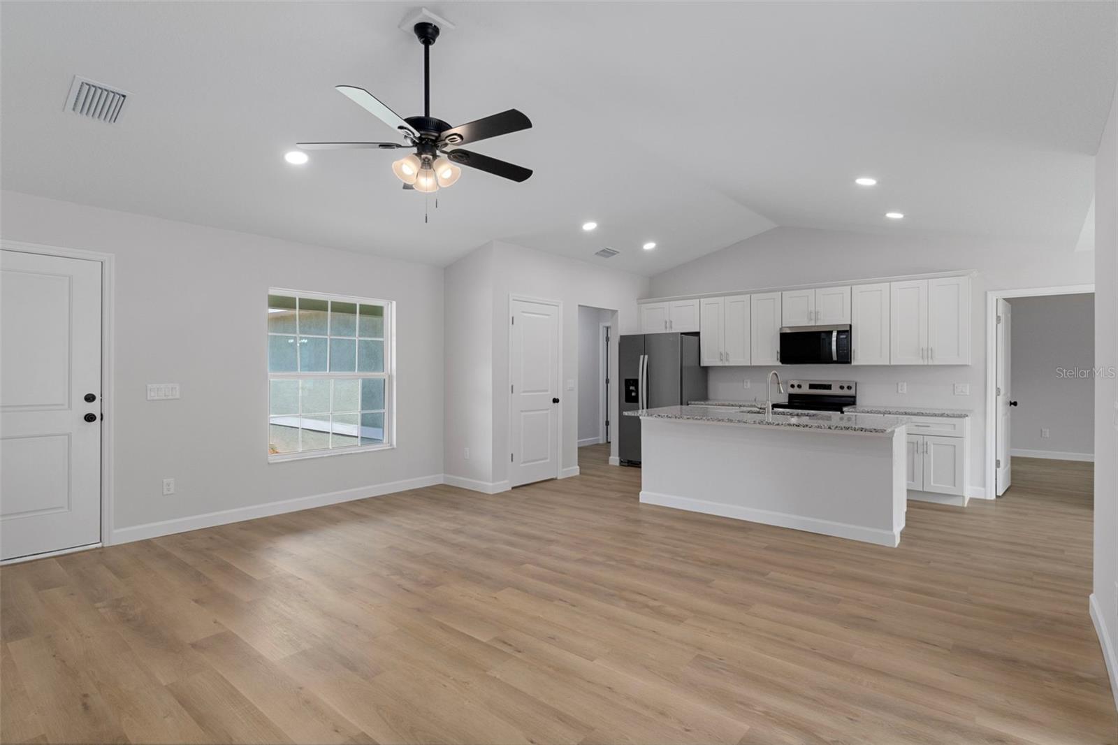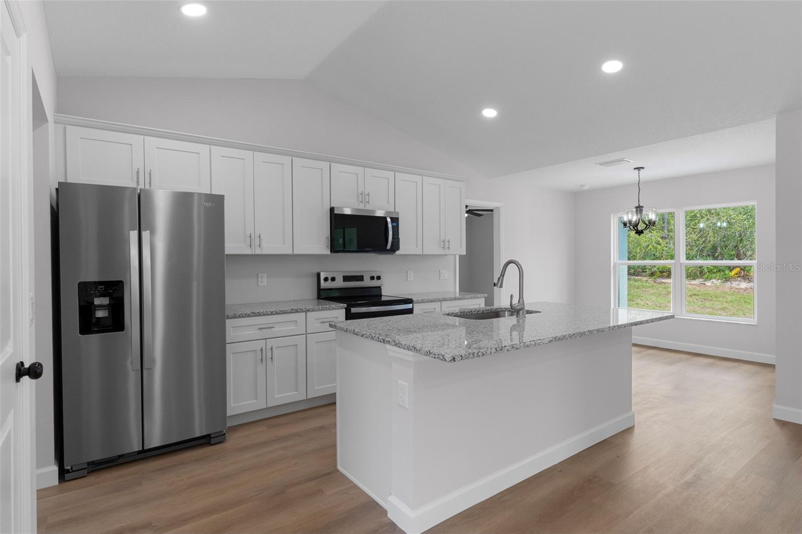 Nova construção impressionante com elegância moderna e conforto diário Entre nesta casa de 3 quartos e dois quartos, com uma planta de conceito aberto e acabamentos de ponta. O coração da casa é uma cozinha brilhante e elegante com bancadas de granito, armários brancos nítidos, utensílios de aço inoxidável e uma área de jantar espaçosa - perfeita para refeições em família ou amigos divertidos. Correndo perfeitamente da cozinha, a ampla sala oferece um espaço convidativo para relaxar ou se reunir, tudo aprimorado pelo piso de tábua de vinil durável de luxo que corre por toda a casa. Os banheiros são finalizados com ladrilhos elegantes, adicionando um toque de sofisticação atemporal. Relaxe na suíte primária privada, completa com um closet e um banheiro privativo lindamente decorado. Uma lavanderia de grandes dimensões oferece armazenamento e conveniência generosos para famílias ocupadas. Aproveite o melhor da Flórida que vive com uma varanda coberta e uma varanda traseira coberta - ideal para café da manhã, vinho da noite ou simplesmente embeber ao ar livre. Esta casa combina artesanato de qualidade, design atencioso e recursos modernos - prontos para você se mudar e torná -lo seu. Algumas fotos interiores foram praticamente encenadas.