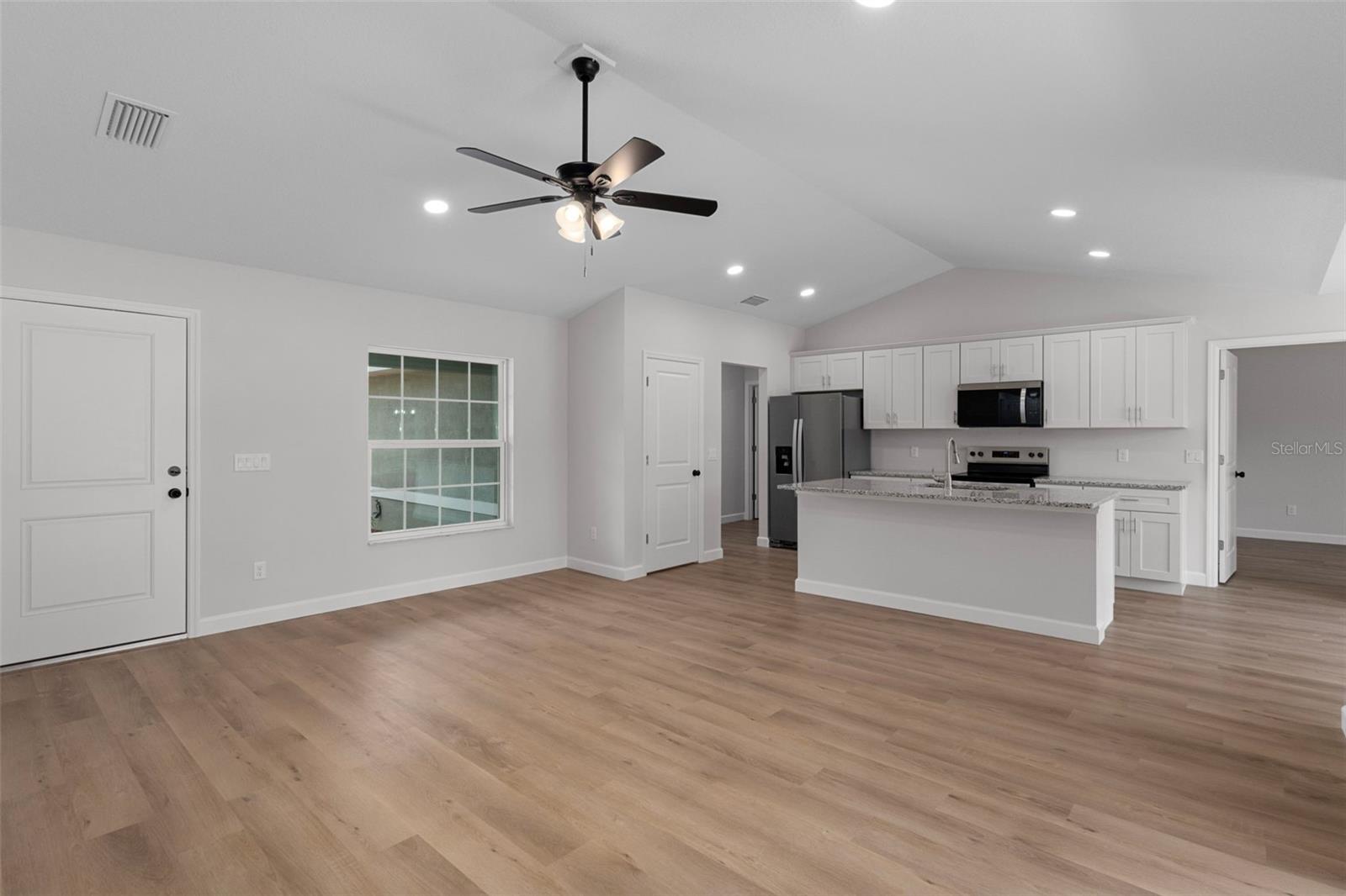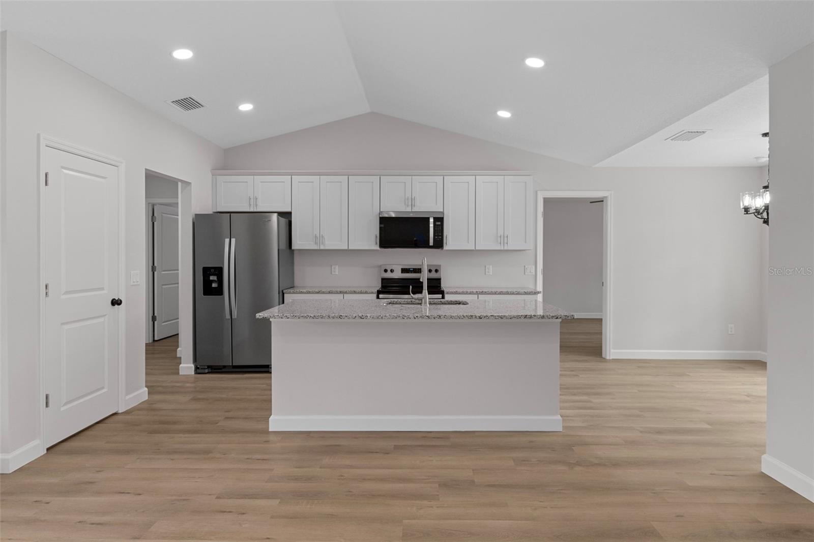 Nova construção impressionante com elegância moderna e conforto diário Entre nesta casa de 3 quartos e dois quartos, com uma planta de conceito aberto e acabamentos de ponta. O coração da casa é uma cozinha brilhante e elegante com bancadas de granito, armários brancos nítidos, utensílios de aço inoxidável e uma área de jantar espaçosa - perfeita para refeições em família ou amigos divertidos. Correndo perfeitamente da cozinha, a ampla sala oferece um espaço convidativo para relaxar ou se reunir, tudo aprimorado pelo piso de tábua de vinil durável de luxo que corre por toda a casa. Os banheiros são finalizados com ladrilhos elegantes, adicionando um toque de sofisticação atemporal. Relaxe na suíte primária privada, completa com um closet e um banheiro privativo lindamente decorado. Uma lavanderia de grandes dimensões oferece armazenamento e conveniência generosos para famílias ocupadas. Aproveite o melhor da Flórida que vive com uma varanda coberta e uma varanda traseira coberta - ideal para café da manhã, vinho da noite ou simplesmente embeber ao ar livre. Esta casa combina artesanato de qualidade, design atencioso e recursos modernos - prontos para você se mudar e torná -lo seu. Algumas fotos interiores foram praticamente encenadas.