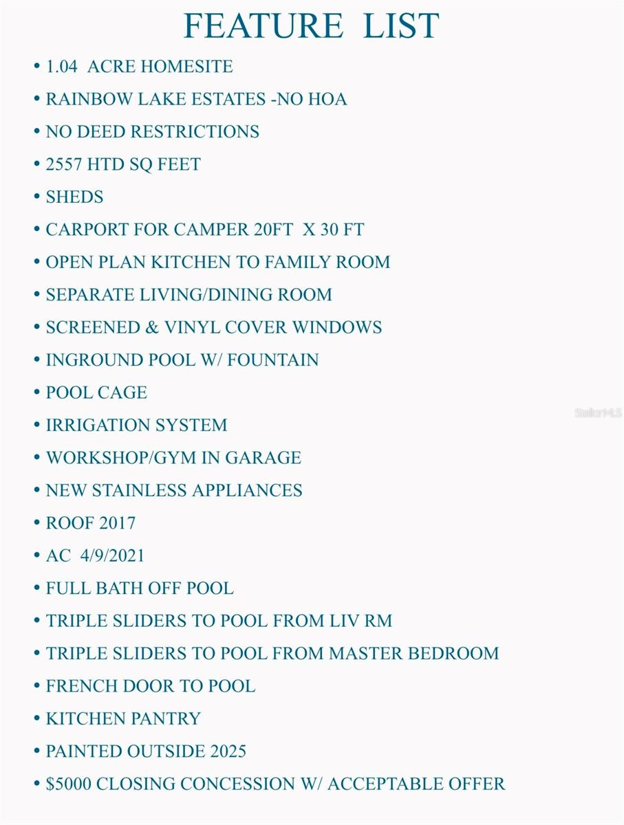 CASA COM PISCINA NO CAMPO! Rainbow Lakes Estates.! Pergunte sobre um FHA com uma TAXA DE JUROS DE 4,99 POR CENTO, taxa fixa de 30 anos OU custos de fechamento pagos pelo credor! Esta CASA COM PISCINA de 4 quartos/3 banheiros fica em um lote bem cuidado de 1,04 ACRE - OS VENDEDORES ESTÃO PINtando DENTRO AGORA! SEM HOA, SEM restrições de escritura! Estradas pavimentadas. Telhado 2017, 2021 HAVC, 2024 pintado. 2.557 pés quadrados de área de estar e uma piscina subterrânea de água salgada com cachoeira cintilante cercada por uma varanda com tela de 37 x 25. ALÉM DE uma varanda separada com janelas fechadas. Este plano dividido oferece banheiro separado para 3 quartos. Ou transforme um em suíte! Divirta-se na sala de estar/jantar formal ou em sua combinação de cozinha/sala de família em plano aberto com bar de café da manhã e recanto! Acesse e veja sua piscina a partir da Suíte Master (com área de estar), Sala de Estar, Cozinha ou Banheiro! Uma sala Flex, treino/oficina com aquecimento/ar condicionado foi construída na garagem para 2 carros. Estacione seu trailer, barco sob a garagem e guarde seu equipamento de gramado no galpão de utilidades. PLANTA INTERATIVA DISPONÍVEL! Há muito o que escrever, veja as fotos para ver a lista de recursos especiais que esta casa tem a oferecer. Ligue para o agente para obter mais detalhes.