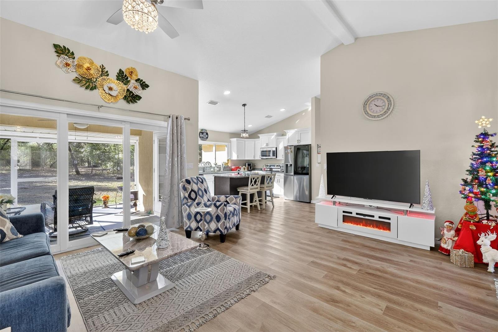 Bem-vindo a esta casa QUASE NOVA de 3 quartos e 2 banheiros lindamente projetada, oferecendo uma planta aberta e um ambiente rural tranquilo em 1,05 acres. Cada quarto possui tetos elegantes, adicionando charme arquitetônico por toda parte. A espaçosa cozinha é o coração da casa, completa com uma ilha de granito e uma deslumbrante janela panorâmica que emoldura vistas tranquilas para o exterior - perfeita para desfrutar da natureza circundante. A suíte principal é um verdadeiro retiro, com teto retangular e barras deslizantes que se abrem para a varanda, um grande closet. O banheiro privativo possui um chuveiro master espaçoso e uma pia dupla. Controles deslizantes triplos se estendem do quarto principal até a varanda estendida, criando uma vida interna e externa perfeita. Os destaques adicionais incluem lavanderia interna com tanque, lavadora e secadora empilháveis e uma despensa para armazenamento adicional. Ambos os quartos de hóspedes também têm tetos de bandeja. Aproveite a conveniência de uma porta para pedestres na garagem, um purificador de água e uma varanda estendida, ideal para relaxar ou se divertir. Localizada com fácil acesso a Ocala e Dunnellon, esta casa oferece a combinação perfeita de conforto, funcionalidade e vida serena no campo. Esta propriedade vem com acesso privado ao Rainbow River para proprietários de casas em Rainbow Springs. Há também um clube, piscina e quadras de tênis!