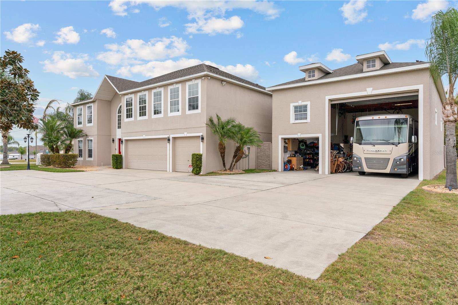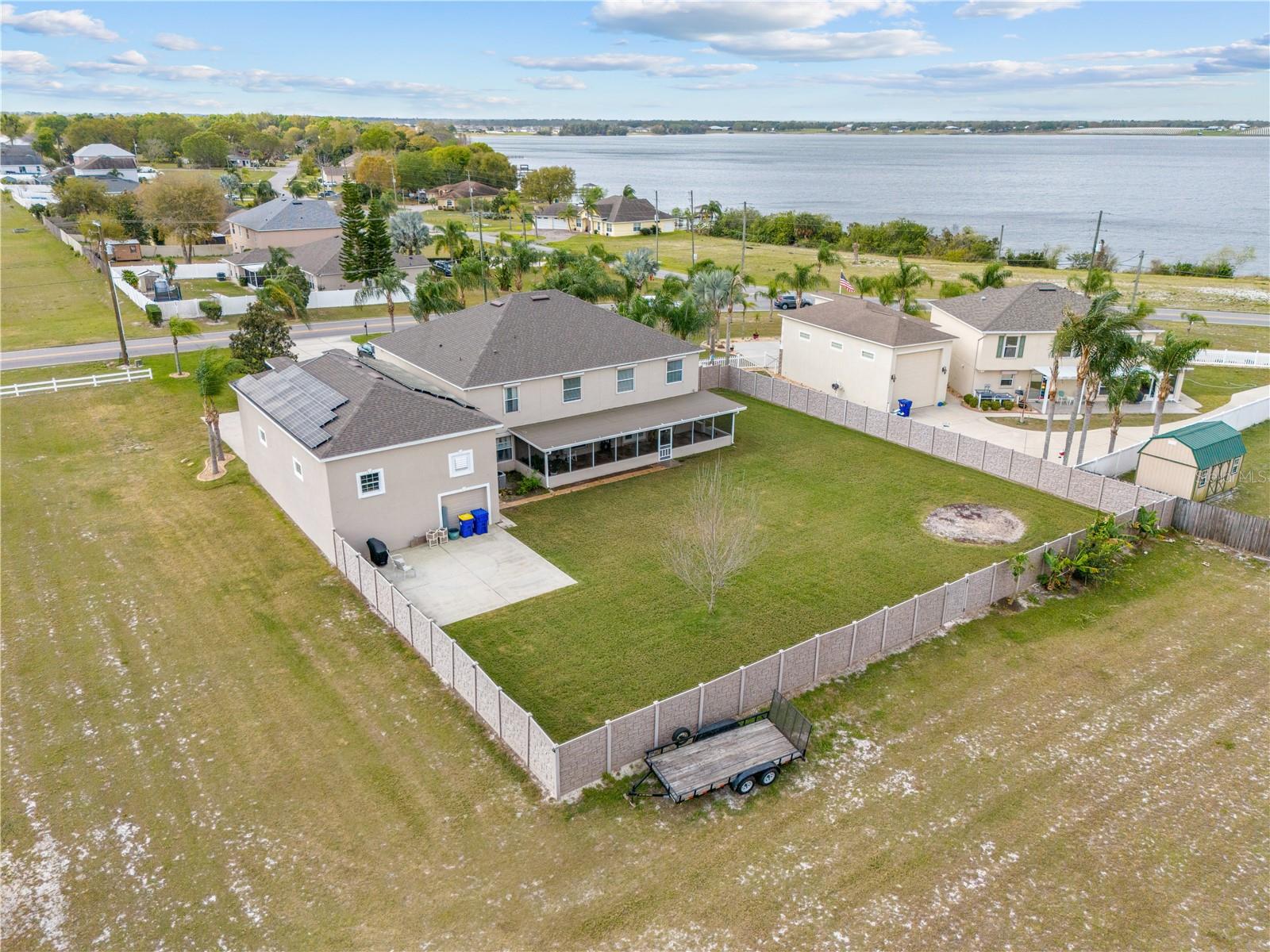 Bem-vindo ao seu refúgio em Eagle Lake, FL, feito sob medida para proprietários de trailers! Esta requintada propriedade de 6 quartos e 4 1/2 banheiros oferece luxo e conforto incomparáveis em um amplo terreno de 2,14 acres com vistas cativantes do Lago McLeod e do pôr do sol deslumbrante. Situada em um terreno de esquina nobre, esta casa oferece privacidade e apelo impressionante. Seu posicionamento diferenciado oferece amplo espaço e sensação de exclusividade, sendo a escolha ideal para quem busca uma localização diferenciada. Ao entrar nesta residência meticulosamente projetada, você é recebido por um grande hall de entrada que leva a uma sala de estar e sala de jantar formal, perfeita para receber convidados com estilo. A espaçosa sala familiar oferece um refúgio aconchegante para reuniões e relaxamento, enquanto a sala de home theater oferece inúmeras opções de entretenimento. Mergulhe na felicidade cinematográfica no conforto da sua casa, onde cada noite de cinema se torna uma experiência inesquecível. A cozinha é uma delícia para o chef, com eletrodomésticos de última geração, amplo balcão e balcão para refeições casuais. Um segundo quarto principal no térreo oferece conveniência e versatilidade, ideal para hóspedes ou residências multigeracionais. A suíte principal é um refúgio luxuoso, com um layout espaçoso, armários para ele e para ela e um banheiro com pias duplas, banheira de imersão e chuveiro separado. Experimente a tranquilidade com o recurso de segurança adicional das persianas elétricas contra furacões nesta casa em Eagle Lake. Proteja facilmente sua propriedade contra intempéries e melhore sua segurança com a conveniência de persianas controladas remotamente, garantindo uma implantação rápida e descomplicada durante tempestades. Do lado de fora, o quintal cercado oferece privacidade e serenidade, completo com uma área externa para cães com tigela de água de recarga automática, garantindo que seus companheiros peludos estejam sempre cuidados. Com uma espaçosa garagem para 5 carros e uma garagem para caravanas, dispõe de amplo espaço para estacionamento e arrecadação. Beneficie-se de painéis solares totalmente pagos no telhado, oferecendo energia sustentável e economias de custos significativas nesta casa em Eagle Lake. Convenientemente localizada perto das principais estradas, shopping centers e escolas de alto nível, esta casa oferece a combinação perfeita de vida luxuosa e conveniência. Não perca esta rara oportunidade de possuir o seu pedaço do paraíso em Eagle Lake! Agende hoje mesmo seu tour privado.