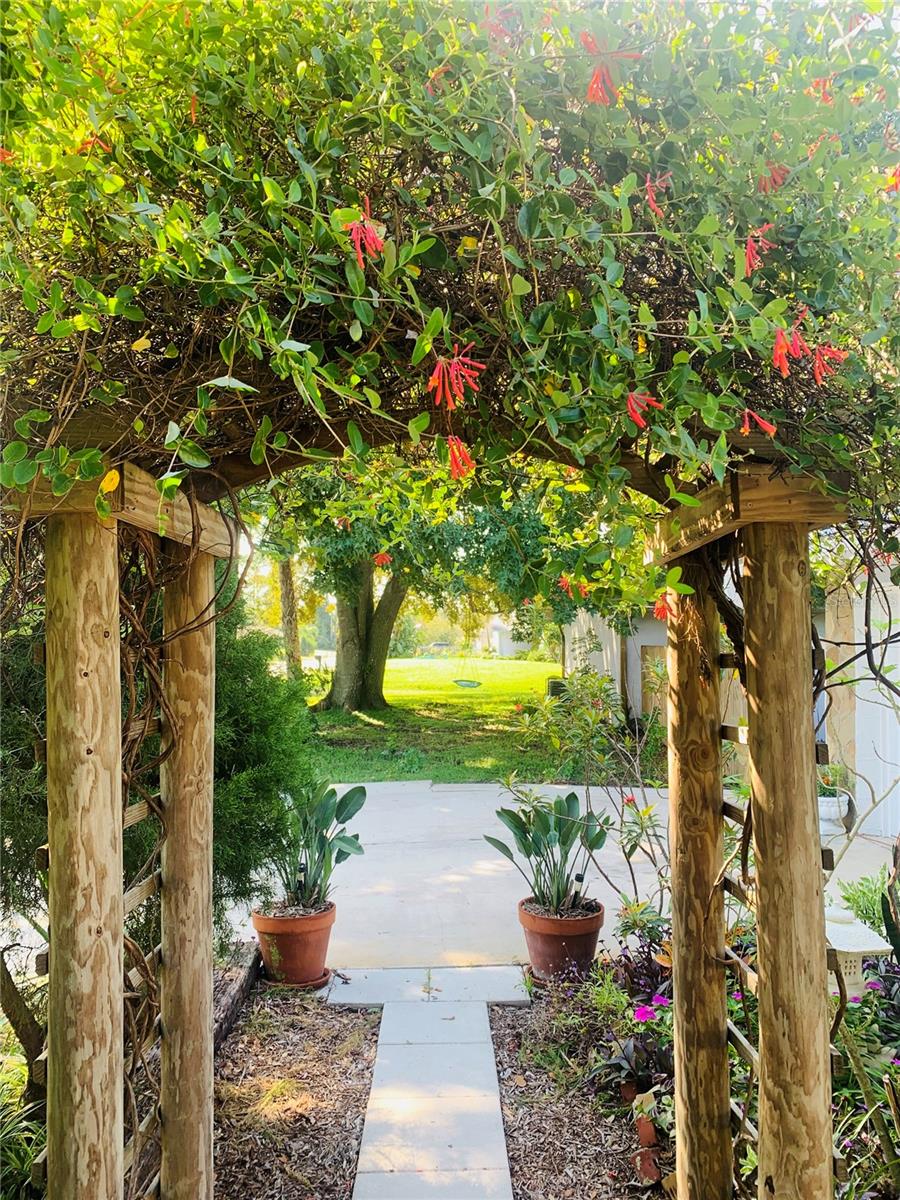 ESTA MORADIA TEM UM TELHADO DE METAL RECÉM-INSTALADO (MAIO DE 2024) QUE ABRIGO APROXIMADAMENTE 1.260 SF DE ESPAÇO HVAC. A CASA INCLUI 3 QUARTOS E 2 BANHEIROS COM PISO CERÂMICO INSTALADO EM TODO O ASSUNTO, INCLUINDO A GRANDE SALA FLÓRIDA QUE É ACESSADA PELAS PORTAS FRANCESAS PELA COZINHA E ÁREA DE JANTAR, QUE TAMBÉM É HVAC. HÁ UMA GRANDE GARAGEM FECHADA PARA UM ÚNICO CARRO COM LIGAÇÕES DE LAVANDERIA E ESPAÇO ADICIONAL NO LADO SUL DO EXTERIOR DA CASA PARA ESTACIONAR UM BARCO, RV/TRAILER OU OUTRO TIPO DE VEÍCULO. HÁ UM ARMAZENAMENTO DE MADEIRA LOCALIZADO NA ÁREA DO QUINTAL TRASEIRO QUE PODE SER USADO PARA FERRAMENTAS DE JARDIM E/OU FINS UTILITÁRIOS. O PAISAGISMO DA PROPRIEDADE OFERECE DIFERENTES TIPOS DE VARIEDADES DE PLANTAS E FLORES DE JARDIM QUE ENVOLVEM TODA A CASA CRIANDO VÁRIOS AMBIENTES EXTERIORES PRIVADOS. A FRENTE DA CASA MANTÉM DUAS ÁREAS DE ESTAR SEPARADAS, UMA DAS QUAIS MANTÉM UM PEQUENO LAGOO DE CIRCULAÇÃO PARA ESPAÇO EXTERIOR TRANQUILO.