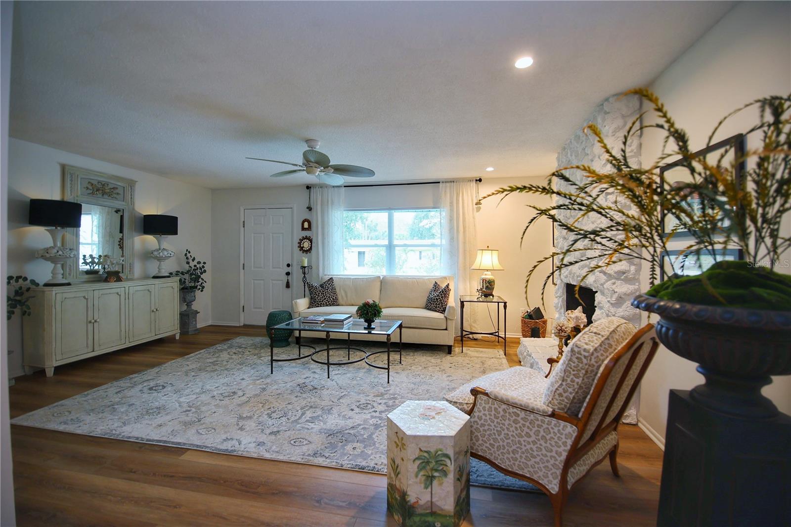 De volta ao mercado devido ao financiamento dos compradores! Esta impressionante casa de 3 quartos de 3 quartos foi completamente remodelada de cima para baixo! Sentado em um lote alto e seco e grande nas margens da Flórida, esta casa nunca inundou. A apenas 1,6 km do rio e 5 milhas até o oceano! Ao caminhar pela porta da frente, você é recebido pela sala de estar com toneladas de luz natural e lareira a lenha. A planta de piso conceito aberto é a ideia para festas e a vida cotidiana. A cozinha é basicamente nova, com bancadas de superfície sólidas e belos armários. Fora da sala de jantar é uma enorme sala de bilhar fechada! Sim, esta casa tem uma piscina interna! Estar interno, a piscina é muito baixa e fácil de cuidar. O telhado tem apenas 3 anos. As janelas têm apenas 2 anos. O aquecedor de AC e água mais recente também. Esta casa é uma chave de virar completamente apenas esperando você chamá -lo de casa! Ligue para agendar sua exibição hoje!