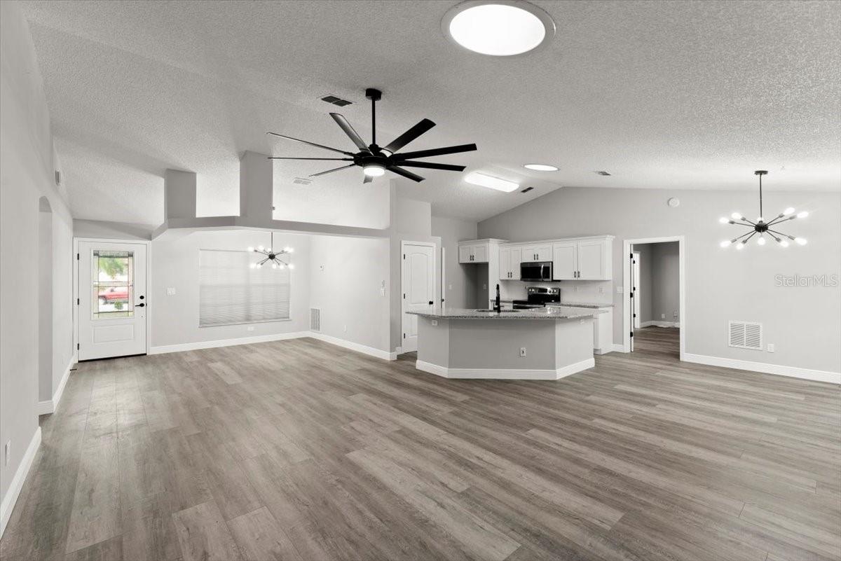 Bem-vindo a esta casa lindamente atualizada de 3 quartos e 2 banheiros, localizada na comunidade desejável da Florida Shores, sem HOA! Esta propriedade apresenta uma planta baixa com tetos abobadados e pisos laminados elegantes por toda parte, criando uma atmosfera espaçosa e convidativa. A casa fica em um lote generoso, oferecendo muito espaço ao ar livre para desfrutar, juntamente com um encantador Lanai, perfeito para relaxar. A cozinha está equipada com utensílios de aço inoxidável e flui perfeitamente para as áreas de estar e jantar, ideais para entretenimento. Destaques adicionais incluem uma lavanderia conveniente e uma garagem de 2 carros. A apenas 20 minutos de carro das margens arenosas de New Smyrna Beach, esta jóia pronta para uso combina conforto, estilo e uma localização privilegiada.