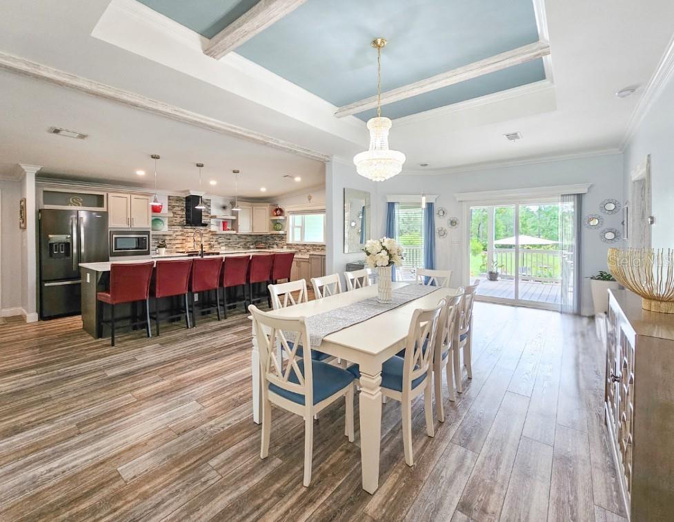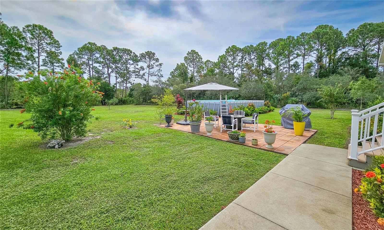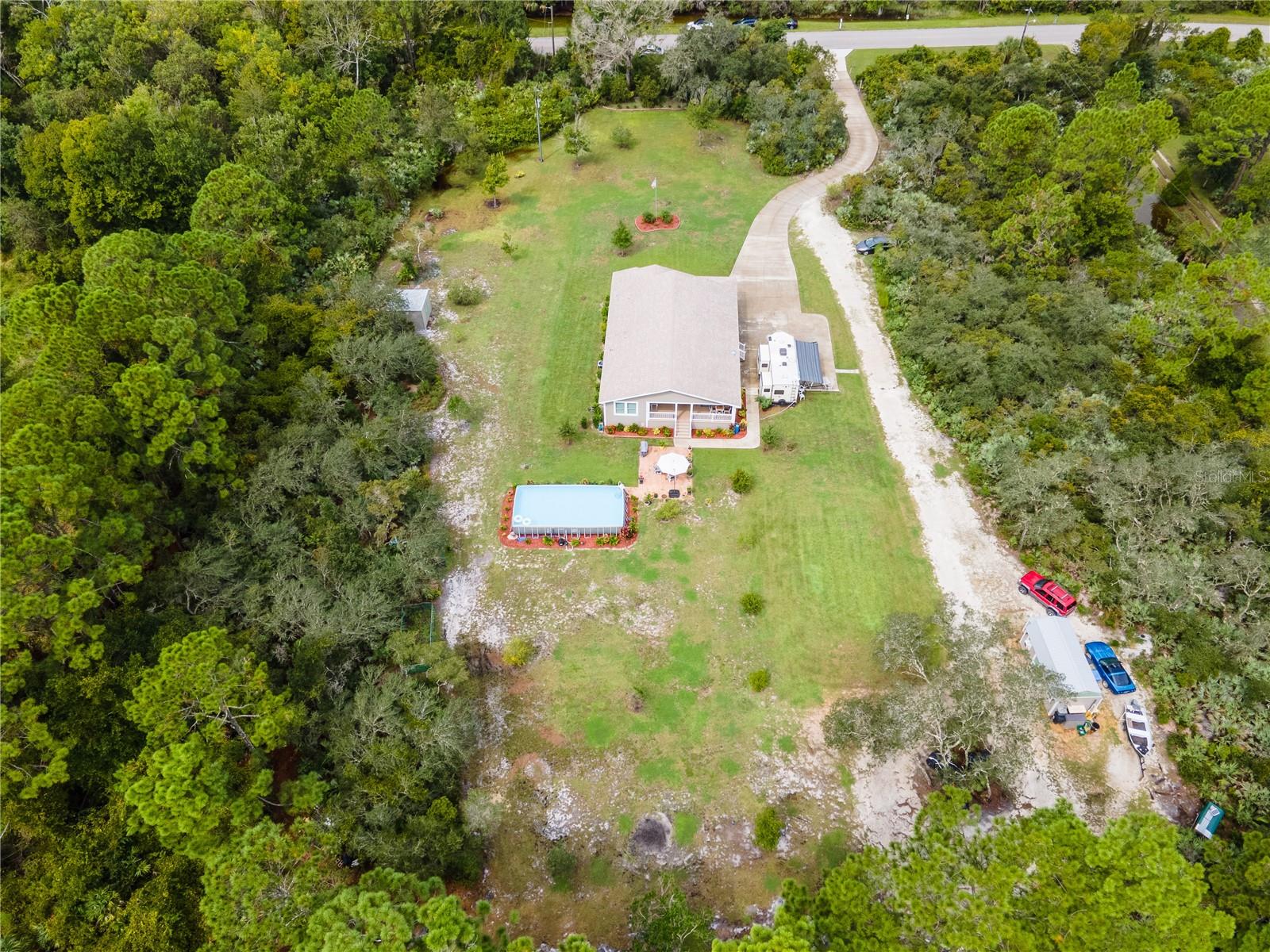 Situada em quase 3 hectares paisagísticos, esta casa modular de 2019 bem conservada oferece a combinação perfeita de privacidade, espaço e atualizações modernas. Com mais de 2.200 pés quadrados de área útil, esta casa de 3 quartos e 2 banheiros está sendo vendida totalmente mobiliada com móveis de alta qualidade e de bom gosto, tornando-a realmente pronta para morar! No interior, o layout de conceito aberto é destacado por tetos de catedral de 2,7 metros e luxuosos pisos de pranchas de vinil em todas as principais áreas de estar. A cozinha possui bancadas de granito, armários com fechamento suave, eletrodomésticos de aço inoxidável e uma ilha enorme de 3 metros com capacidade para seis pessoas. A suíte principal inclui pia dupla, banheira de jardim grande, closet espaçoso e acesso privativo à varanda coberta traseira. As varandas frontal e traseira oferecem espaços confortáveis ao ar livre, com acesso pelo quarto principal e pela sala de jantar formal. As características adicionais incluem revestimento de tábuas resistentes, entrada pavimentada com portão de segurança elétrico, sistema completo de filtragem de água e amaciante, lavanderia interna e duas dependências - uma abrigando o sistema de filtragem e a outra uma oficina 10x20. ***A piscina acima do solo anterior foi removida, mas a propriedade oferece amplo espaço para adicionar uma futura piscina.*** A área paisagística quase totalmente limpa oferece espaço para barcos, trailers, trailers ou expansão futura, mantendo um ambiente privado e tranquilo. Convenientemente localizado a uma curta distância de carro da praia, da Intracoastal Waterway, das lojas e da Costa Espacial!
