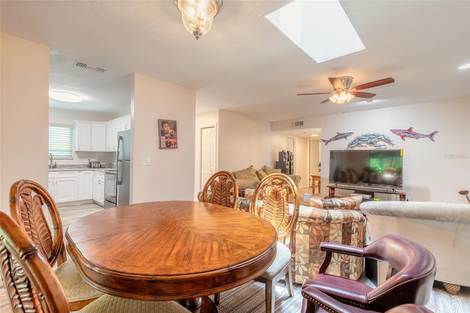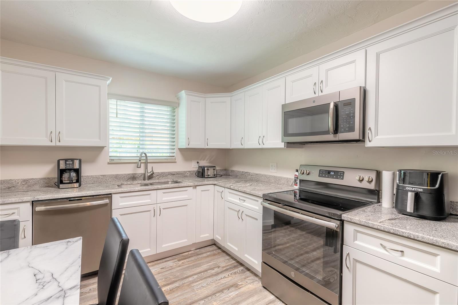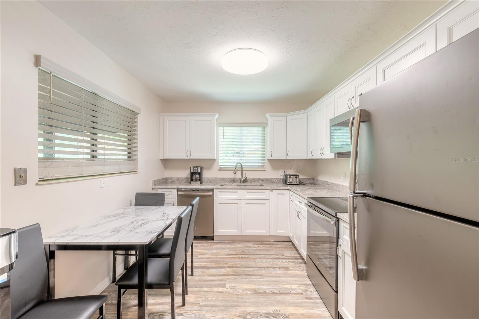 Você vai adorar esta casa lindamente mantida localizada em uma rua serena em North Edgewater! Os canteiros de flores recém -paisagísticos e a alegre porta da frente amarela criam uma recepção calorosa. Completamente remodelado em 2020, a casa possui pisos de tábuas de vinil de luxo por toda parte. Você notará a planta baixa e brilhante imediatamente, aprimorada por três clarabóias - uma na sala de estar e uma em cada banheiro. A cozinha exibe bancadas em granito, armários brancos de close macio, uma pia dupla e aparelhos de acabamento resistentes a impressão digital 2020. Há muito espaço para uma pequena mesa de jantar, ou você pode utilizar a área de jantar adjacente à cozinha. Deslize as portas de vidro para revelar uma espaçosa varanda de vidro e tela adornada com lindas azulejos de Saltillo, perfeita para entreter, desfrutar do seu café da manhã ou simplesmente relaxar. Além disso, há um painel elétrico separado pronto para uma banheira de hidromassagem ou cozinha ao ar livre. Ambos os banheiros têm vaidades atualizadas com bancadas em granito e telhas ressurgidas. O quarto principal é espaçoso o suficiente para uma cama king-size, e o banheiro principal possui um banho de pé e uma vaidade estendida com tampo de granito. A garagem para carro único possui uma nova porta e abridor, muito armazenamento e uma bancada de trabalho de dobra criativa para seus projetos. As principais atualizações incluem um novo telhado e clarabóias de 2020, um sistema HVAC instalado em 2020 e janelas de impacto totalmente novas em 2023. Tenha certeza, esta casa ficou alta e seca sem inundação durante o IAN.