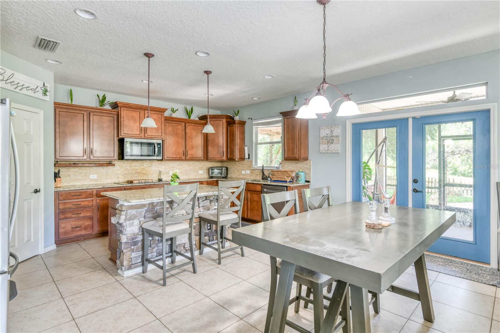 Esta notável casa familiar possui 2530 sf de luxo, quatro quartos, dois banheiros e meio e um grande quintal privado com vistas panorâmicas de água e preservação. Um hall de entrada convidativo de dois andares abre para um elegante refeição formal. A cozinha gourmet bem equipada possui bancadas de granito, armários atualizados, utensílios inoxidáveis, backsplash de azulejos, despensa e uma ilha de trabalho central com vista para uma área de café da manhã com sol que tem acesso direto à ampla sala da família e lanai. No andar de cima, uma vista aberta do hall de entrada e um espaço de bônus acolhedores é perfeito como uma sala de estar ou de jogos extra. Depois de um longo dia relaxe na confortável suíte do proprietário com tetos divididos, grande closet e um luxuoso banheiro com vaidade de granito duplo, banheira romana, chuveiro de azulejos e um armário de água privado. Esta casa também possui três quartos adicionais, um banho de hóspedes completo com uma vaidade elevada de granito atualizada, banho de pó convenientemente localizado, uma lavanderia separada e uma garagem para dois carros. As atualizações interiores adicionais incluem ladrilhos de cerâmica de qualidade, luminárias atualizadas, iluminação pendente, iluminação embutida, persianas personalizadas, fornos duplos, hardware atualizado, ventiladores de teto por toda parte, grade de escada de ferro forjado, portas de entrada frontal de vidro de ferro forjado e muito armazenamento extra. A área de estar ao ar livre oferece um lanai exibido, um enorme quintal privado, sistema de irrigação com poço privado, fogueira, quintal totalmente cercado e vistas fantásticas da água. As atualizações externas adicionais incluem detalhes em pedra, entrada frontal coberta, títulos de cupins, quintal totalmente enrolado, muito estacionamento extra, caixa de correio de pedra personalizada e um lote de beco sem saída.