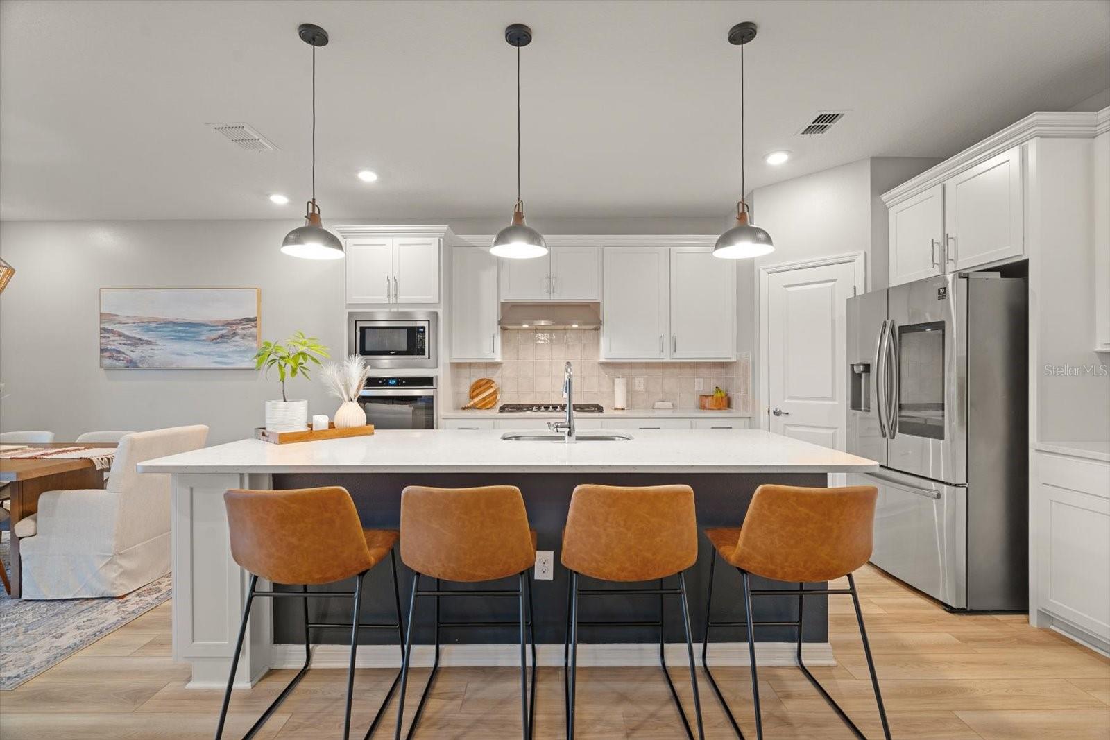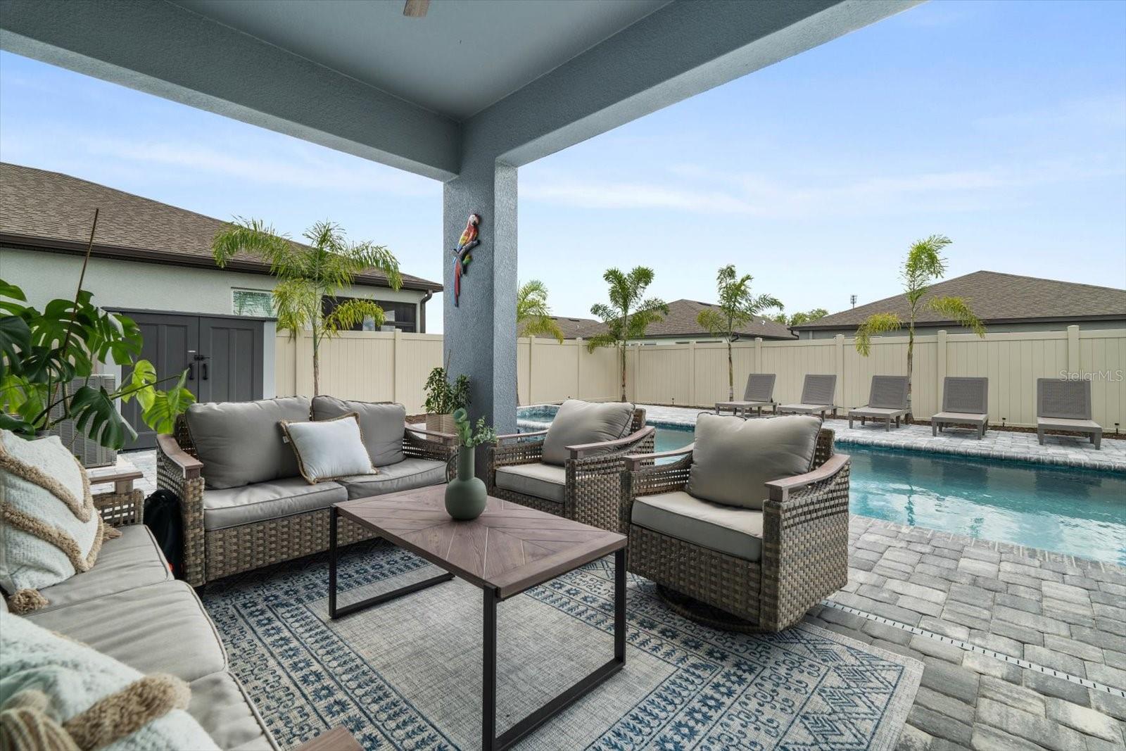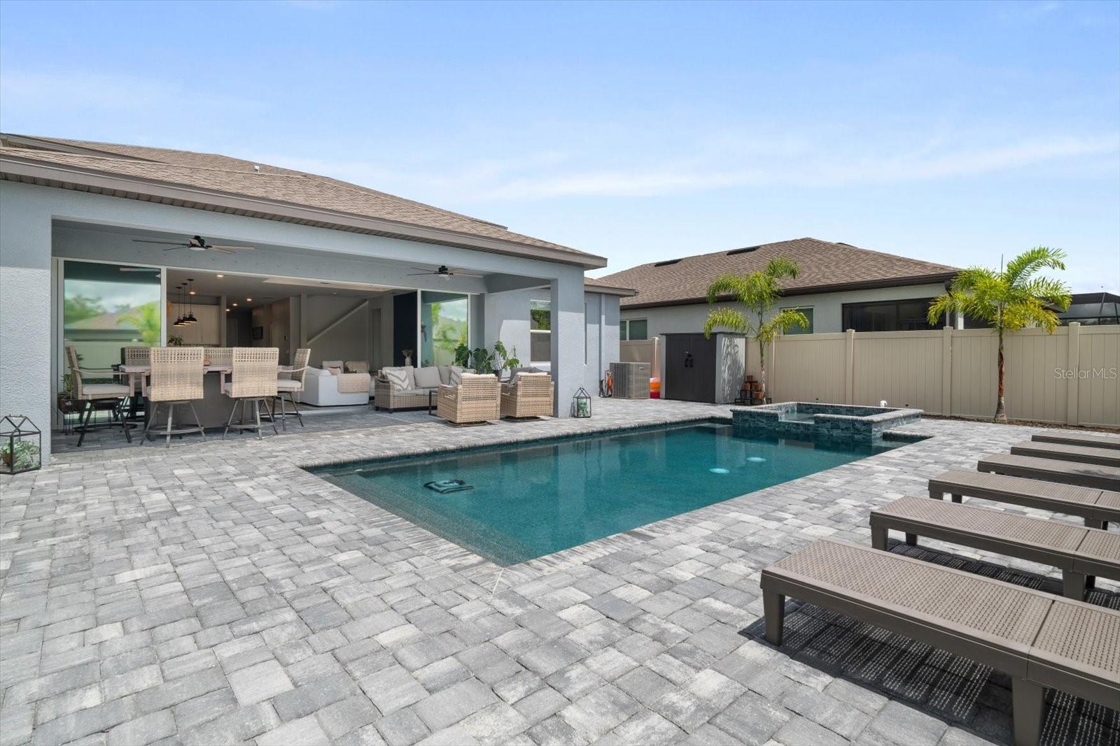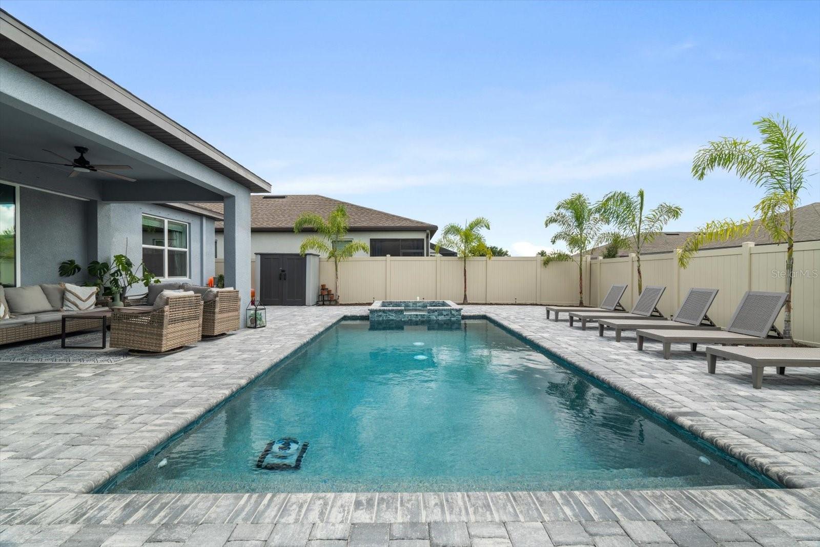 Esta nova casa requintada fica na comunidade de Marwood, em Ellenton. Possui uma planta aberta deslumbrante, incluindo 4 quartos, 3,5 banheiros, um enorme loft e uma sala flexível adicional no primeiro andar, que é perfeita para um escritório, academia, sala de jogos infantis ou um quarto adicional. Embora o piso LVP naturalmente chame sua atenção, o lugar para o qual você gravitará instantaneamente é a piscina e o spa personalizados, cercados pela exuberante folhagem da Flórida e pelas vibrações de Margaritaville. Os proprietários não pouparam despesas para tornar a vida ao ar livre uma realidade. Eles optaram por estender a varanda coberta e adicionar lindas portas de vidro deslizantes na parte de trás da casa. De volta ao interior, você vai adorar a cozinha embutida que tem uma lista de atualizações, incluindo eletrodomésticos e gás disponíveis, e espaço suficiente na bancada até mesmo para o chef mais exigente. O backsplash de bom gosto complementa os balcões e também as alças do gabinete. A maior das seccionais certamente caberá na grande sala do térreo, aberta para a sala de jantar e a área da cozinha. No primeiro andar Master você não terá problemas em colocar móveis com espaço de sobra. O Master Bath apresenta uma imensa quantidade de espaço no que os construtores da Pulte apelidaram de Super Shower walk in. Nichos atualizados, chuveiro de efeito chuva, assento de chuveiro, porta de vidro, azulejos, torneiras de banheiro e vasos sanitários de nível de conforto são apenas algumas das atualizações encontradas. Já mencionei que ficar sem água quente simplesmente não é uma opção? Um aquecedor de água a gás sem tanque Rinnai torna os sonhos de água quente uma realidade. Também lá embaixo, em uma lavanderia muito bem dimensionada ao lado da garagem, que é grande o suficiente para abrigar suas máquinas e um grande espaço para lama. Subindo as escadas, você encontrará a extensa área de loft para que as famílias não precisem mais brigar por causa dos horários de TV. O loft também é um ótimo segundo espaço de escritório se você também estiver usando a sala flexível do térreo como escritório. Os quartos do andar de cima foram modificados para criar uma área de armário estendida para aqueles que precisam de um espaço de armário um pouco mais do que a média. Alguns até chamariam isso de segunda suíte master. Os outros dois quartos partilham uma casa de banho adicional acessível através do corredor. A garagem para dois carros inclui pavimento em epóxi e amplo espaço para carros e arrumos. Por último, todo o quintal é cercado com vinil pvc para que seus familiares peludos ou pequenos membros mais jovens se sintam seguros do lado de fora.