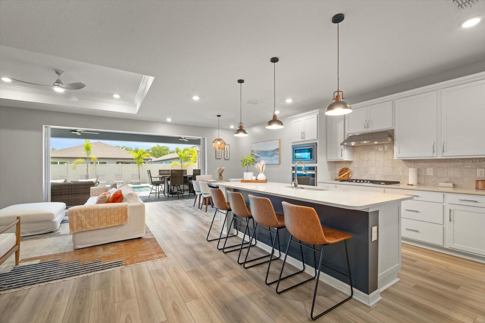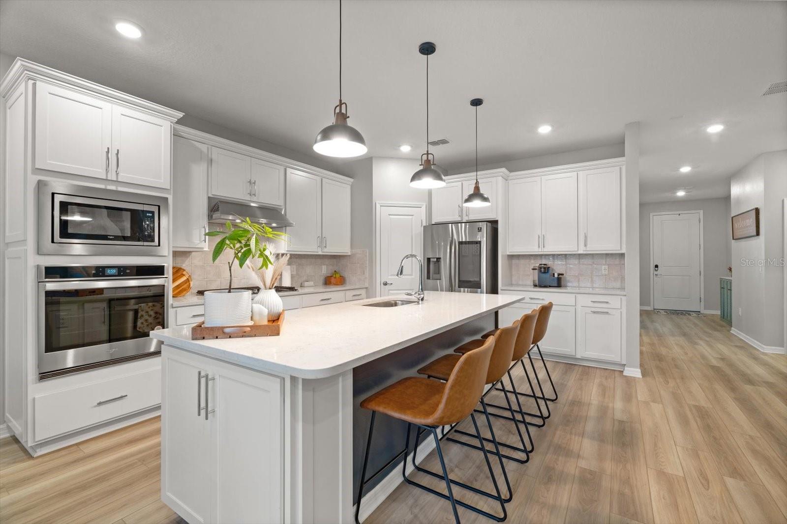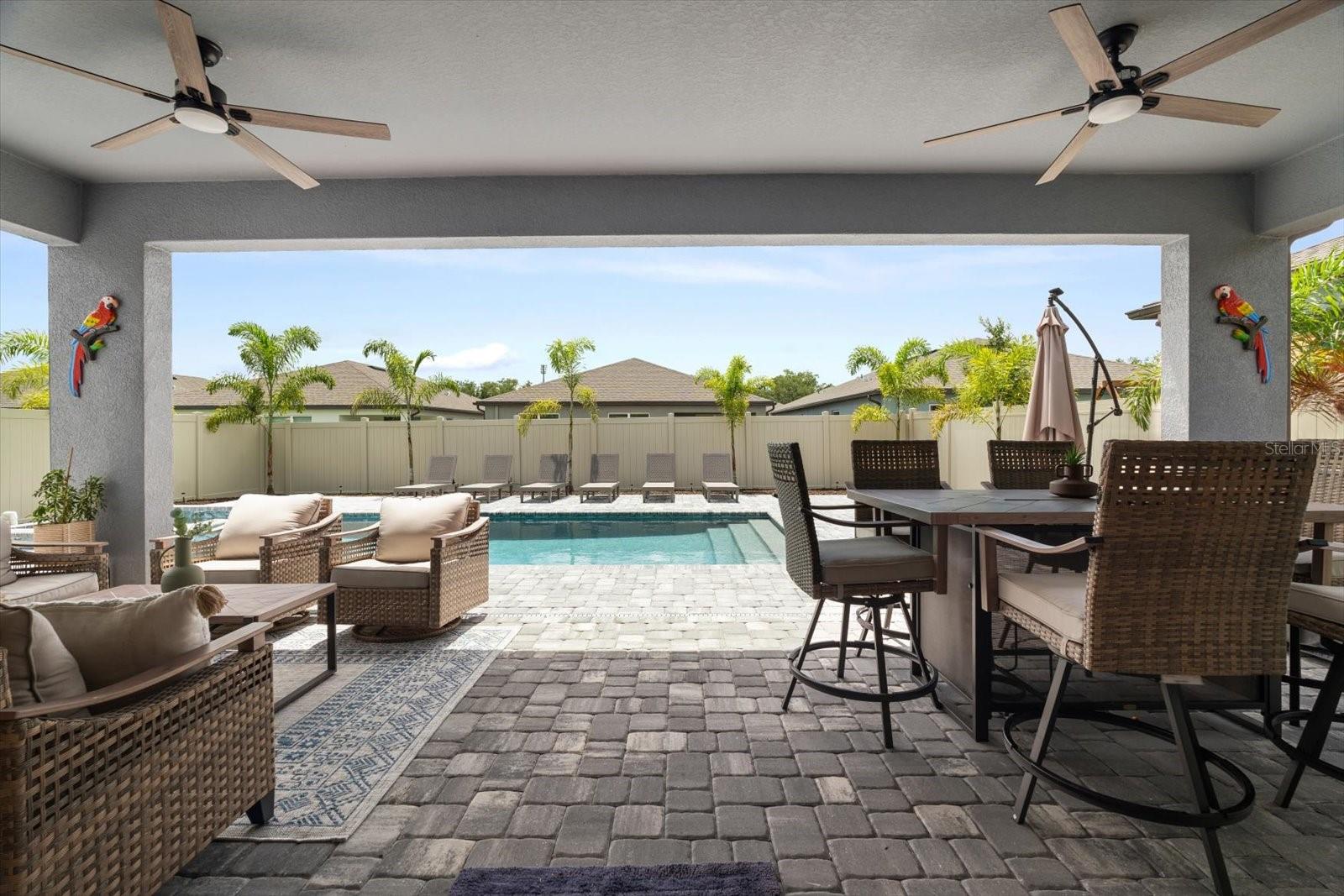 Esta nova casa requintada fica na comunidade de Marwood, em Ellenton. Possui uma planta aberta deslumbrante, incluindo 4 quartos, 3,5 banheiros, um enorme loft e uma sala flexível adicional no primeiro andar, que é perfeita para um escritório, academia, sala de jogos infantis ou um quarto adicional. Embora o piso LVP naturalmente chame sua atenção, o lugar para o qual você gravitará instantaneamente é a piscina e o spa personalizados, cercados pela exuberante folhagem da Flórida e pelas vibrações de Margaritaville. Os proprietários não pouparam despesas para tornar a vida ao ar livre uma realidade. Eles optaram por estender a varanda coberta e adicionar lindas portas de vidro deslizantes na parte de trás da casa. De volta ao interior, você vai adorar a cozinha embutida que tem uma lista de atualizações, incluindo eletrodomésticos e gás disponíveis, e espaço suficiente na bancada até mesmo para o chef mais exigente. O backsplash de bom gosto complementa os balcões e também as alças do gabinete. A maior das seccionais certamente caberá na grande sala do térreo, aberta para a sala de jantar e a área da cozinha. No primeiro andar Master você não terá problemas em colocar móveis com espaço de sobra. O Master Bath apresenta uma imensa quantidade de espaço no que os construtores da Pulte apelidaram de Super Shower walk in. Nichos atualizados, chuveiro de efeito chuva, assento de chuveiro, porta de vidro, azulejos, torneiras de banheiro e vasos sanitários de nível de conforto são apenas algumas das atualizações encontradas. Já mencionei que ficar sem água quente simplesmente não é uma opção? Um aquecedor de água a gás sem tanque Rinnai torna os sonhos de água quente uma realidade. Também lá embaixo, em uma lavanderia muito bem dimensionada ao lado da garagem, que é grande o suficiente para abrigar suas máquinas e um grande espaço para lama. Subindo as escadas, você encontrará a extensa área de loft para que as famílias não precisem mais brigar por causa dos horários de TV. O loft também é um ótimo segundo espaço de escritório se você também estiver usando a sala flexível do térreo como escritório. Os quartos do andar de cima foram modificados para criar uma área de armário estendida para aqueles que precisam de um espaço de armário um pouco mais do que a média. Alguns até chamariam isso de segunda suíte master. Os outros dois quartos partilham uma casa de banho adicional acessível através do corredor. A garagem para dois carros inclui pavimento em epóxi e amplo espaço para carros e arrumos. Por último, todo o quintal é cercado com vinil pvc para que seus familiares peludos ou pequenos membros mais jovens se sintam seguros do lado de fora.