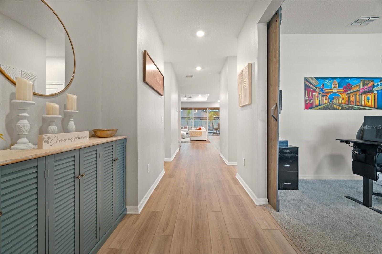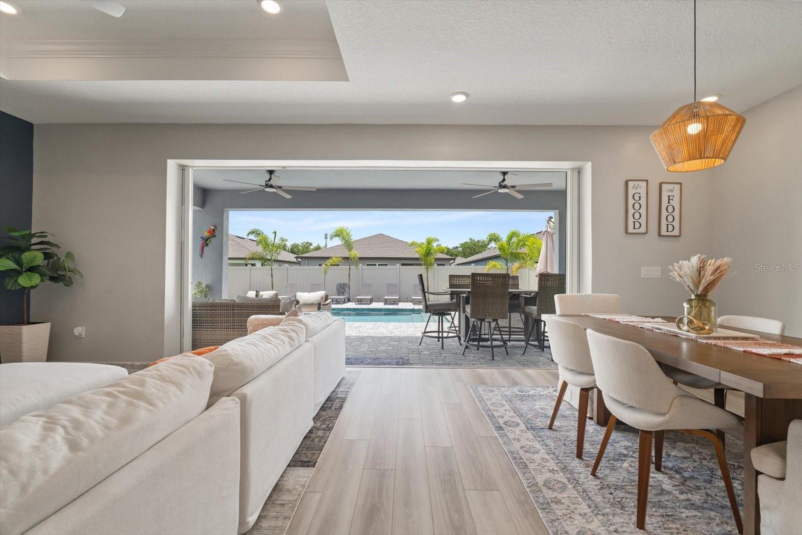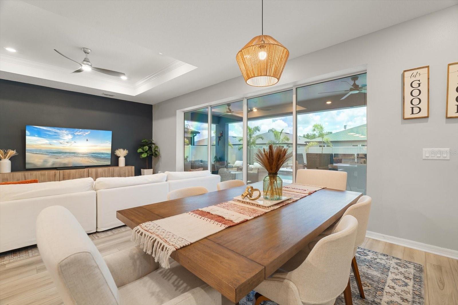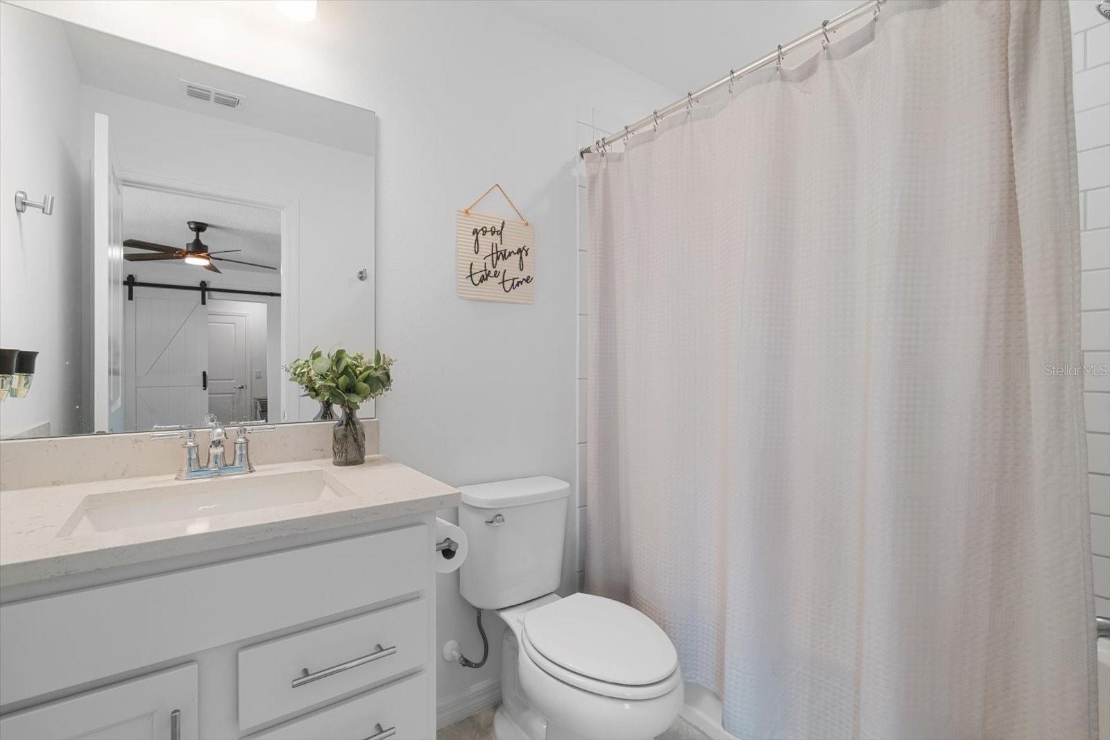 Esta nova casa requintada fica na comunidade de Marwood, em Ellenton. Possui uma planta aberta deslumbrante, incluindo 4 quartos, 3,5 banheiros, um enorme loft e uma sala flexível adicional no primeiro andar, que é perfeita para um escritório, academia, sala de jogos infantis ou um quarto adicional. Embora o piso LVP naturalmente chame sua atenção, o lugar para o qual você gravitará instantaneamente é a piscina e o spa personalizados, cercados pela exuberante folhagem da Flórida e pelas vibrações de Margaritaville. Os proprietários não pouparam despesas para tornar a vida ao ar livre uma realidade. Eles optaram por estender a varanda coberta e adicionar lindas portas de vidro deslizantes na parte de trás da casa. De volta ao interior, você vai adorar a cozinha embutida que tem uma lista de atualizações, incluindo eletrodomésticos e gás disponíveis, e espaço suficiente na bancada até mesmo para o chef mais exigente. O backsplash de bom gosto complementa os balcões e também as alças do gabinete. A maior das seccionais certamente caberá na grande sala do térreo, aberta para a sala de jantar e a área da cozinha. No primeiro andar Master você não terá problemas em colocar móveis com espaço de sobra. O Master Bath apresenta uma imensa quantidade de espaço no que os construtores da Pulte apelidaram de Super Shower walk in. Nichos atualizados, chuveiro de efeito chuva, assento de chuveiro, porta de vidro, azulejos, torneiras de banheiro e vasos sanitários de nível de conforto são apenas algumas das atualizações encontradas. Já mencionei que ficar sem água quente simplesmente não é uma opção? Um aquecedor de água a gás sem tanque Rinnai torna os sonhos de água quente uma realidade. Também lá embaixo, em uma lavanderia muito bem dimensionada ao lado da garagem, que é grande o suficiente para abrigar suas máquinas e um grande espaço para lama. Subindo as escadas, você encontrará a extensa área de loft para que as famílias não precisem mais brigar por causa dos horários de TV. O loft também é um ótimo segundo espaço de escritório se você também estiver usando a sala flexível do térreo como escritório. Os quartos do andar de cima foram modificados para criar uma área de armário estendida para aqueles que precisam de um espaço de armário um pouco mais do que a média. Alguns até chamariam isso de segunda suíte master. Os outros dois quartos partilham uma casa de banho adicional acessível através do corredor. A garagem para dois carros inclui pavimento em epóxi e amplo espaço para carros e arrumos. Por último, todo o quintal é cercado com vinil pvc para que seus familiares peludos ou pequenos membros mais jovens se sintam seguros do lado de fora.