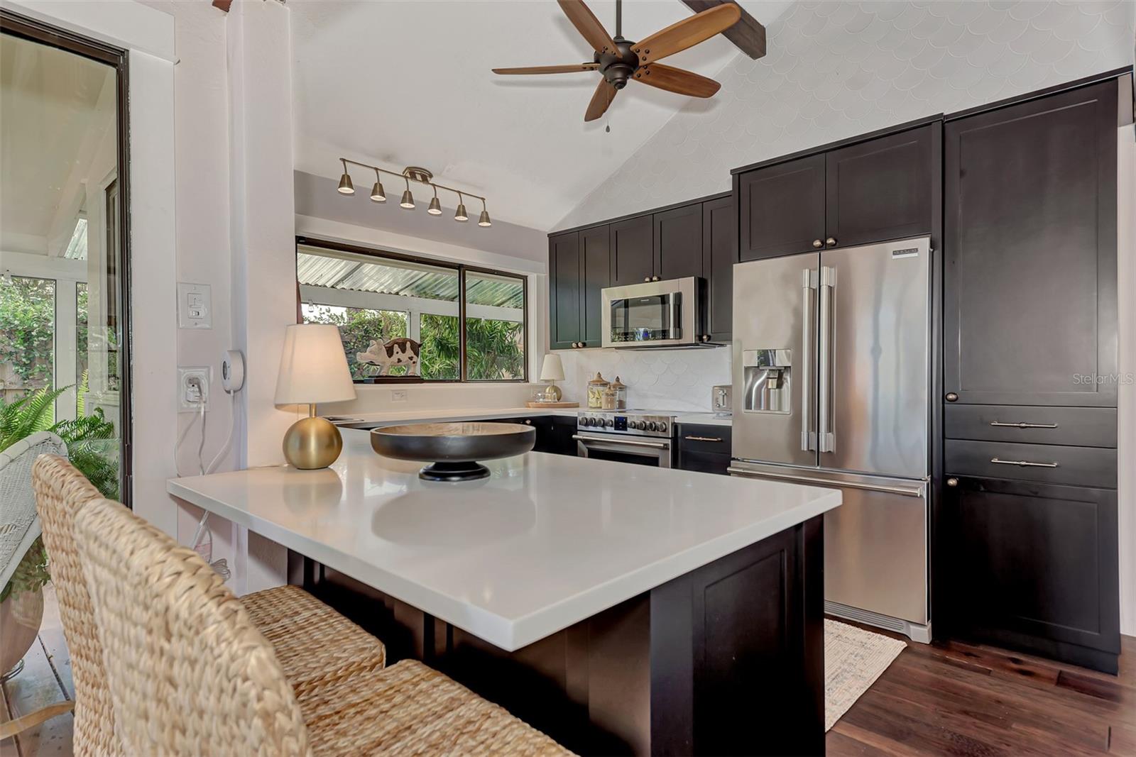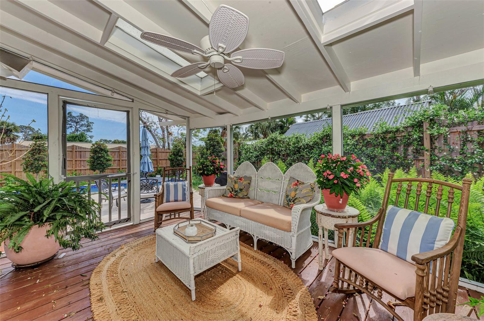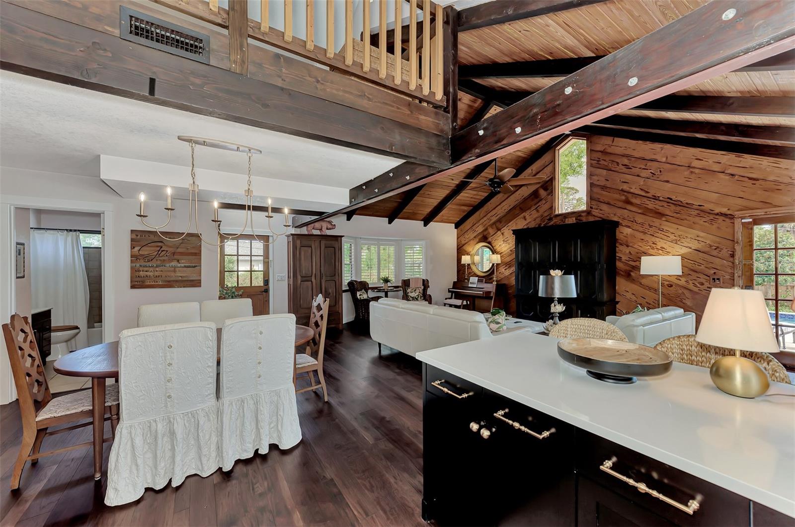 AJUSTE DE PREÇO ~Esta encantadora casa em estilo artesão é verdadeiramente única, situada em um espaçoso terreno de esquina em Englewood, oferece um retiro tranquilo repleto do charme da Velha Flórida. Sua localização conveniente oferece fácil acesso a várias comodidades, incluindo Lemon Bay Park, lojas de Dearborn, entretenimento e o Englewood Farmers Market. Além disso, várias praias em Manasota Key ficam a poucos quilômetros de distância, oferecendo a combinação perfeita de serenidade e conveniência. Entre para descobrir uma atmosfera calorosa e convidativa, destacada por uma parede impressionante feita de tábuas de cipreste na sala principal. Vigas de madeira e janelas abundantes proporcionam vistas pitorescas dos arredores exuberantes, promovendo uma conexão perfeita com a natureza. A casa possui uma cozinha de design recentemente atualizada com eletrodomésticos de aço inoxidável e acabamentos de alta qualidade, além de um banheiro principal reformado. Uma nova piscina e espaço ao ar livre oferecem um retiro relaxante, enquanto renovações recentes, incluindo nivelamento e reforço de fundações, novo contrapiso e pisos de madeira, luminárias atualizadas, pintura fresca por dentro e por fora e novo paisagismo melhoram o apelo estético e a integridade estrutural da propriedade . O primeiro andar é composto por dois quartos e dois banheiros, garantindo acomodações confortáveis. Suba a escada em espiral para descobrir um loft versátil que pode ser utilizado como terceiro quarto, retiro de hóspedes, escritório ou estúdio de artista, completo com vários armários e uso inteligente do espaço no teto abobadado. A conveniência é priorizada com conexões para lavadoras e secadoras convenientemente localizadas no armário do banheiro de hóspedes, e o novo sistema de ar-condicionado garante conforto o ano todo. Outras características notáveis incluem uma calçada circular de tijolos personalizada, cerca recortada personalizada de 2,5 metros, parede de retenção de tijolos na parte de trás da propriedade e uma entrada de automóveis projetada para acessibilidade para cadeiras de rodas sem comprometer a estética. Quer procure um retiro sereno ou um espaço funcional para viver e trabalhar, esta propriedade oferece uma rara combinação de charme, conveniência e versatilidade. Não perca a oportunidade de personalizar – agende uma exibição privada hoje ou explore o tour virtual para ver mais de perto.
