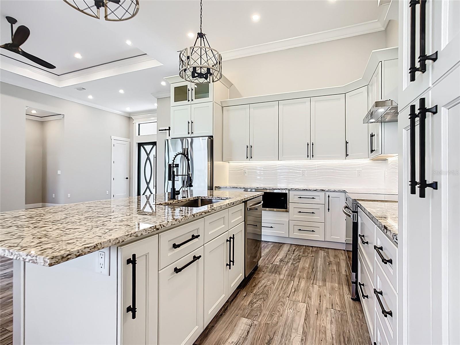 Este novo luxo de 3 quartos, 3 banheiros e uma casa de garagem de 3 carros, é uma casa unifamiliar de 2.150 m² de espaço aberto com tetos altos. A cozinha atualizou as bancadas de granito com grande contra -ilha, junto com uma despensa de gabinete escondida e muito espaço no gabinete. O quarto principal inclui closetes de grandes dimensões com construção nas prateleiras, tem uma área de maquiagem, vaidades separadas de pia, um enorme chuveiro de parede a parede e armário de água privado e banheira de banho livre de tamanho grande. Quarto de hóspedes com seu próprio banheiro privativo, construa prateleiras no armário. Casa ecológica e inteligente, cercada com câmeras de segurança, janelas e portas à prova de furacões, isolamento de som do ruído externo, coberturas de piso epóxi da garagem. Grande área de Lanai com espaço projetado para cozinha ao ar livre.