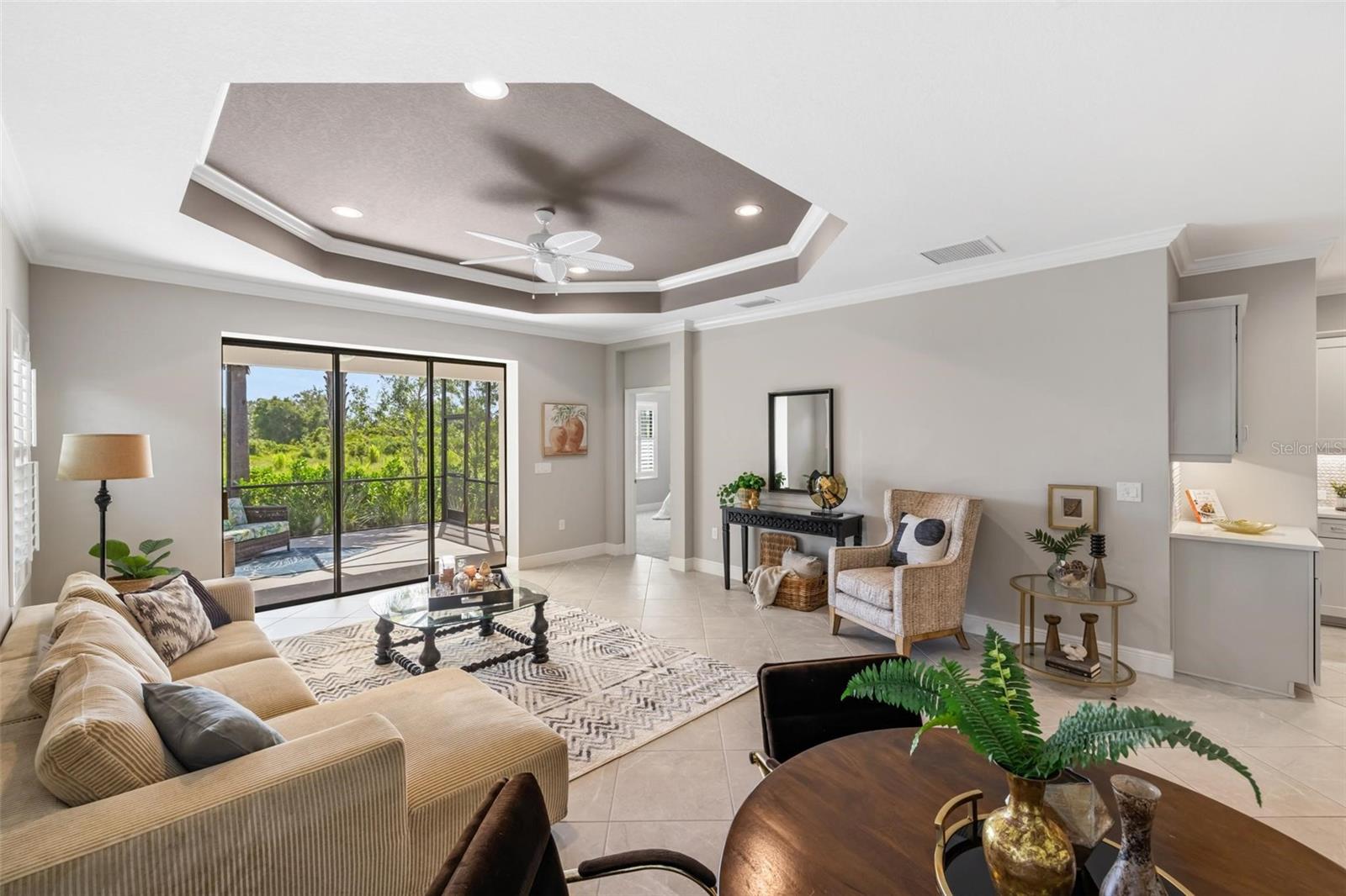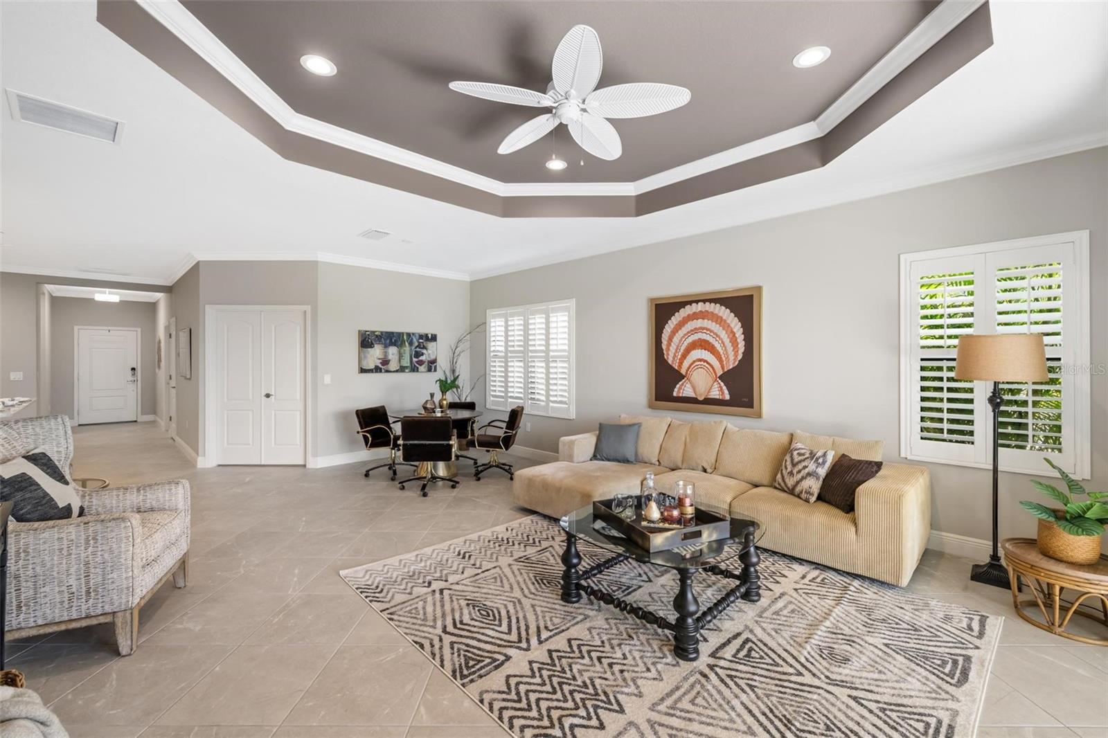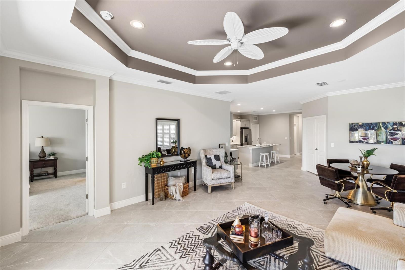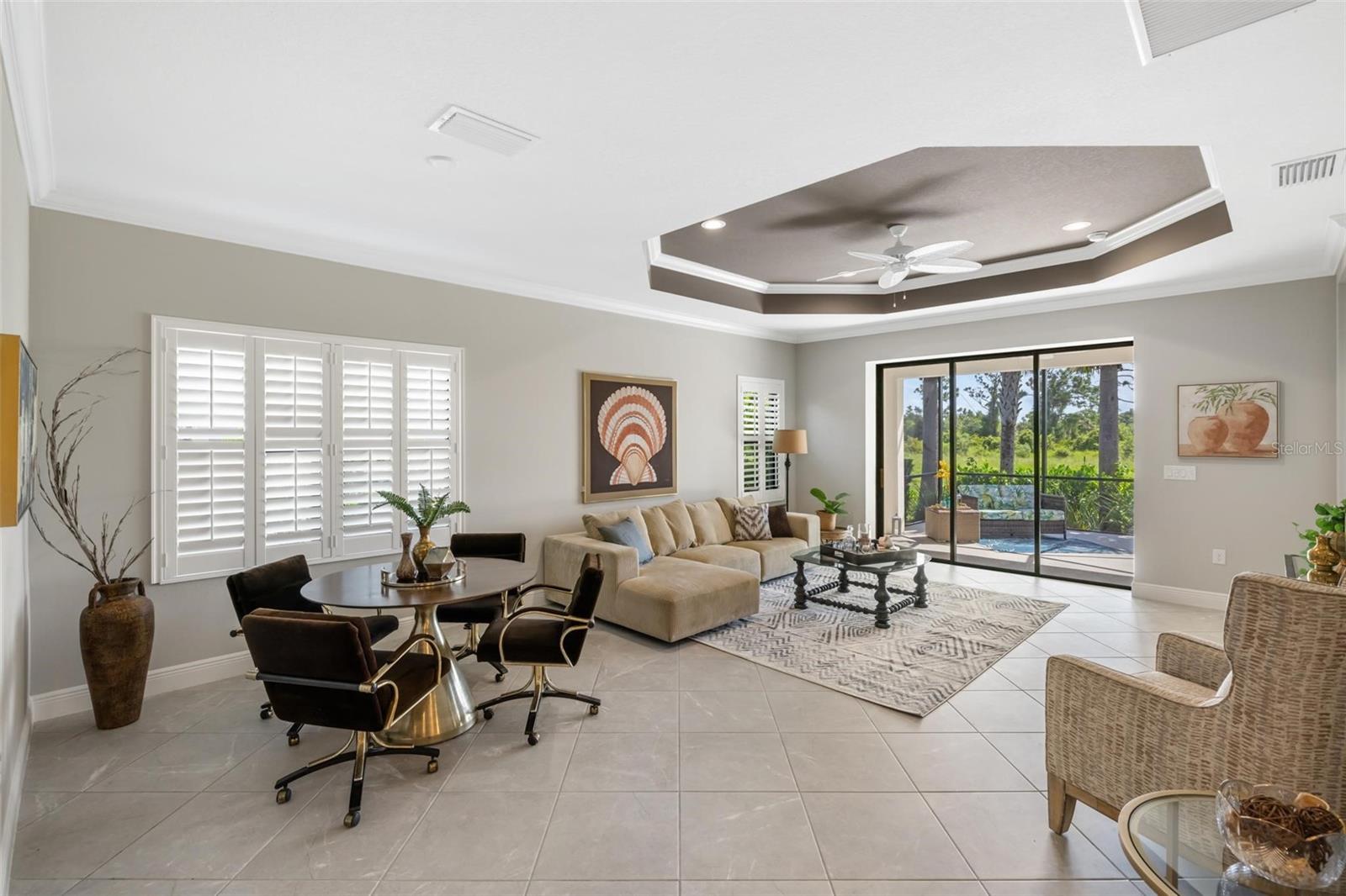 Viva a vida que você merece na comunidade de Belize do Boca Royale Golf and Country Club. Esta casa de 3 quartos mais sala, 2 banheiros, construída em 2019, tem um apelo incrível com uma sensação costeira calorosa e encantadora. O interior luminoso e equilibrado com acabamentos bem combinados é aberto e convidativo e diferencia esta propriedade de outras moradias. A sala com janelas duplas é um espaço flexível ideal para estudo, escritório ou sala de ginástica. A cozinha possui eletrodomésticos de inox com fogão a gás e ilha central, a sala de jantar é o local perfeito para desfrutar de refeições diárias enquanto é grande o suficiente para receber feriados, e a grande sala é aberta e convidativa com uma grande bandeja no teto e controles deslizantes para a varanda e quintal. O pátio coberto e protegido é o refúgio ideal para desfrutar do cobiçado estilo de vida interno/externo da Flórida, relaxando com um livro ou coquetel ou saboreando refeições ao ar livre. Também com vista para o tranquilo quintal está a suíte master com banheiro completo com pia dupla, box amplo, closet e banheiro separado com armário de roupa de cama. Os dois quartos estão localizados em um corredor próximo à frente da casa para separação e privacidade, cada um tem armários embutidos e compartilham um banheiro no corredor com uma combinação de banheira e chuveiro. O serviço de gramado está incluído na taxa HOA e persianas contra furacões estão incluídas na casa para maior tranquilidade. A varanda da frente permite relaxamento e diversão privada com vista para o bairro. Esta é a combinação perfeita para um estilo de vida privado mas ativo, com atividades para preencher o seu calendário social. Aproveite as comodidades do resort, como campo de golfe, restaurante no local, academia, piscina, spa, pickleball, tênis, parque para cães e eventos comunitários. A apenas 11 km das praias de Manasota Key, passeios de barco, pesca, restaurantes e compras, esta é a oportunidade perfeita para abraçar o estilo de vida do sudoeste da Flórida. Contate-nos hoje para sua exibição privada! - Característica do quarto: Armário de linho no banheiro (quarto principal).