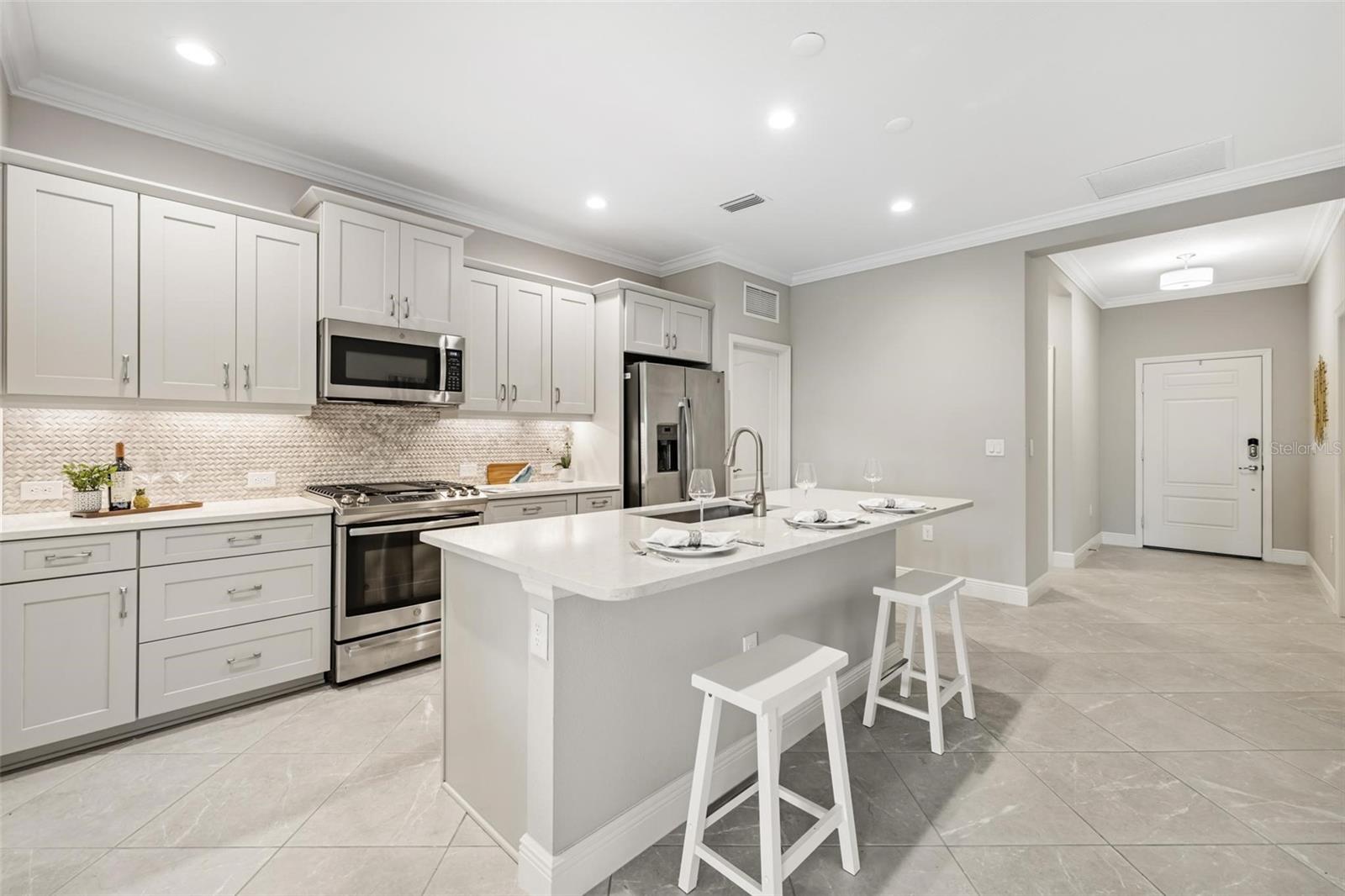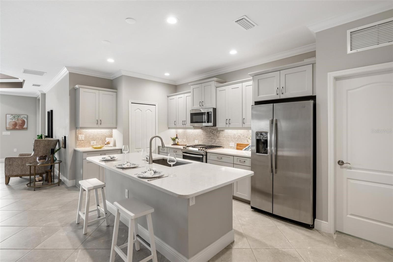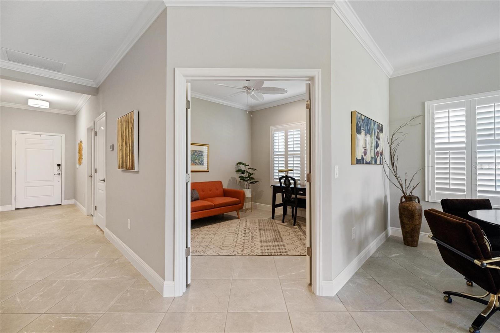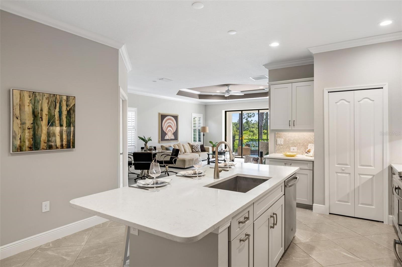 Viva a vida que você merece na comunidade de Belize do Boca Royale Golf and Country Club. Esta casa de 3 quartos mais sala, 2 banheiros, construída em 2019, tem um apelo incrível com uma sensação costeira calorosa e encantadora. O interior luminoso e equilibrado com acabamentos bem combinados é aberto e convidativo e diferencia esta propriedade de outras moradias. A sala com janelas duplas é um espaço flexível ideal para estudo, escritório ou sala de ginástica. A cozinha possui eletrodomésticos de inox com fogão a gás e ilha central, a sala de jantar é o local perfeito para desfrutar de refeições diárias enquanto é grande o suficiente para receber feriados, e a grande sala é aberta e convidativa com uma grande bandeja no teto e controles deslizantes para a varanda e quintal. O pátio coberto e protegido é o refúgio ideal para desfrutar do cobiçado estilo de vida interno/externo da Flórida, relaxando com um livro ou coquetel ou saboreando refeições ao ar livre. Também com vista para o tranquilo quintal está a suíte master com banheiro completo com pia dupla, box amplo, closet e banheiro separado com armário de roupa de cama. Os dois quartos estão localizados em um corredor próximo à frente da casa para separação e privacidade, cada um tem armários embutidos e compartilham um banheiro no corredor com uma combinação de banheira e chuveiro. O serviço de gramado está incluído na taxa HOA e persianas contra furacões estão incluídas na casa para maior tranquilidade. A varanda da frente permite relaxamento e diversão privada com vista para o bairro. Esta é a combinação perfeita para um estilo de vida privado mas ativo, com atividades para preencher o seu calendário social. Aproveite as comodidades do resort, como campo de golfe, restaurante no local, academia, piscina, spa, pickleball, tênis, parque para cães e eventos comunitários. A apenas 11 km das praias de Manasota Key, passeios de barco, pesca, restaurantes e compras, esta é a oportunidade perfeita para abraçar o estilo de vida do sudoeste da Flórida. Contate-nos hoje para sua exibição privada! - Característica do quarto: Armário de linho no banheiro (quarto principal).