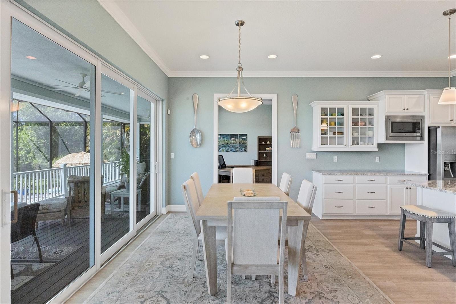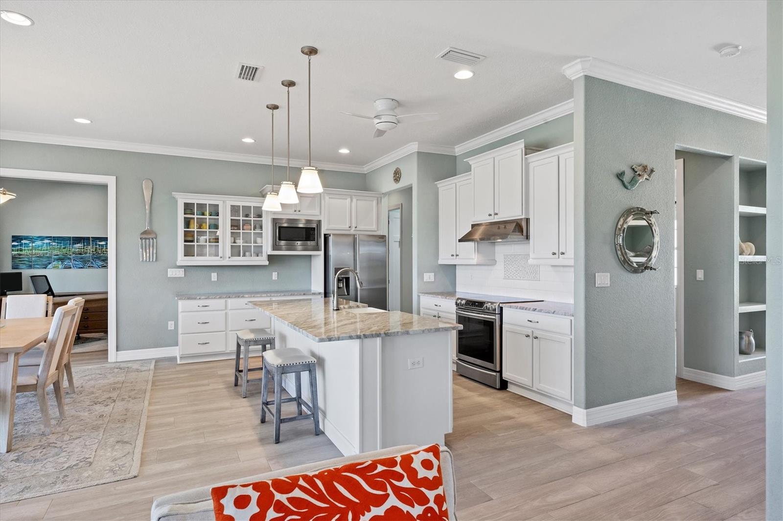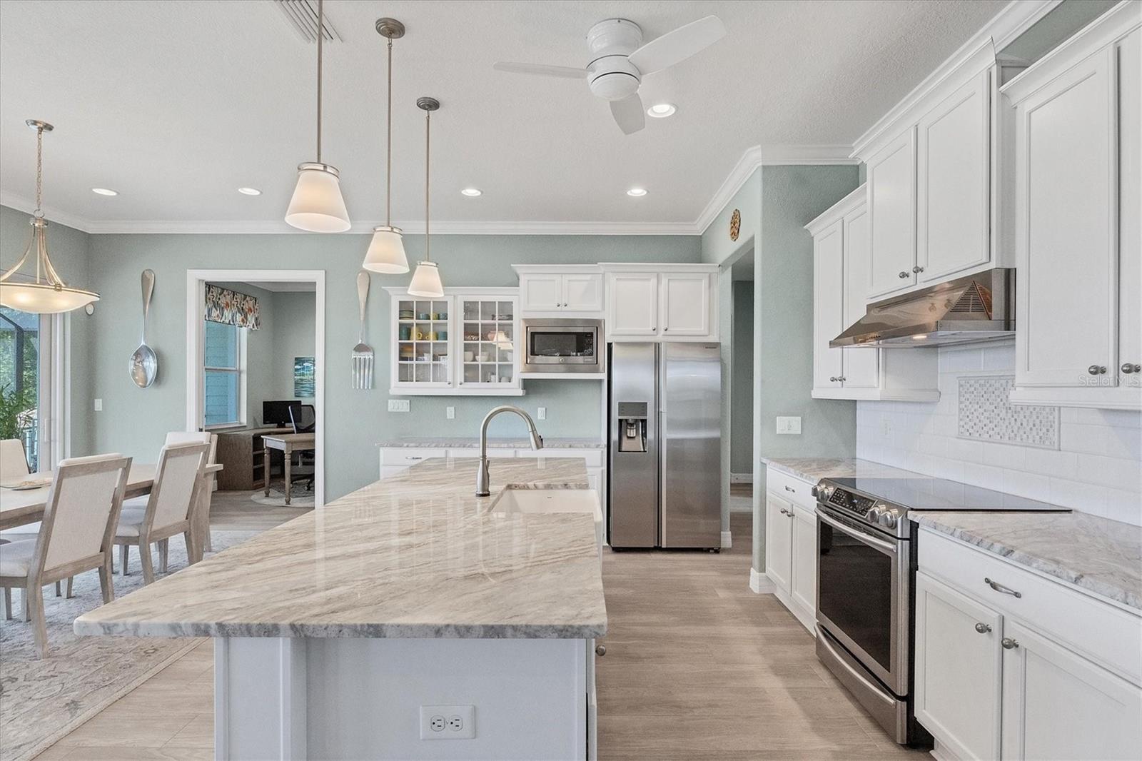 Aninhado dentro dos confins serenos de Englewood, FL, a comunidade fechada exclusiva de águas escondidas acenam com seu ambiente tranquilo e charme costeiro. Esse enclave, com apenas 19 casas, oferece uma rara oportunidade de residir em uma cenário idílico à beira -mar ao longo do pitoresco Oyster Creek Bayou. Criada com atenção meticulosa aos detalhes em 2015, esta distinta casa exala sofisticação e conforto a cada passo. O pavimentador de tijolos sinuoso convida um para uma casa que possui uma varanda encantadora da frente e uma cúpula, evocando uma sensação de elegância costeira e talento arquitetônico. Após a entrada, aprecia -se a elegância atemporal de tetos altos, moldagem por coroa e o fascínio convidativo do piso de ladrilhos de porcelana. Entre no coração da casa, onde seis portas de vidro deslizantes se abrem para uma impressionante vista panorâmica do Oyster Creek Bayou protegido. As delícias culinárias aguardam na cozinha gourmet adornada com uma grande ilha de granito, perfeita para preparação de refeições e reuniões casuais. A cozinha também apresenta conveniências modernas, como uma torneira de toque, cooktop de indução e um espaçoso armário de despensa, garantindo estilo e funcionalidade. A casa possui a desejável da planta baixa da Flórida, e a versatilidade é abundante com um espaço de escritório que poderia facilmente fazer a transição para um quarto quarto, atendendo às diversas necessidades da vida moderna. Um santuário de relaxamento e entretenimento aguarda ao ar livre, onde o deck composto na espaçosa Lanai traseira tem vista para uma piscina aquecida de água salgada, convidando os moradores a se aprofundarem no sol da Flórida o ano todo. O lanai, a piscina e a piscina de tijolos grandes cobertos estão todos fechados em uma gaiola de piscina expansiva. A comunidade também oferece acesso direto a quilômetros de trilhas de bicicleta e caminhada e vistas cênicas através do amplo Parque Ambiental Oyster Creek, o Cedar Point Park e o Parque Regional de Ann & Chuck Dever. A garagem de grandes dimensões com uma entrada lateral oferece amplo espaço para veículos e inclui prateleiras e uma escada rolante para acesso seguro e fácil de armazenamento, garantindo praticidade e conveniência. Janelas de furacão e um protetor de surtos de toda a casa fornecem tranquilidade. Pavimentações de tijolos e grades livres de manutenção nas áreas de frente e traseira adicionam beleza adicional à casa da verdadeira vida ao ar livre da Flórida. Seja saboreando momentos tranquilos de reflexão ou hospedando reuniões animadas com entes queridos, as águas escondidas oferecem uma experiência de vida verdadeiramente incomparável, onde todos os dias parecem um retiro.