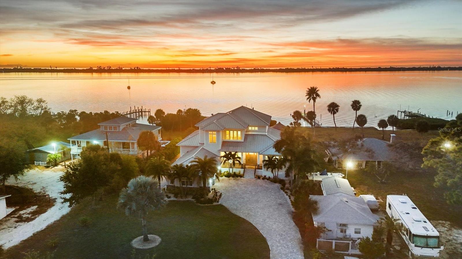 Com vista para as margens de Lemon Bay, esta deslumbrante casa de dois andares à beira-mar oferece o melhor estilo de vida da Flórida, com acesso direto ao Golfo e incríveis vistas do pôr do sol voltadas para o oeste. Situada em um terreno raro de 1 acre, a casa apresenta tetos altos e um layout de conceito aberto projetado para capturar a beleza da baía de todos os ângulos. Oferecido totalmente mobiliado, este imóvel está realmente pronto para morar. A telha cerâmica flui por toda parte, enquanto a cozinha gourmet é equipada com uma enorme despensa, eletrodomésticos Thermador de última geração e uma enorme ilha de 7 por 8 pés com muito espaço para reuniões e entretenimento. Todos os quartos, incluindo todos os quartos, desfrutam de amplas vistas para o mar, criando uma conexão constante com o ambiente sereno. A suíte principal é um retiro privado com closets para ele e para ela e uma banheira tipo spa com uma luxuosa banheira de jardim. No andar de cima, um quarto com banheiro privativo se abre para uma varanda privativa - perfeito para o café da manhã ou o pôr do sol à noite. A vida ao ar livre brilha com um deck de piscina de travertino, grande piscina aquecida de água salgada, banheira de hidromassagem e uma grande pérgula elétrica que protege a cozinha externa. Uma doca de 170 pés com um elevador de barco de 16.000 libras e uma cabana tiki antiga fazem deste um verdadeiro paraíso para os velejadores. Também possui janelas e portas anti-furacão com venezianas para fechar a varanda dos fundos, telhado de metal com costura vertical, revestimento de pranchas Hardie e toneladas de armazenamento extra. Chegue a restaurantes e lojas nas proximidades de barco, aproveite o acesso rápido a Manasota Key e Englewood Beach e visite o popular mercado de agricultores a apenas 1,6 km de distância. Recursos atenciosos incluem um design de garagem consciente contra inundações e uma conexão para RV de 30 A. Esta propriedade excepcional em Lemon Bay combina conforto, funcionalidade e vida costeira inesquecível.