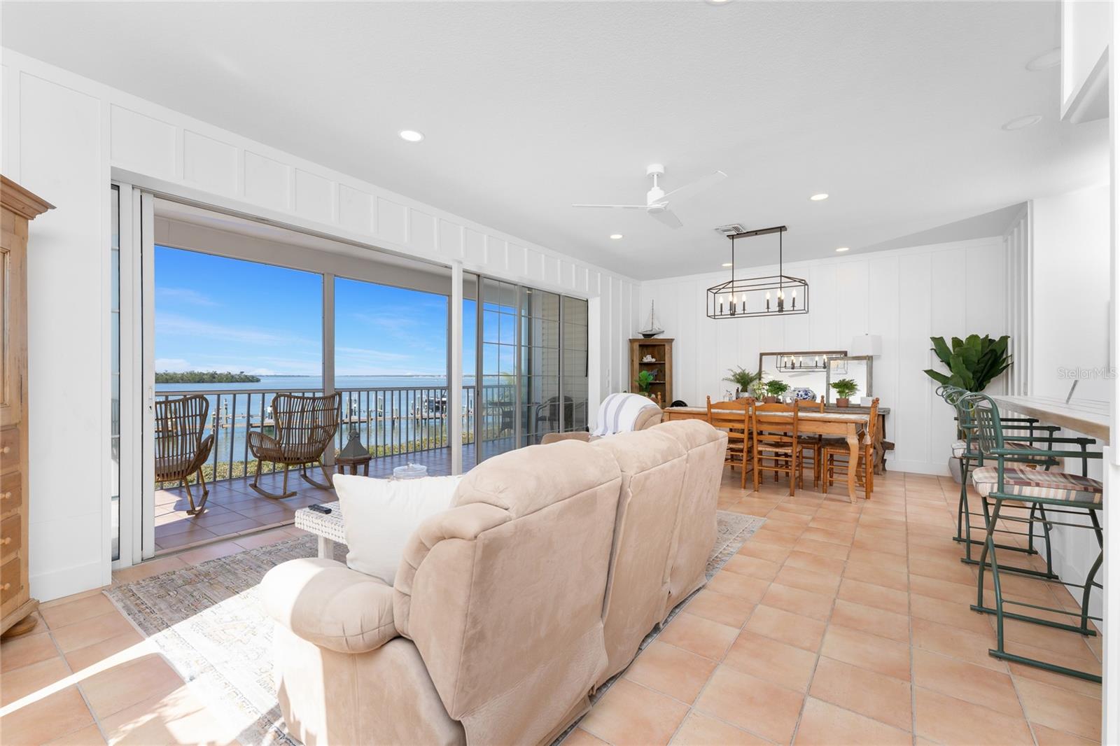 Direct Bayfront, unidade mobiliada pronta para uso com 2 quartos (+escritório/escritório) e 2 banheiros no Mariner Village Condominiums, uma comunidade boutique de 12 unidades situada em três edifícios à beira da água de Sandpiper Key em Englewood, Flórida. A enorme varanda coberta com tela de 7' x 28' oferece amplas vistas da baía, perfeita para observar golfinhos e pôr do sol. O interior apresenta tetos altos, uma planta baixa iluminada, arejada e aberta, piso de cerâmica em todas as áreas de estar principais, uma cozinha aberta com balcão para café da manhã e nova unidade de ar condicionado em 2025. A propriedade inclui uma doca de águas profundas (slip # 14) no Sandpiper Key Yacht Club, proporcionando acesso rápido a Lemon Bay e ao Golfo do México - ideal para entusiastas de náutica. A suíte principal oferece dois closets e banheiro privativo com pia dupla e box amplo. Um escritório/sala de bônus separada inclui armários embutidos e mesa. Os destaques adicionais incluem garagem privativa para um carro, estacionamento coberto para um segundo veículo e um armário de armazenamento atribuído de 3' x 3'. A unidade está localizada apenas um nível acima do estacionamento e é facilmente acessível por elevador. Os moradores têm acesso a uma piscina comunitária, compartilhada com apenas três outras unidades – criando uma atmosfera íntima e pacífica. E com Englewood Beach, restaurantes à beira-mar, aluguel de barcos e vida noturna em Manasota Key a menos de dois quilômetros de distância, todos os dias parecem férias.