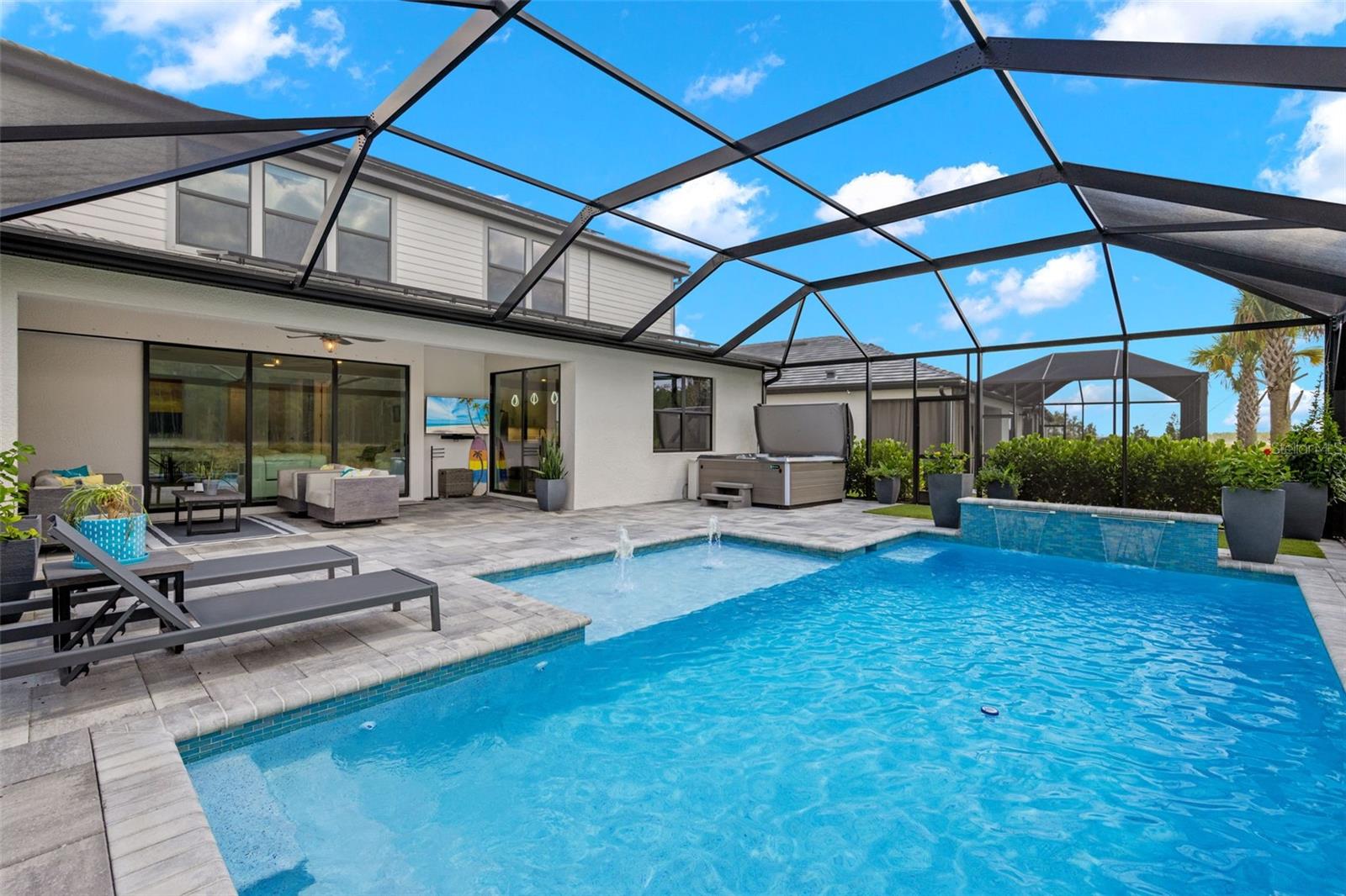 Cansado de inundações? Descubra a comunidade alta e seca com o melhor estilo de vida da Flórida neste deslumbrante retiro MOBILIADO de 5 quartos e 3,5 banheiros, situado na exclusiva comunidade Verdana Village em Estero. Projetada para aqueles que desejam luxo e conforto, esta casa pronta para morar combina sofisticação com o melhor das comodidades exclusivas da Flórida. Imagine sair para apreciar a vista deslumbrante do pôr do sol em uma reserva tranquila em sua varanda privativa, completa com piscina de água salgada, spa e duas cachoeiras e 2 borbulhadores que criam um oásis sereno. Esteja você relaxando à beira da piscina ou recebendo amigos, este espaço ao ar livre faz com que todos os dias pareçam férias. No interior, a luz natural inunda a ampla sala através de janelas grandes e portas de vidro deslizantes, criando uma atmosfera convidativa e aberta. A cozinha gourmet é o sonho de qualquer chef, equipada com eletrodomésticos embutidos de última geração, incluindo fogão a gás, forno de parede e micro-ondas/vaporizador/forno para batatas fritas. Ampla ilha de cozinha, despensa e armários personalizados combinam perfeitamente beleza e praticidade, garantindo que tudo tenha seu lugar. Para quem trabalha em casa ou precisa de um espaço tranquilo para se concentrar, o escritório/estudo dedicado oferece o refúgio perfeito. No andar de cima, uma sala de estar versátil pode facilmente se transformar em uma sala de mídia, jogos ou teatro para atender às necessidades da sua família. A suíte master é o seu santuário pessoal, oferecendo uma banheira tipo spa e amplos closets. Cada detalhe foi cuidadosamente pensado para proporcionar relaxamento e comodidade, incluindo uma ampla lavanderia que facilita as tarefas. Viver em Verdana Village é mais do que apenas uma bela casa – é uma comunidade incrível. Aproveite o acesso exclusivo a uma variedade de comodidades em estilo resort, incluindo quadras internas de pickleball e tênis, quadras externas de bocha, área de recreação e academia de ginástica de última geração. Passe seus dias na sede do clube, relaxando na piscina comunitária ou saboreando uma refeição no café ou no Craft Beer Bar. As noites são perfeitas para jantar com os vizinhos no restaurante comunitário, criando uma verdadeira sensação de conexão. A sustentabilidade encontra o luxo moderno com painéis solares e uma estação de carregamento de veículos elétricos, garantindo uma vida ecológica com foco na conveniência. E quando você precisar fazer algumas tarefas, a praça Publix, nas proximidades, fica a apenas um passeio de carrinho de golfe, aumentando o estilo de vida tranquilo que acompanha esta casa extraordinária. Com o benefício adicional de ser vendida mobiliada, esta casa oferece uma transição verdadeiramente perfeita para o estilo de vida luxuoso da Flórida. Não perca a chance de experimentar o que há de melhor na Flórida. Agende uma exibição hoje mesmo e entre em um mundo de luxo, comunidade e pôr do sol inesquecível sobre a reserva.