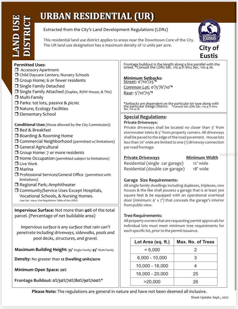 Muitas possibilidades! Localizado nos limites da cidade de Eustis. Residencial Urbano Zoneado (UR), proporcionando flexibilidade para residências unifamiliares, duplex, sobrados, multifamiliares e outros usos residenciais e comerciais. Os serviços públicos estão prontamente disponíveis na rua. Sem zonas húmidas e sem zonas de inundação! O lote oferece amplo espaço para diversos projetos residenciais para proprietários e incorporadores. São permitidas mais de 10 moradias, mais se forem moradias acessíveis.