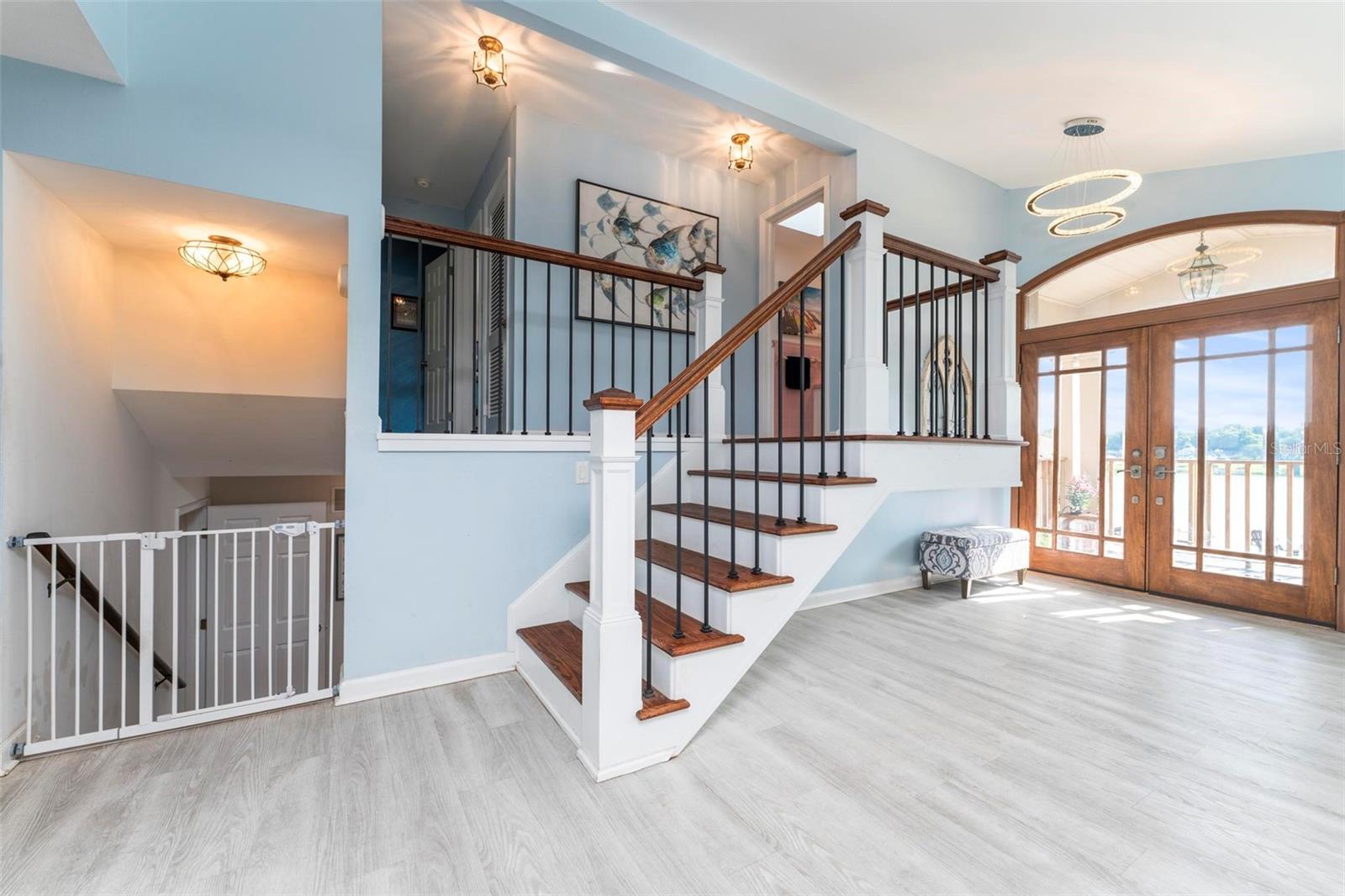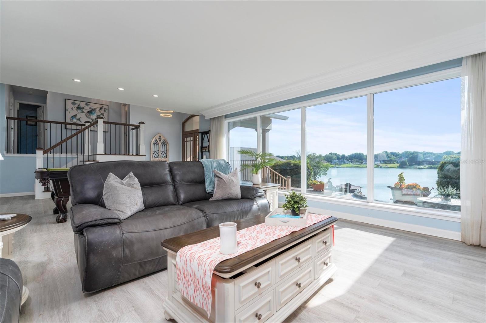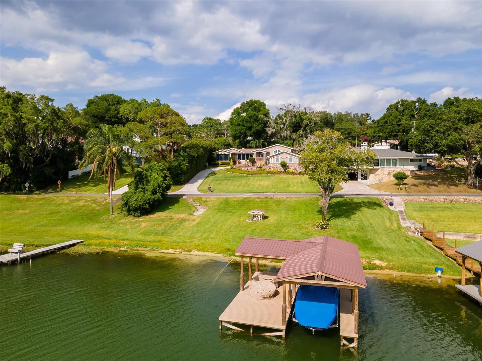 Delicie-se com o melhor estilo de vida à beira do lago com esta casa requintada com acesso privado ao East Crooked Lake, alimentado por nascentes, conhecido por suas águas cristalinas e pôr do sol deslumbrante. Uma doca mais nova e ampla construída com o produto WearDeck premium e equipada com elevadores para barcos e jet ski convida você a desfrutar plenamente de tudo o que East Crooked Lake tem a oferecer. Entre no pátio com vistas deslumbrantes para o lago, perfeito para reuniões e imersão na beleza natural que o rodeia. No interior, a suíte principal oferece uma ampla sala de estar com vistas deslumbrantes para o lago, um closet personalizado com amplo armazenamento embutido e um banheiro espaçoso com banheira de hidromassagem no jardim. Além disso, esta casa possui mais 3 quartos completos com banheiros privativos. O andar principal recebe você em um layout aberto, apresentando uma espaçosa sala de estar adornada com grandes janelas para capturar a vista do lago e uma cozinha bem equipada com armários de madeira, bancadas de granito e eletrodomésticos modernos. Ao lado, uma aconchegante sala de café da manhã e um escritório, aquecido por uma lareira a lenha, oferecem um retiro sereno. No piso inferior, ao nível da garagem e com entrada privada, descubra uma generosa sala, uma cozinha prática e um quarto privado com casa de banho privativa, perfeitamente adequado para hóspedes ou residências multigeracionais. Os destaques adicionais incluem uma lavanderia espaçosa e amplo armazenamento por toda parte. A espaçosa garagem para 3 carros inclui uma arrecadação “oculta” 13 x 8 climatizada, perfeita para guardar pertences num ambiente climatizado. Situado em um bairro procurado, você estará a poucos minutos do centro de Eustis e do Monte Dora, oferecendo inúmeras opções de compras, restaurantes e entretenimento. Esta casa não só promete uma vida luxuosa, mas também oferece praticidade e conforto em cada detalhe, tornando-a um refúgio perfeito para desfrutar do melhor da vida à beira do lago.