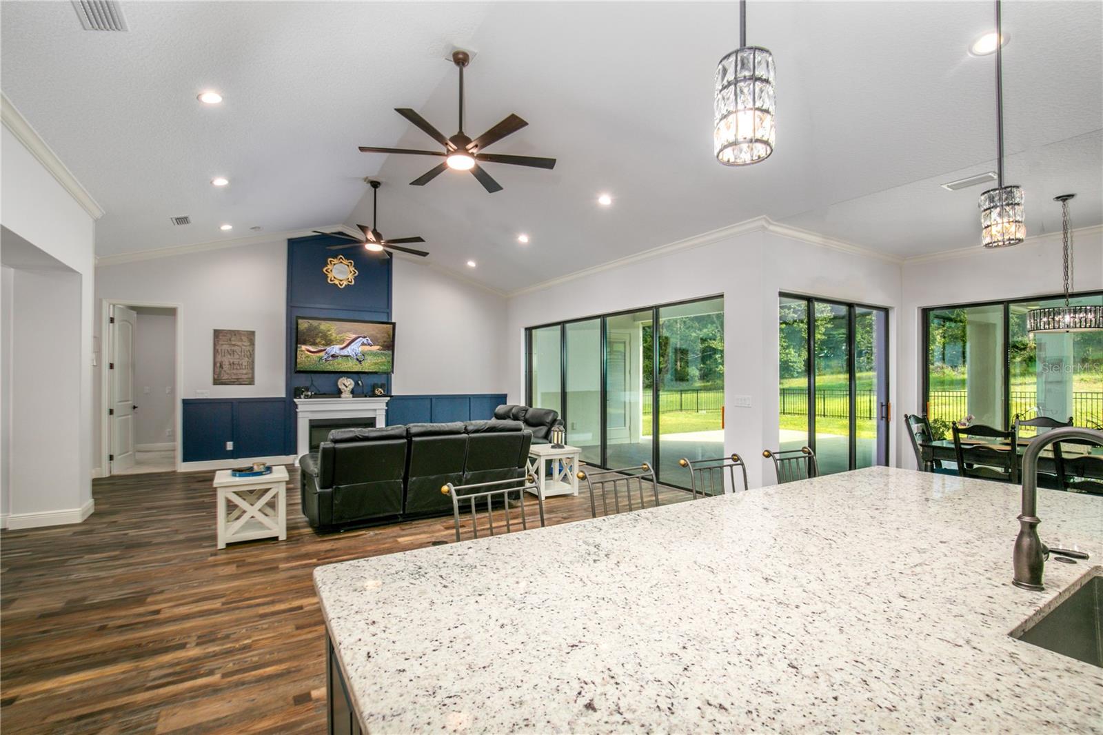 Descubra a casa dos seus sonhos na procurada comunidade equestre de Lakewood Ranches. Esta excepcional residência de 4 quartos e 3,5 banheiros está situada em 3,25 acres de terra tranquila. Projetada para oferecer elegância e conforto, esta propriedade está repleta de recursos de alta qualidade e atualizações cuidadosas, incluindo impressionantes detalhes em cobre no telhado. A cozinha gourmet é uma delícia do chef, com bancadas todas em granito, armários sofisticados com fechamento suave, uma ilha XL e eletrodomésticos de última geração, incluindo um refrigerador de vinho e forno duplo com um exaustor elegante. Uma grande despensa acrescenta funcionalidade e sofisticação à cozinha. A planta aberta combina perfeitamente as áreas de estar e de jantar, realçada por tetos abobadados, sancas e três grandes portas de correr que criam uma transição fluida entre os espaços internos e externos. A suíte principal extragrande serve como um retiro privado, com janelas salientes que oferecem vistas serenas. O amplo armário principal e o banheiro incluem dois armários de armazenamento adicionais, um amplo box amplo, pias para ele e ela com penteadeira e elegantes chuveiros de azulejos. A casa também possui biblioteca, closets, iluminação embutida em latas, paredes personalizadas e lavanderia equipada com pia e ralo sob a lavadora e secadora. Acabamentos atualizados, como piso à prova d'água de pranchas de vinil, persianas personalizadas, janelas de baixa emissividade, isolamento expandido e uma grande unidade de AC garantem conforto e eficiência por toda parte. No exterior, a enorme garagem para 2 carros é complementada por uma garagem lateral adicional, ideal para um cortador de relva ou carrinho de golfe. O amplo pátio, perfeito para entretenimento, é completo com ventiladores externos e tem vista para o amplo pátio fechado, tornando-o um paraíso para animais de estimação. O XL atende bem a casa e está equipado para suportar futuras adições, como uma casa de hóspedes ou celeiro, garantindo que todas as suas necessidades sejam atendidas. A varanda dos fundos oferece vistas deslumbrantes da propriedade, criando um cenário perfeito para relaxamento e diversão. Situada no coração do condado de East Lake, esta propriedade oferece a combinação perfeita de tranquilidade rural e conveniência urbana. Com fácil acesso às melhores escolas, lojas, restaurantes e oportunidades recreativas, você desfrutará do melhor dos dois mundos. As paisagens pitorescas, trilhas equestres e atividades ao ar livre de East Lake County fazem dele um local ideal para amantes da natureza e entusiastas de cavalos. A proximidade da comunidade com as principais rodovias permite um deslocamento tranquilo para Orlando e arredores, oferecendo um retiro tranquilo sem sacrificar a conveniência. Esta propriedade extraordinária é mais do que apenas uma casa; é um estilo de vida que oferece luxo incomparável nesta comunidade desejável. Experimente a combinação perfeita de sofisticação, conforto e elegância equestre em Lakewood Ranches