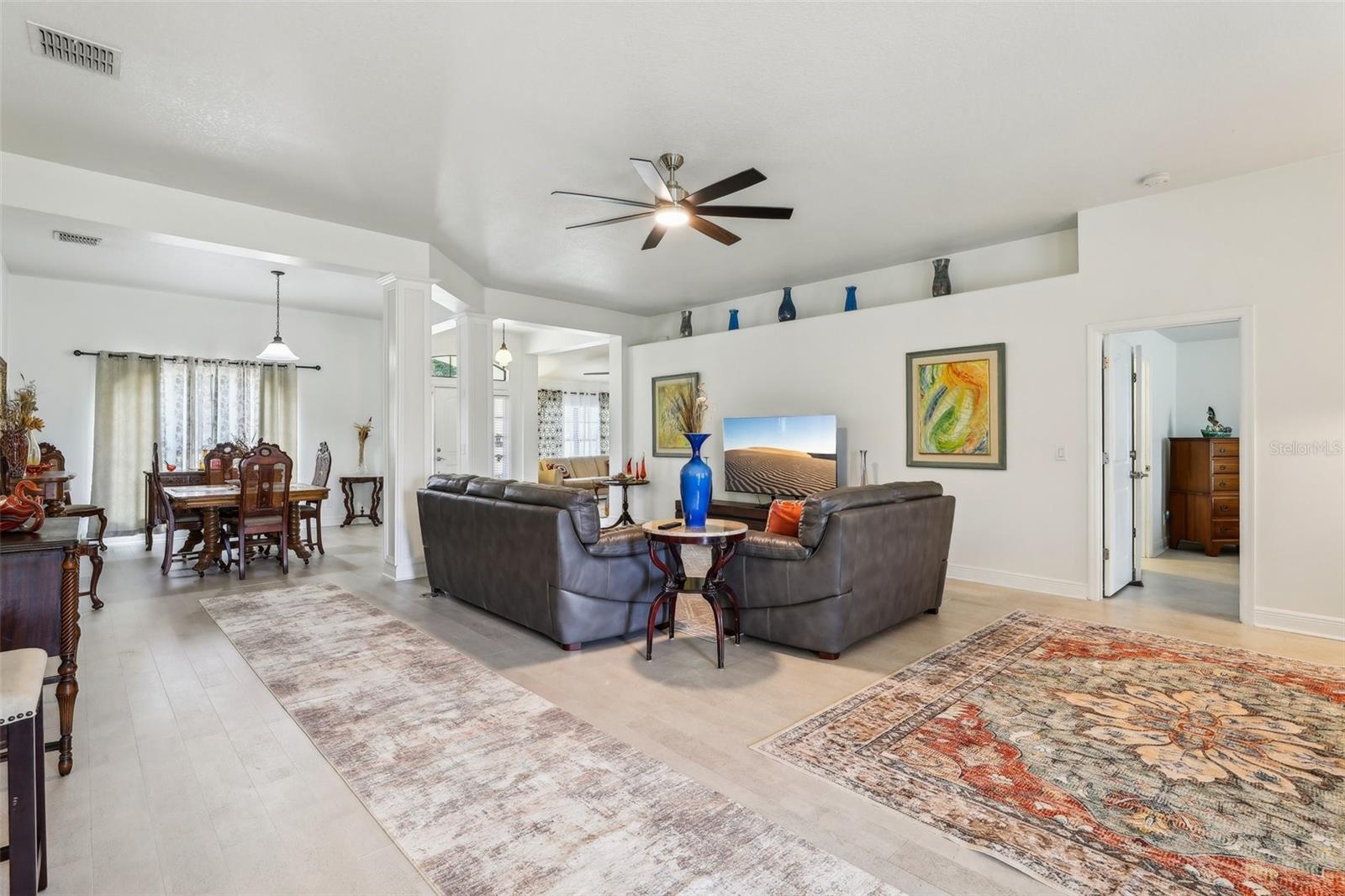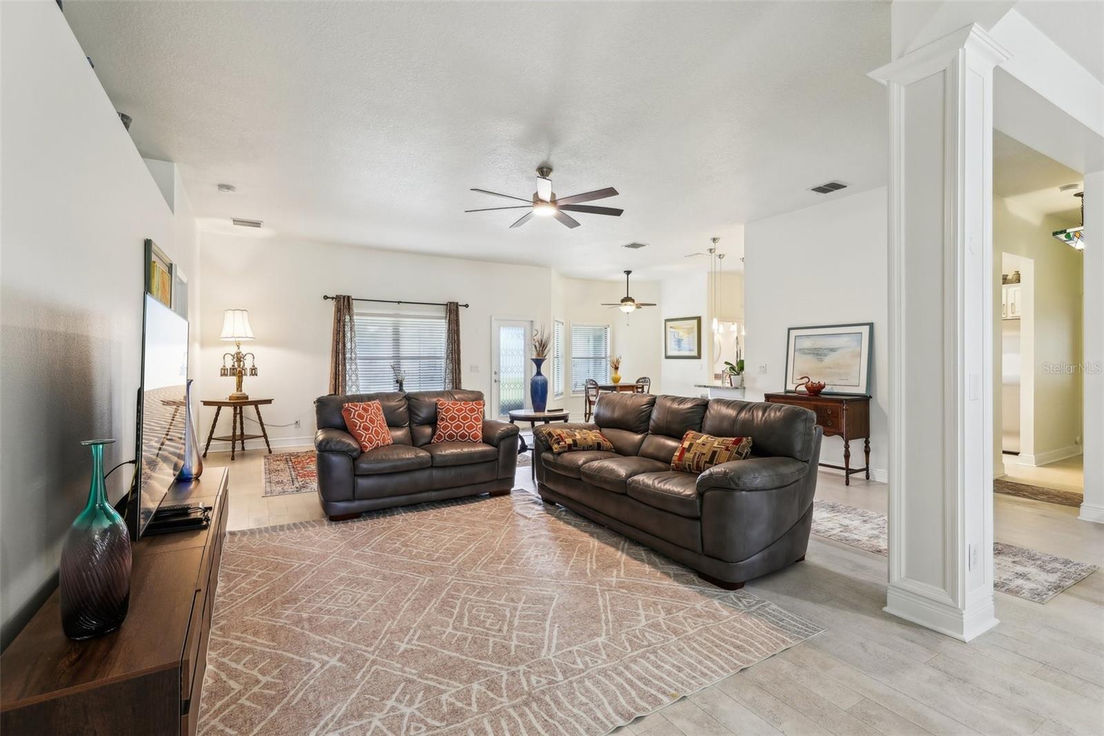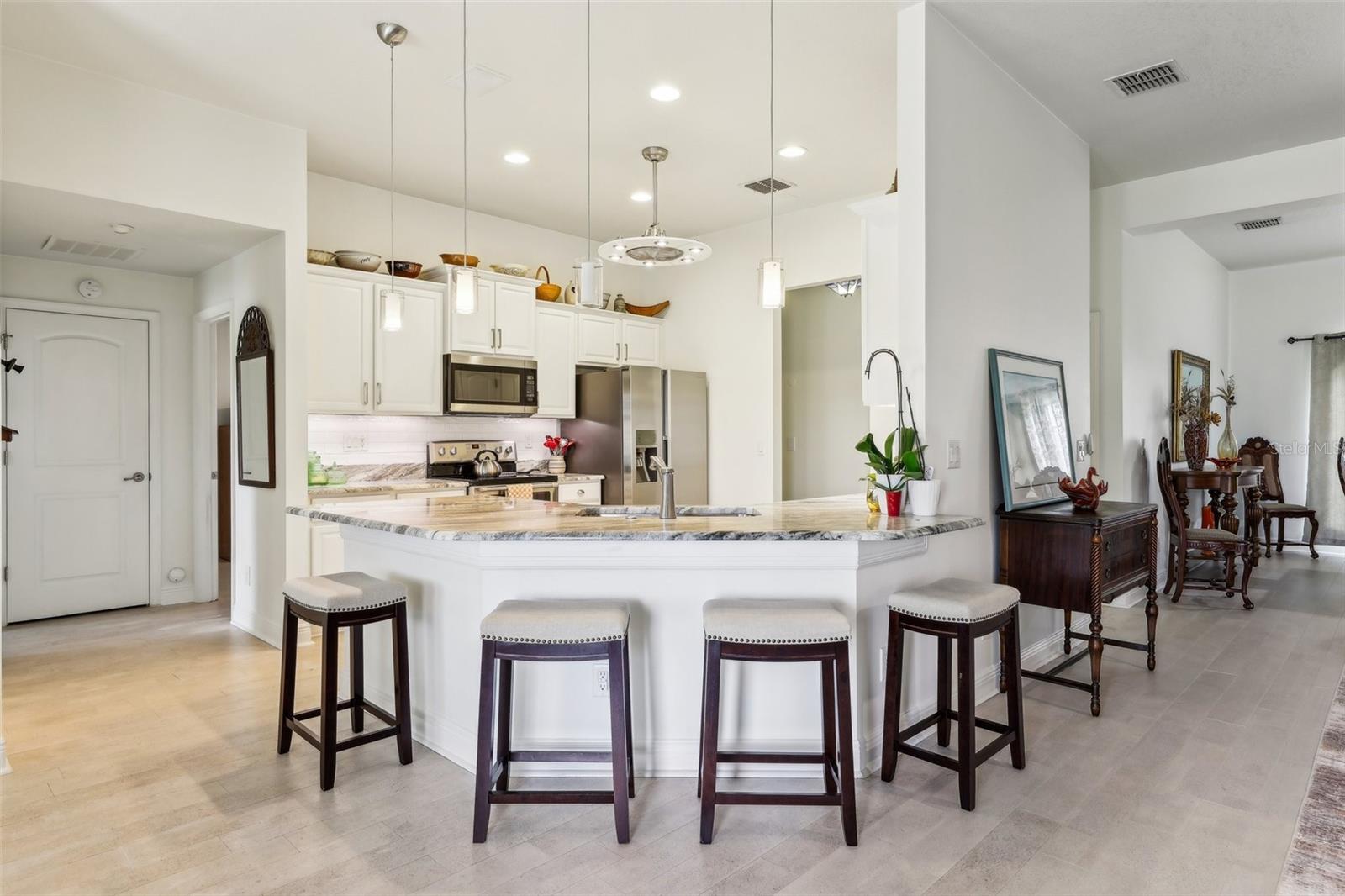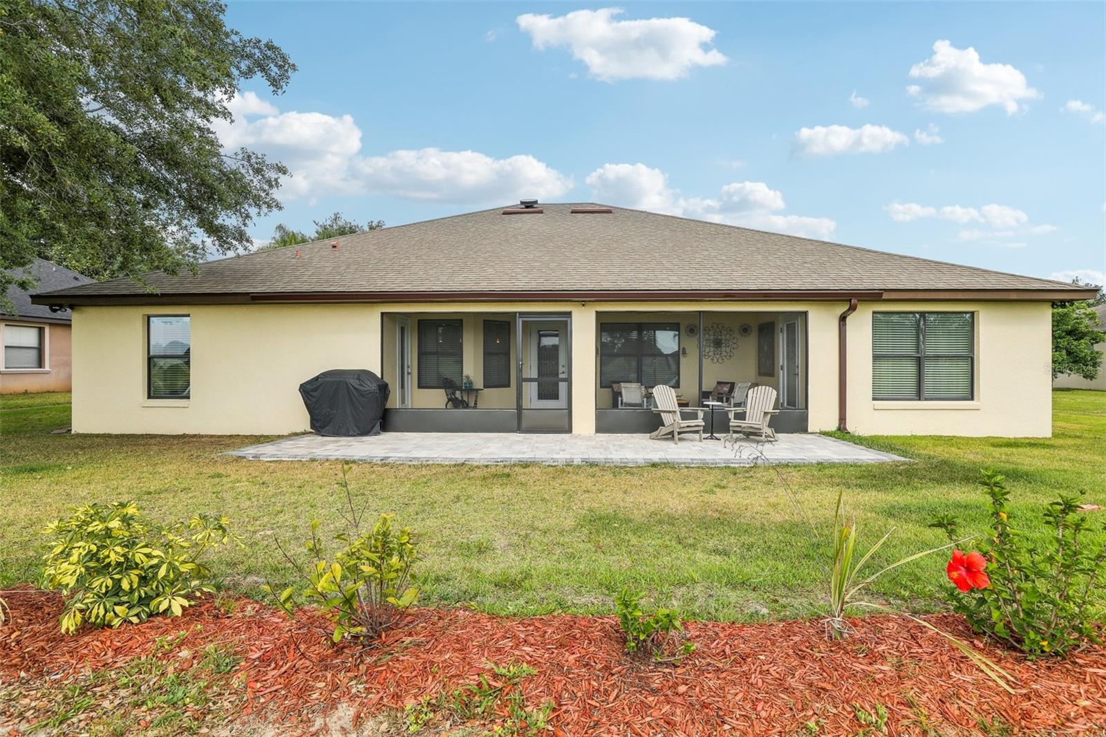 Localizado no 18º verde, desfrute do pôr do sol e vistas para a água na vila da comunidade de golfe de urso preto. Esta casa teve reformas recentes de reformas recentes de 25 de abril de 25 de abril com balcão de granito e backsplash, além de vendedores que fornecem garantia doméstica da AHS para o comprador. Outras atualizações incluem; Pintura interior por toda parte, ladrilho de cerâmica novo do banheiro, novos acessórios, paisagismo inteiro, novo pátio de pavimentador na frente, caminhada de pavimentação prolongada e vínculo/pátio nas costas com nova tela, nova sala de estar e fãs de quartos principais, cortinas de janelas e tons de janela, construídas personalizadas em prateleiras em quarto, que é perfeito para a biblioteca, escritório ou sala de salgadinhos. This is a "Florida Energy Services efficient home which includes 80-gallon water heater, Energy Star Windows, attic vents. The kitchen is centrally located for ease of entertaining and includes lots of storage, pantry, stainless steel appliances, and an additional eat in area. When entertaining a larger crowd, this home features additional open dining room off the great room. The split plan has large Master Suite includes ensuite bath, garden spa tub, step in shower, dual vanities, and Grandes armários duplos Esta casa tem tetos altos, trazendo a luz natural para desfrutar da nova paleta de cores naturais. Dora Shopping, teatro, entretenimento e restaurantes, parques e marina para passeios de barco e muitas atividades.