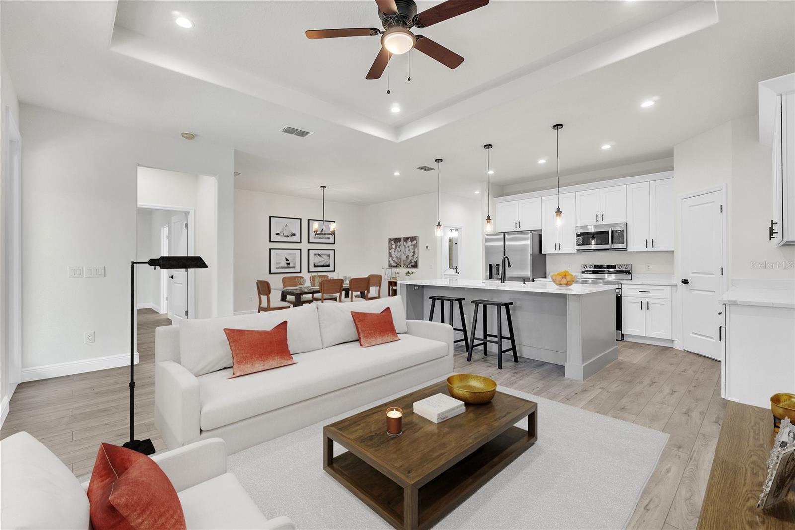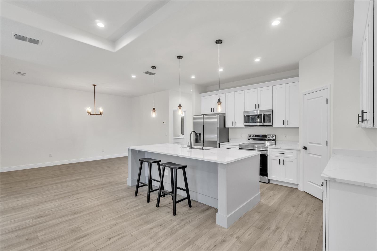 Descubra esta encantadora casa nova em estilo mediterrâneo em The Woodlands, uma comunidade serena com acesso à água e um píer de pesca no Lago Eustis. Localizado a apenas quinze minutos do histórico Monte Dora, você desfrutará de diversas opções de restaurantes e compras. Viaje convenientemente para Orlando pela rodovia 429 e pela Florida Turnpike. Esta casa em planta aberta possui 3 quartos, 2 banheiros, garagem para 2 carros com amplo armazenamento e closets em cada quarto. A sala tem teto escalonado e a espaçosa cozinha com uma grande ilha é ideal para cozinhar e se divertir. Desfrute de refeições em estilo café, armários de 42"e luxuoso piso de pranchas de vinil. O pátio tem vista para uma área de conservação arborizada. Os acabamentos modernos incluem armários de madeira, bancadas de quartzo e eletrodomésticos de aço inoxidável. A área de serviço oferece lavadora, secadora e armazenamento armários e pia. A suíte do proprietário possui área de mesa, armário de roupa de cama, chuveiro, banheira de jardim, pias duplas e um grande closet. Esta casa vem com garantia de construção de 7 anos para elementos estruturais e um grande closet. Garantia de 1 ano para aparelhos. As taxas HOA incluem manutenção do gramado frontal. Não perca a chance de tornar esta residência requintada sua. Agende seu tour privado hoje mesmo!
