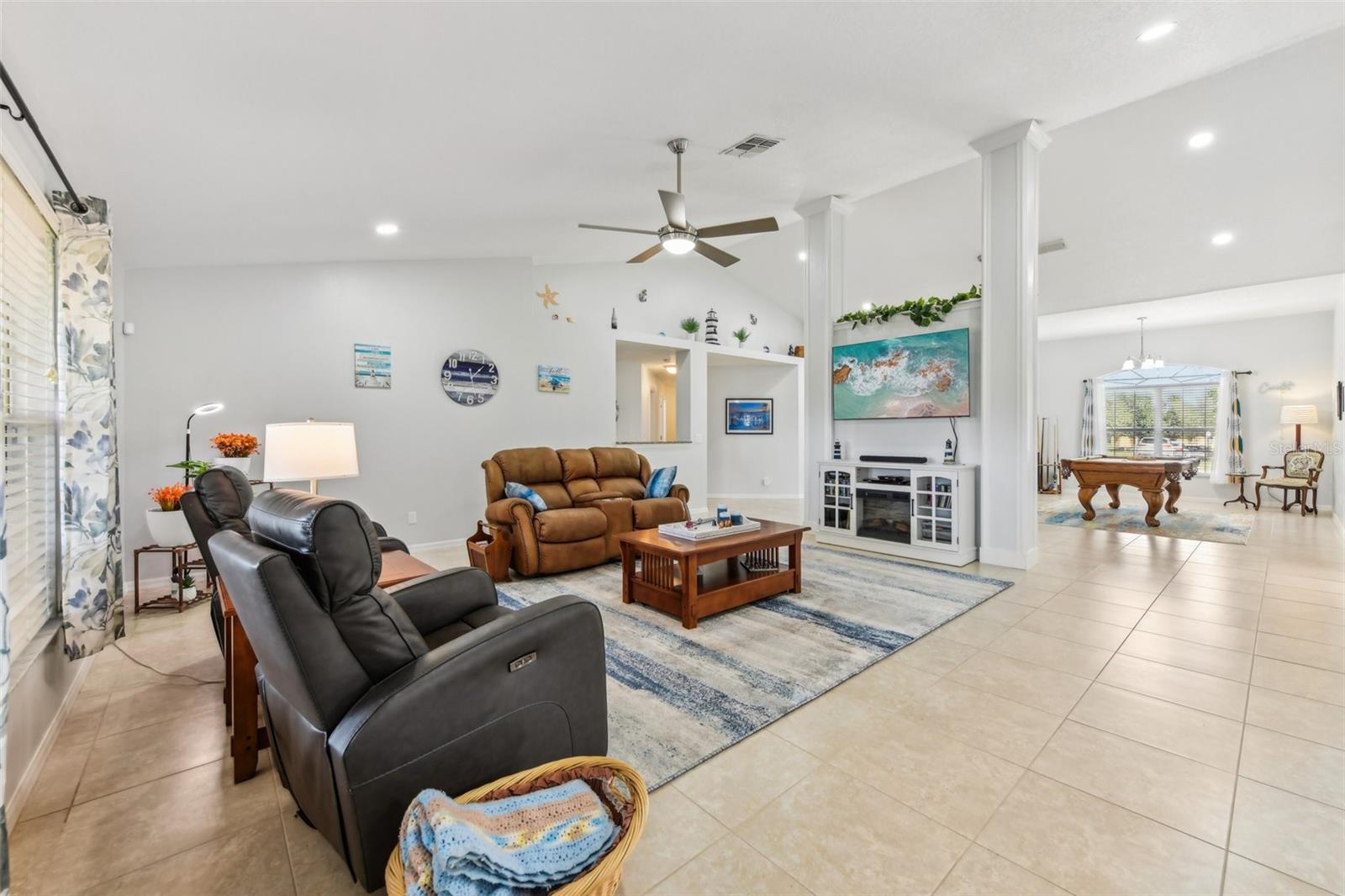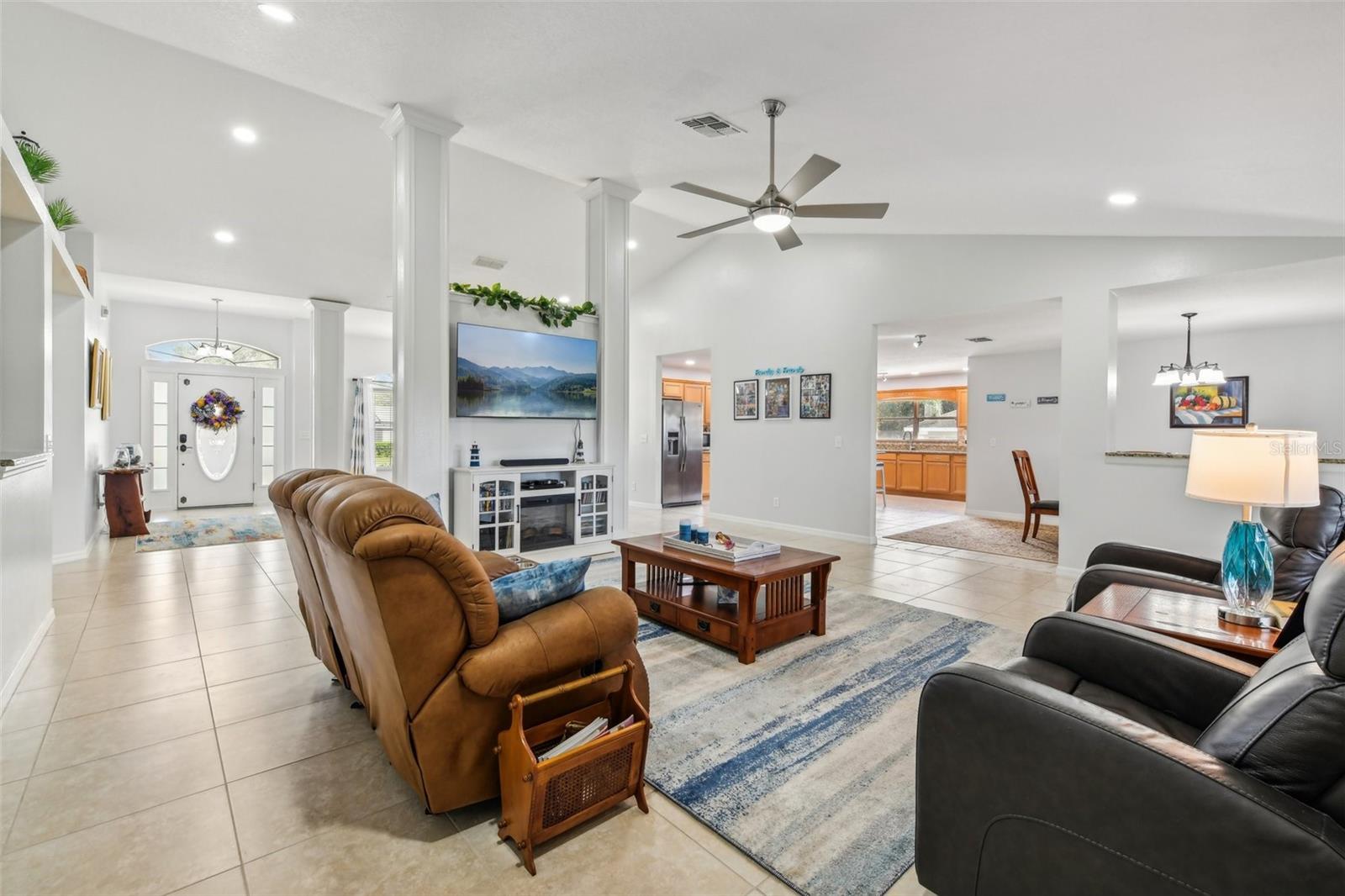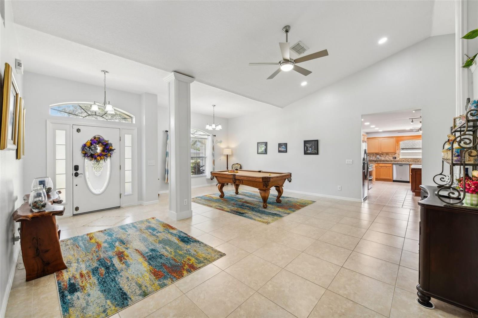 Bem-vindo à casa dos seus sonhos em 24548 Calusa Blvd! Descubra a combinação perfeita de elegância e conforto nesta deslumbrante residência de 3.029 pés quadrados localizada na procurada comunidade Black Bear de Eustis, FL. Situada no pitoresco 10º tee de um campo de golfe profissional de 18 buracos, esta casa oferece um estilo de vida sereno com vistas deslumbrantes. Entre em uma convidativa planta aberta que conecta perfeitamente a espaçosa sala grande, com uma área de estar e jantar adornada com altos tetos de catedral, à ampla sala familiar. A cozinha gourmet é uma delícia para o chef, com eletrodomésticos de aço inoxidável, elegantes bancadas de granito, uma ilha generosa e um backsplash decorativo complementado por armários de madeira maciça. A grande área de recanto é perfeita para reuniões familiares ou receber amigos. O design de fácil manutenção desta casa inclui azulejos de cerâmica em todas as áreas úmidas e elegante piso de madeira em cada um dos quatro quartos. A luxuosa suíte master possui teto falso e portas duplas que levam a um banheiro master tipo spa, completo com dois closets, um armário de roupa de cama, um box de vidro com azulejos decorativos e uma relaxante banheira de jardim. Os destaques adicionais incluem uma espaçosa despensa com pia e armários embutidos, e uma garagem para dois carros com piso de epóxi, estação de trabalho e amplo armazenamento embutido. Desfrute da vida ao ar livre na varanda, onde você pode relaxar enquanto aprecia a vista para o encantador campo de golfe. Situado em um lote generoso de 0,32 acres cercado por uma cerca de ferro decorativa, o quintal meticulosamente mantido possui um pátio pavimentado, ideal para noites aconchegantes com fogueira ou marshmallows com a família e amigos. As atualizações recentes em 2024 incluem um novo aquecedor de água, novas persianas motorizadas na área de estar formal, novo controle de porta de garagem, novos ventiladores/luzes na sala de estar e na sala de estar, novas pias de banheiro elegantes, bancadas, torneiras, iluminação embutida moderna e tudo mais. pintura interior em toda a casa. Outras atualizações recentes incluem um novo telhado em 2022 e o sistema HVAC atualizado em 2020. Para sua comodidade também estão incluídos o mobiliário de exterior, o sistema de segurança com câmeras e campainha. Contas de energia baixas, tornando esta casa energeticamente eficiente. A Black Bear Community oferece uma variedade de comodidades, incluindo um clube de golfe privado com clubhouse, loja profissional e restaurante de serviço completo. Aproveite o acesso aos lagos próximos para pescar, playgrounds para os mais pequenos e quadras de tênis ou pickleball para diversão ativa. A taxa HOA inclui convenientemente Wi-Fi e TV a cabo. Localizado a poucos minutos dos encantadores bairros históricos de Monte Dora e Tavares, você terá inúmeras oportunidades para restaurantes, compras e eventos locais. Não perca a chance de possuir esta casa excepcional em uma comunidade vibrante – agende seu tour privado hoje mesmo!
