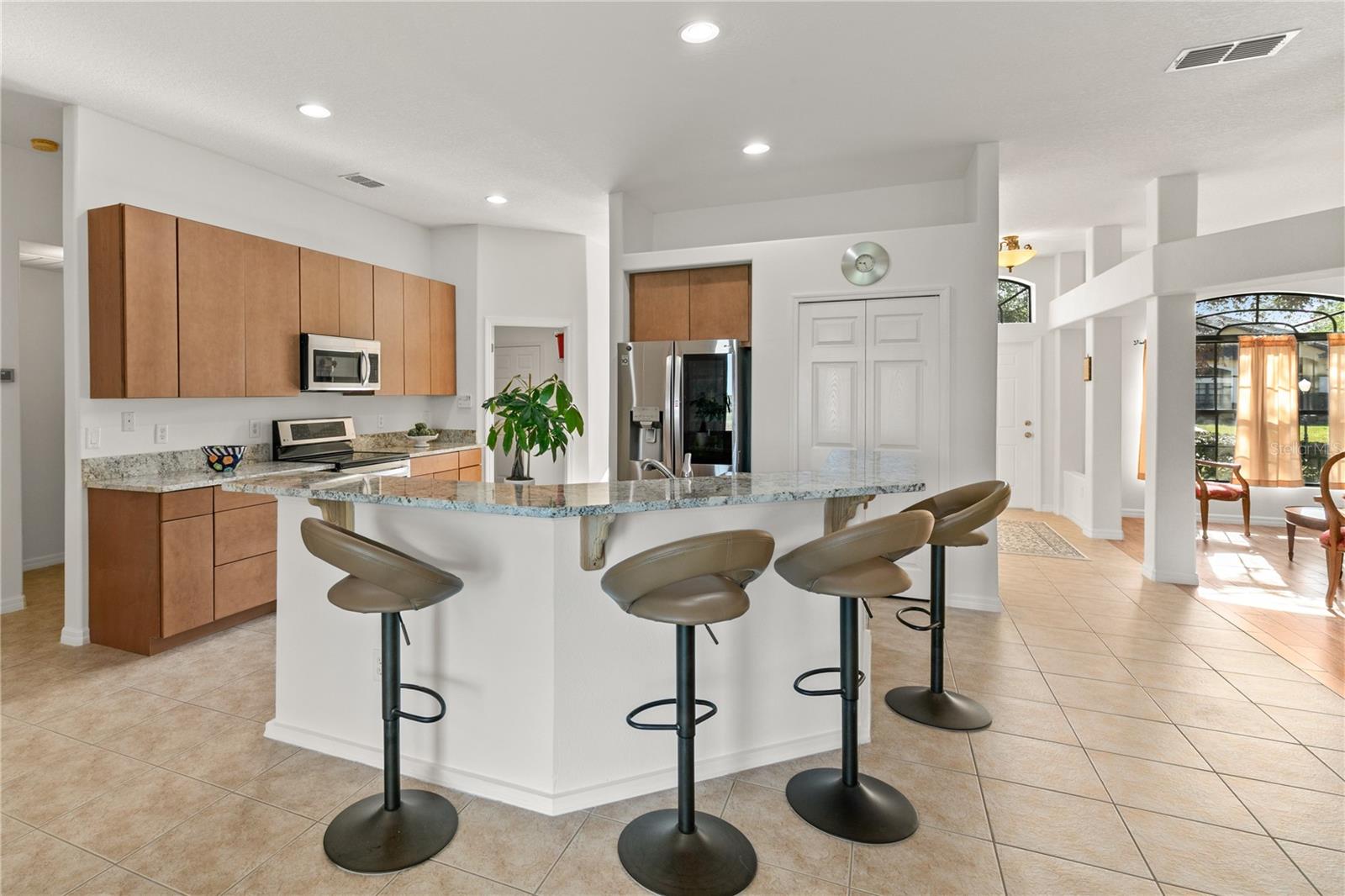 Vistas deslumbrantes para o campo de golfe e pôr do sol incrível! Layout inteligente com espaço generoso ideal para família e entretenimento! Venha ver este banho de 5 camas/3 com tetos elevados e muita luz natural. Quarto para todos com refeições e áreas de estar formais, além de sala de estar e cozinha. Suíte master espaçosa com closet; Três quartos secundários de tamanho generoso no primeiro andar e uma suíte de convidado privada e grande sala de estar em casa/sala de ensino em casa com teto abobadado, banheiro completo e armário de walk-in. Rejuvenescer, relaxar e absorver o sol e as vistas do amplo pátio de quintal aberto. As atualizações recentes incluem: telhado, HVAC, carpete, ladrilhos de cerâmica, armários de cozinha e eletrodomésticos em 2018; Pintura externa e portas francesas 2019; Bancadas de granito e pia da cozinha 2022; Porta da frente 2024. Você merece uma casa que ama. Venha ver seu próximo endereço!