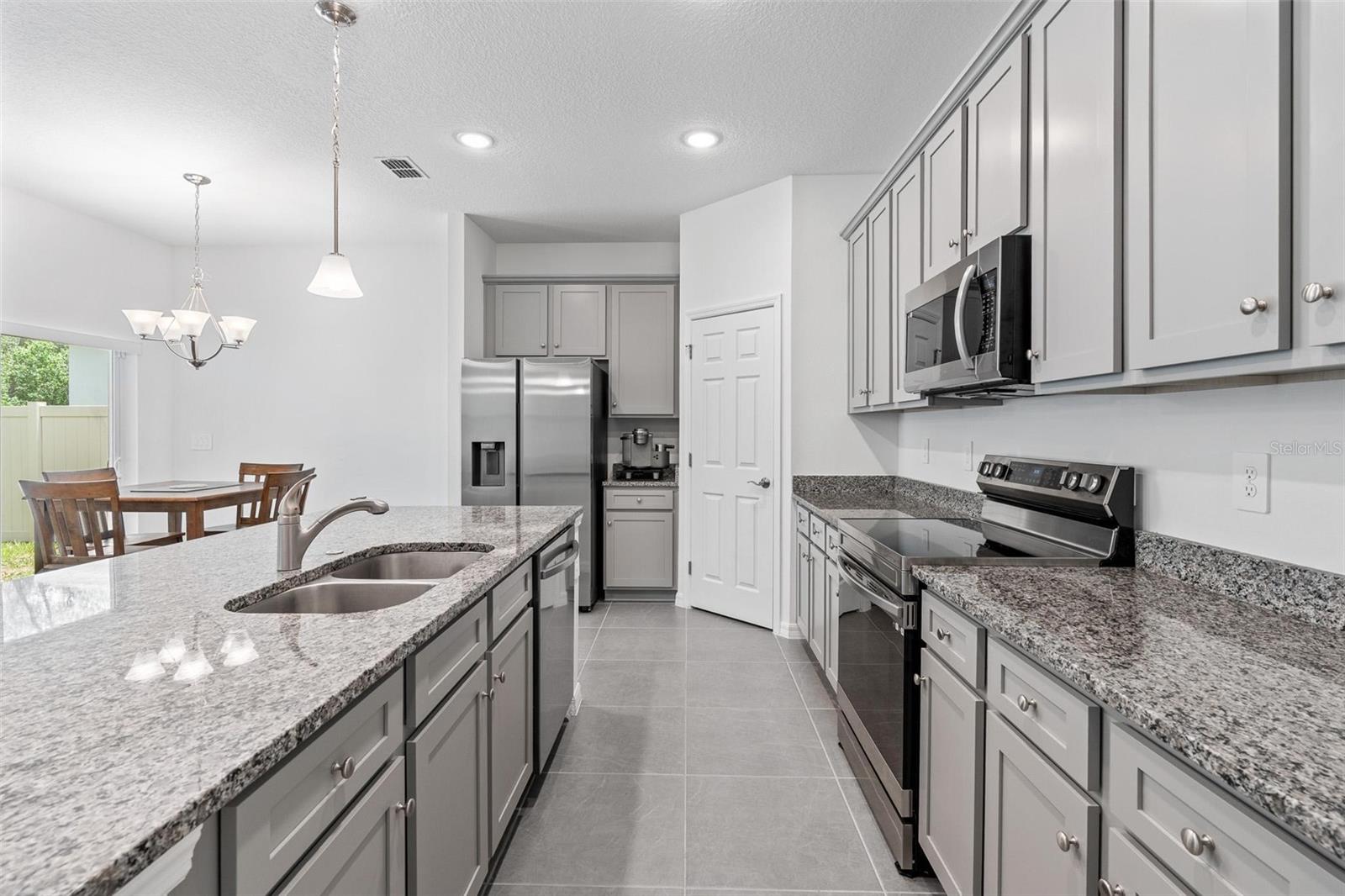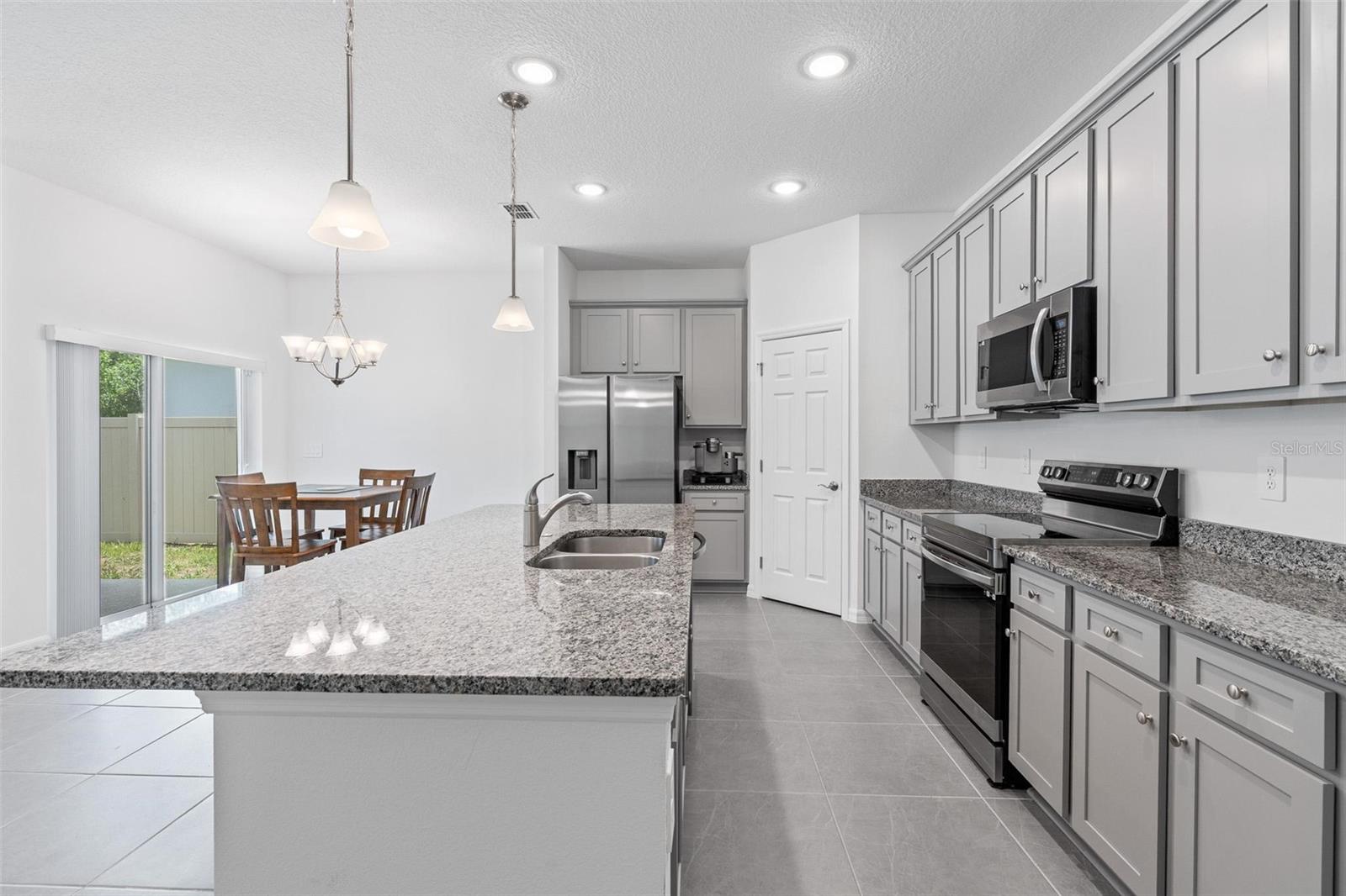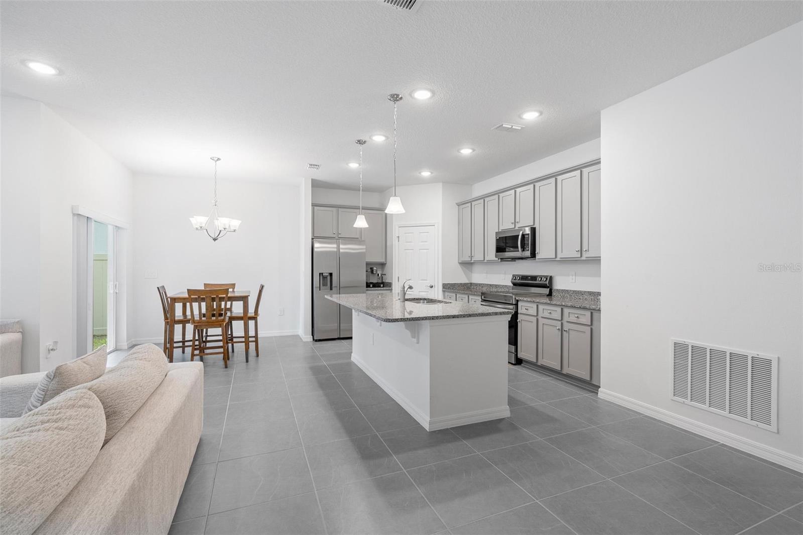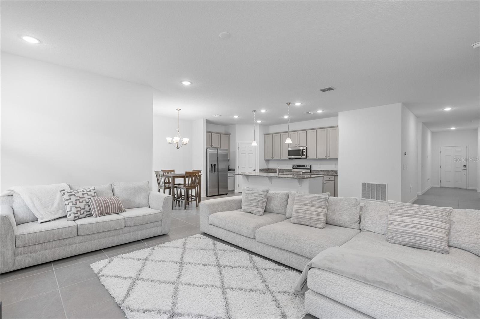 *** VENDEDOR MOTIVADO *** Bem-vindo a esta casa lindamente conservada, como nova, construída em 2022 e mal habitada! Oferecendo 4 quartos, 2 banheiros e 1.791 pés quadrados de espaço cuidadosamente projetado, SEM VIZINHOS TRASEIROS ou LATERAIS! Esta casa combina acabamentos modernos com conforto e funcionalidade. Entre em um hall de entrada iluminado e arejado com tetos altos, piso de cerâmica em todas as áreas de estar principais e um corredor espaçoso que apresenta uma planta dividida em três vias - ideal para privacidade e versatilidade. Fora do hall de entrada, dois quartos e um banheiro completo formam uma suíte de hóspedes perfeita ou ala familiar. Do outro lado do corredor, um terceiro quarto fica convenientemente próximo à lavanderia interna. No centro da casa há uma espaçosa sala de estar repleta de luz natural e aberta para a cozinha e área de jantar - perfeita para entretenimento e vida cotidiana. A cozinha moderna possui: bancadas em granito, uma grande ilha central com assentos, eletrodomésticos em aço inoxidável, armários de madeira maciça e uma despensa ampla. Ao lado da cozinha, uma sala de jantar aconchegante se abre através de portas de vidro deslizantes para um pátio privativo no quintal, oferecendo o lugar perfeito para relaxar ou se divertir. A suíte principal é um retiro espaçoso com um luxuoso banheiro privativo completo com: pias duplas, chuveiro independente e amplo closet. A localização do lote de esquina com retenção seca em um dos lados e sem vizinhos traseiros significa maior privacidade e vistas tranquilas. A poucos minutos das principais rodovias, Mount Dora, Tavares e da crescente cidade de Eustis, você estará perfeitamente situado para desfrutar de tudo o que Lake County tem para desfrutar, incluindo a cadeia de lagos do centro de Mount Dora, lojas charmosas, restaurantes e festivais durante todo o ano. Não perca a oportunidade de possuir esta joia pronta para morar!