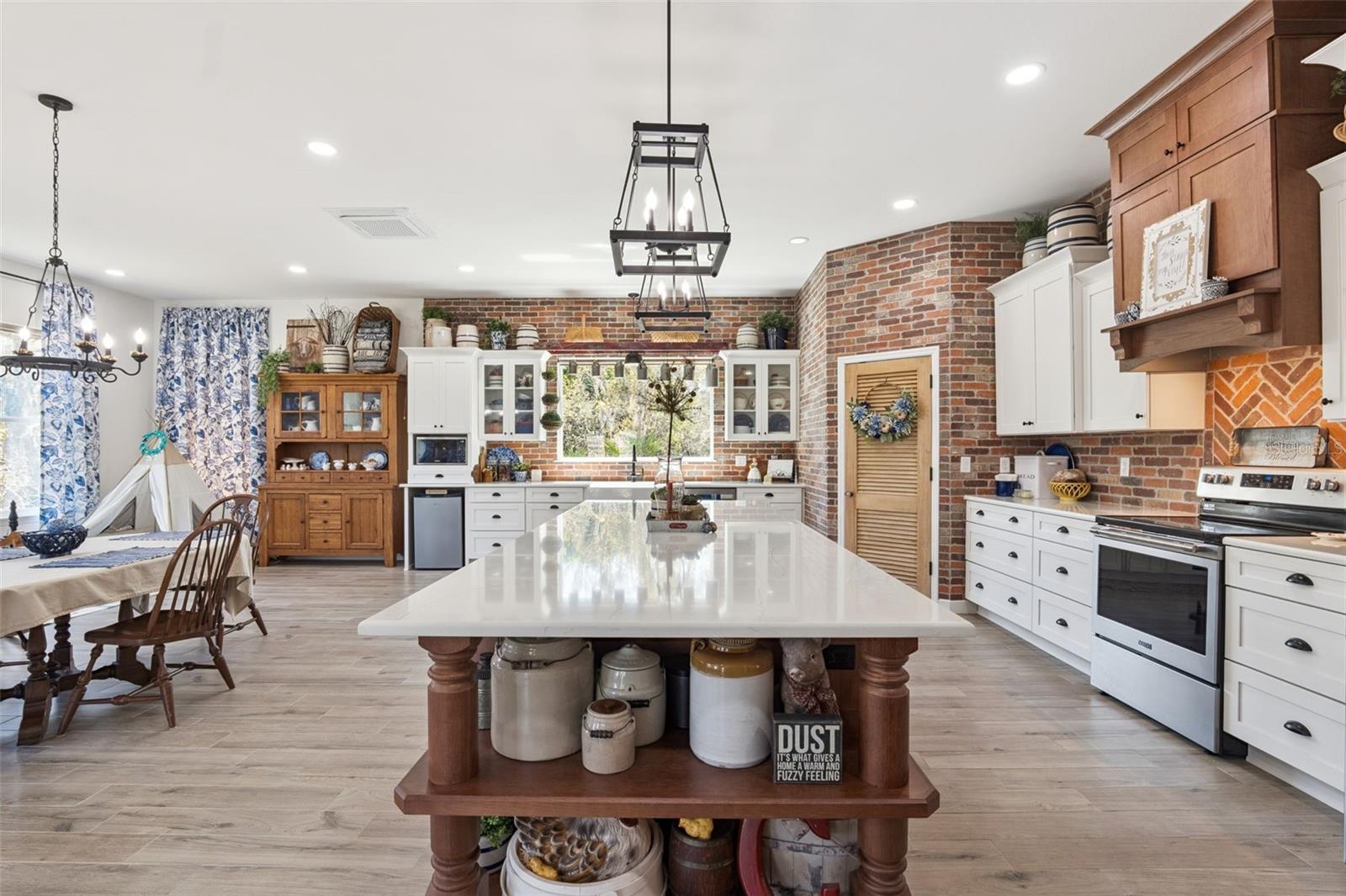 Bem-vindo a esta propriedade verdadeiramente excepcional, onde um design inteligente, atualizações modernas e espaços exteriores tranquilos combinam perfeitamente. Escondida em 2,24 hectares paisagísticos semelhantes a um parque em Eustis, esta residência de quase 3.600 pés quadrados oferece uma rara mistura de espaço, privacidade e reformas de qualidade - tudo com uma sensação sutil de campo para recebê-lo em casa. Totalmente transformada em 2023, esta casa foi redesenhada e ampliada, tanto em estilo quanto em funcionalidade. No interior, você encontrará um amplo layout de conceito aberto destacado por uma impressionante sala de 900 pés quadrados que combina perfeitamente a cozinha e a área de estar - perfeita para receber amigos e para a vida cotidiana. Ladrilhos duráveis com aparência de madeira percorrem toda a casa para uma base limpa e coesa. A nova cozinha é o coração da casa, com impressionantes paredes de tijolos que acrescentam textura e charme. Com eletrodomésticos atualizados de 2023, uma grande ilha de preparação e uma despensa ampla, ele foi construído para a vida real. As bancadas de quartzito oferecem um acabamento de alta qualidade que também é durável e de baixa manutenção. As mesmas superfícies de quartzito fluem da cozinha para os banheiros totalmente renovados, unindo o design perfeitamente. Você também notará muito armazenamento inteligente espalhado por toda a casa para manter as coisas organizadas. A planta dividida garante privacidade, com três amplos quartos e três banheiros e meio, todos refeitos com belos materiais e artesanato de qualidade. Os espaços adicionais incluem um escritório dedicado, uma área de jantar dedicada e uma sala de estar convidativa, oferecendo flexibilidade para qualquer estilo de vida. Saia e experimente seu próprio retiro privado. Os terrenos são meticulosamente mantidos com paisagismo exuberante, trilhas sombreadas e um ambiente tranquilo, semelhante a um parque, que realça o ambiente tranquilo e de inspiração campestre da casa. Uma entrada circular oferece amplo estacionamento e uma ótima primeira impressão. Entusiastas de automóveis, amadores ou proprietários de empresas apreciarão o impressionante anexo de 30x40, completo com eletricidade e espaço para acomodar até oito veículos - perfeito para oficina, armazenamento ou garagem. Esta casa é tão prática quanto bonita, com grandes atualizações de sistema, incluindo um telhado 2021, 2022 AC, dois aquecedores de água sem tanque, encanamento de PVC totalmente novo e pintura interna e externa renovada concluída em 2023. Cada centímetro reflete orgulho de propriedade e cuidado meticuloso. Uma rara oportunidade de possuir uma propriedade totalmente renovada e pronta para morar, com área cultivada, comodidades modernas e apelo atemporal - esta propriedade realmente se destaca.
