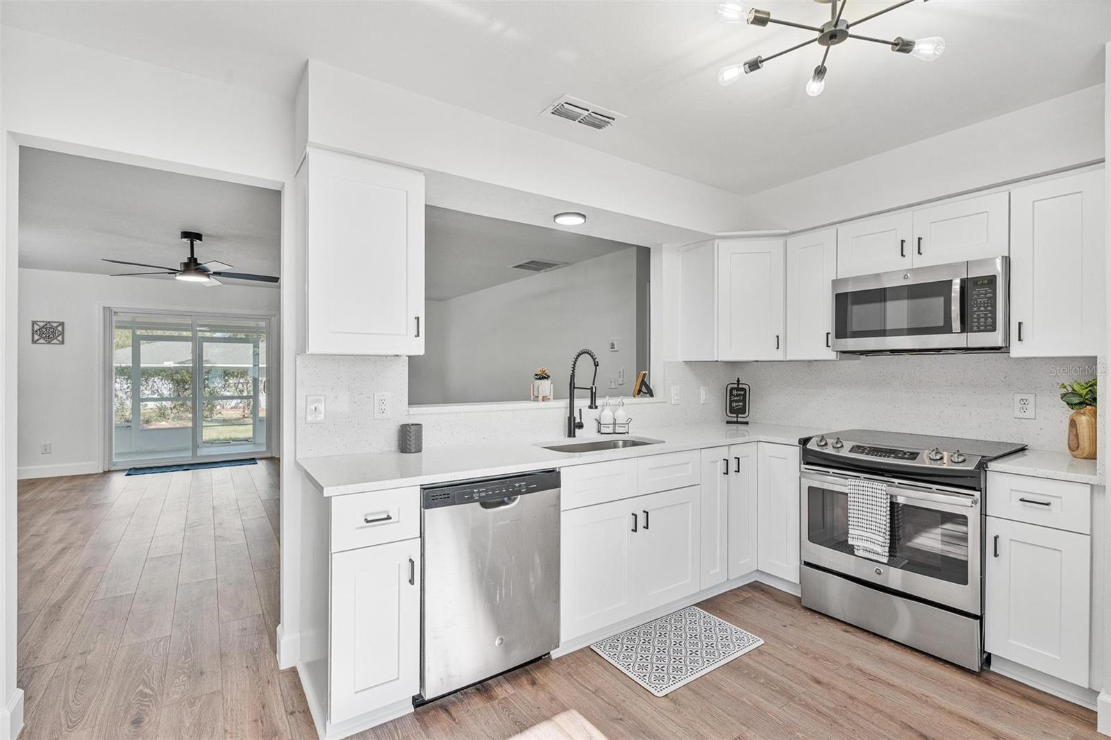 Querida, pare o carro!! É esse!! VENDEDOR PAGARÁ CUSTO DE FECHAMENTO AOS COMPRADORES COM OFERTA DE PREÇO INTEGRAL!! Bem-vindo ao 2707 Knollwood Trail, uma casa totalmente remodelada onde acabamentos modernos encontram o conforto do dia a dia. Nenhuma despesa poupada – nenhum detalhe esquecido! (Telhado mais novo + HVAC) A partir do momento em que você entrar, você apreciará a aparência fresca e limpa destacada pelo novo piso laminado à prova de água, banheiros totalmente renovados, acessórios atualizados, planta baixa dividida e um interior cuidadosamente renovado. O coração da casa é a cozinha deslumbrante, com bancadas de quartzo, eletrodomésticos de aço inoxidável, armários de madeira maciça, amplo balcão e um convidativo espaço de cozinha para refeições, perfeito para refeições casuais ou entretenimento. Ambos os banheiros completos foram reformados com bom gosto e acabamentos contemporâneos, dando à casa uma sensação coesa e pronta para morar. (Combinação de chuveiro/banheira no hóspede - chuveiro no primário) Garagem para 2 carros + garagem grande e um galpão no quintal oferecem amplo armazenamento. Saia para desfrutar do pátio coberto, ideal para noites relaxantes ou café da manhã no lindo clima da Flórida. Espaço para piscina, lareira, pérgola.. o potencial é seu! Localizada em Eustis, esta casa oferece proximidade com o centro de Eustis, lagos locais, parques, lojas, restaurantes e estradas principais, tornando mais fácil desfrutar das conveniências do dia a dia e do estilo de vida ao ar livre da região. Esta é uma oportunidade chave na mão que você não vai querer perder.