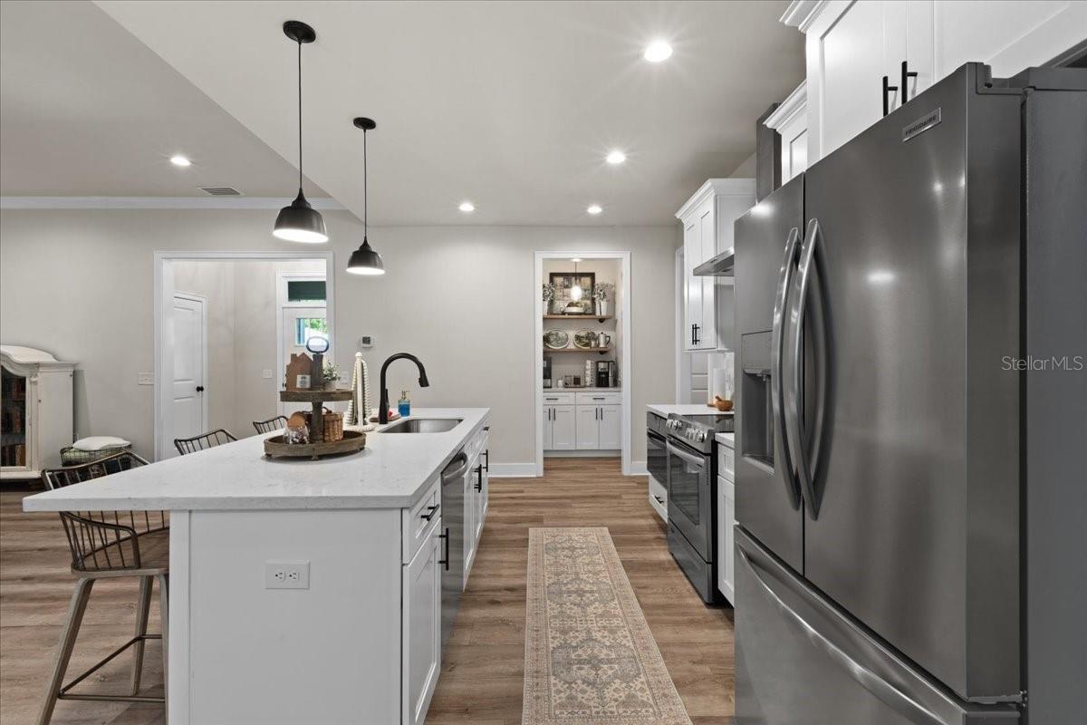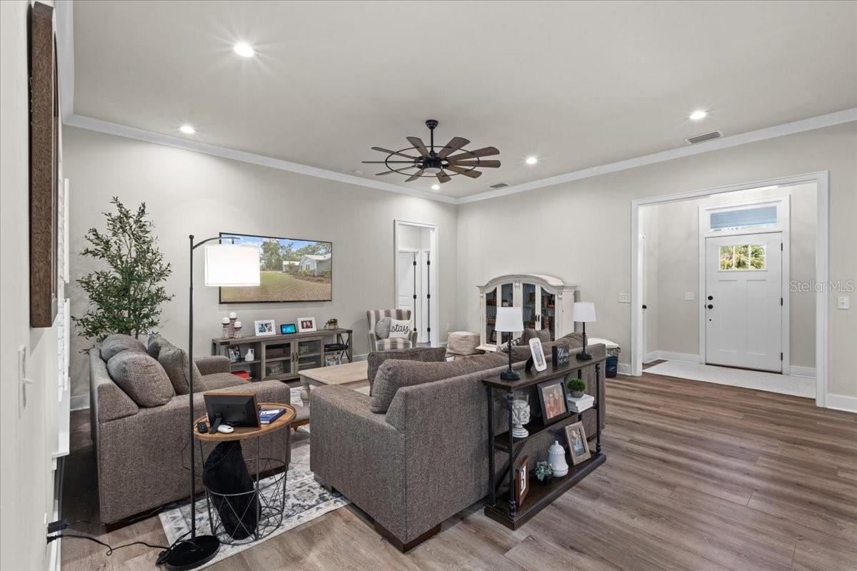 Bem-vindo a esta casa de 3 quartos e de dois quartos e de dois quartos, na comunidade fechada de Riverwalk de Fanning Springs. Com mais de 1.800 pés quadrados de espaço de vida cuidadosamente projetado em um lote espaçoso de 0,37 acres, esta casa é uma verdadeira vitrine de orgulho de propriedade. Entre para descobrir um piso plano aberto com o piso de tábua de vinil de luxo por toda parte. Cozinha grande com bancadas de quartzo, utensílios de aço inoxidável, uma ilha generosa, café encantador e uma impressionante despensa. O layout de quartos divididos fornece privacidade e funcionalidade, destacadas por um luxuoso retiro mestre com um teto de bandeja, closet de grandes dimensões e banheira de suíte, semelhante a um spa, completa com vaidades duplas, um armário de água privado e um chuveiro lindamente azulejo. Os recursos adicionais incluem uma zona de queda conveniente, uma espaçosa lavanderia com pia personalizada encantadora, persianas de plantações por toda parte e uma garagem de 2 carros. Desfrute de manhãs tranquilas ou noites relaxantes na varanda traseira, com vista para o tranquilo espaço verde comunitário. Esta casa é construída para durar com um teto de metal, sistema de calha completo e uma longa calçada de concreto. As comodidades no estilo de resort do Riverwalk incluem um clube de 6.000 ± pés quadrados, fitness center, piscina espumante, quadras de tênis, sauna e panorâmica pavimentada trilhas para caminhada/ciclismo que se conectam diretamente à trilha do estado da costa da natureza- perfeitas para explorar todo o rio Suwannee. Uma mistura perfeita de conforto, estilo e estilo de vida - este lar realmente tem tudo