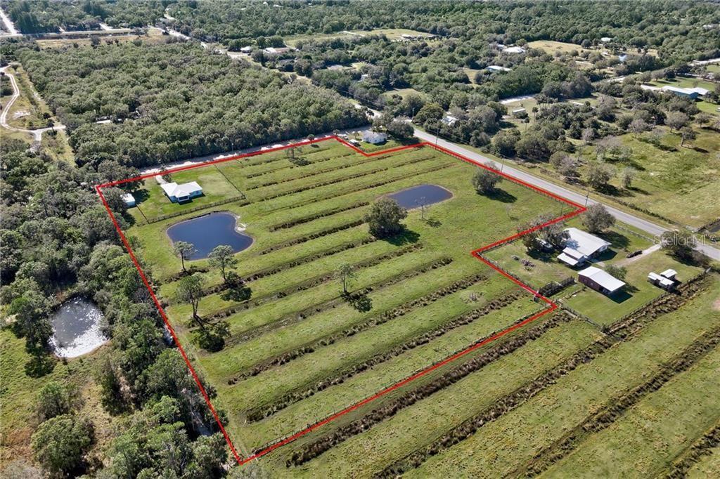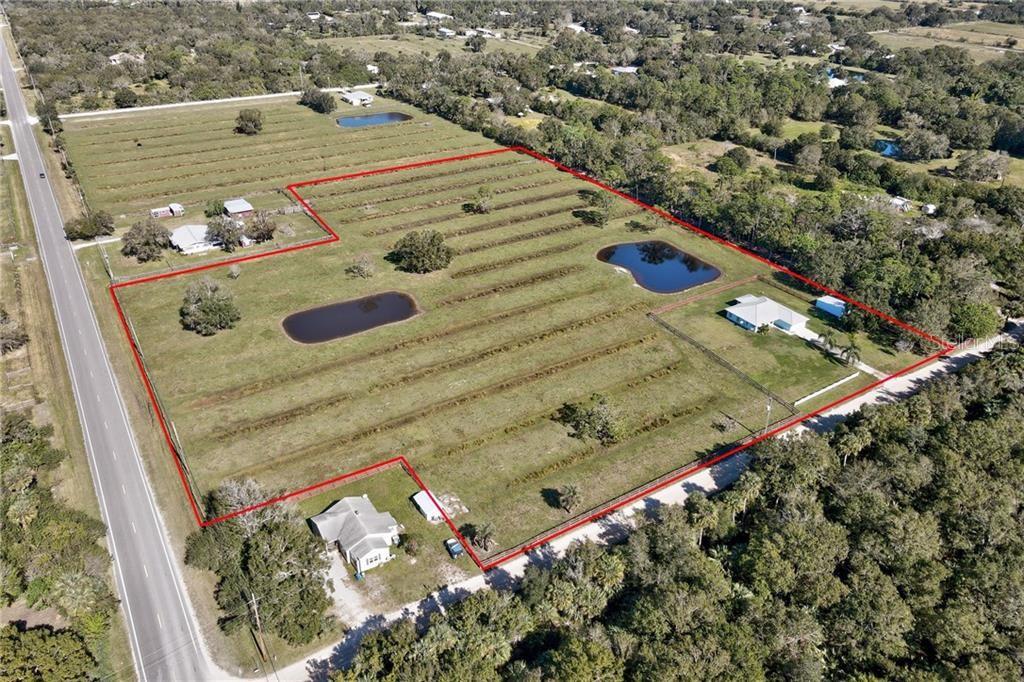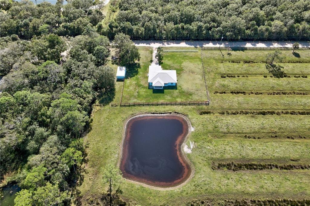 Casa/rancho de 8,11 ACRE, 3BRM e 2BTH, garagem para 2 carros, lado oeste ao longo da Babcock Frontage ao longo da 101st Street, oficina separada 26x15 com piso de concreto. Totalmente cercada, varanda nos fundos, com vista para o lago.